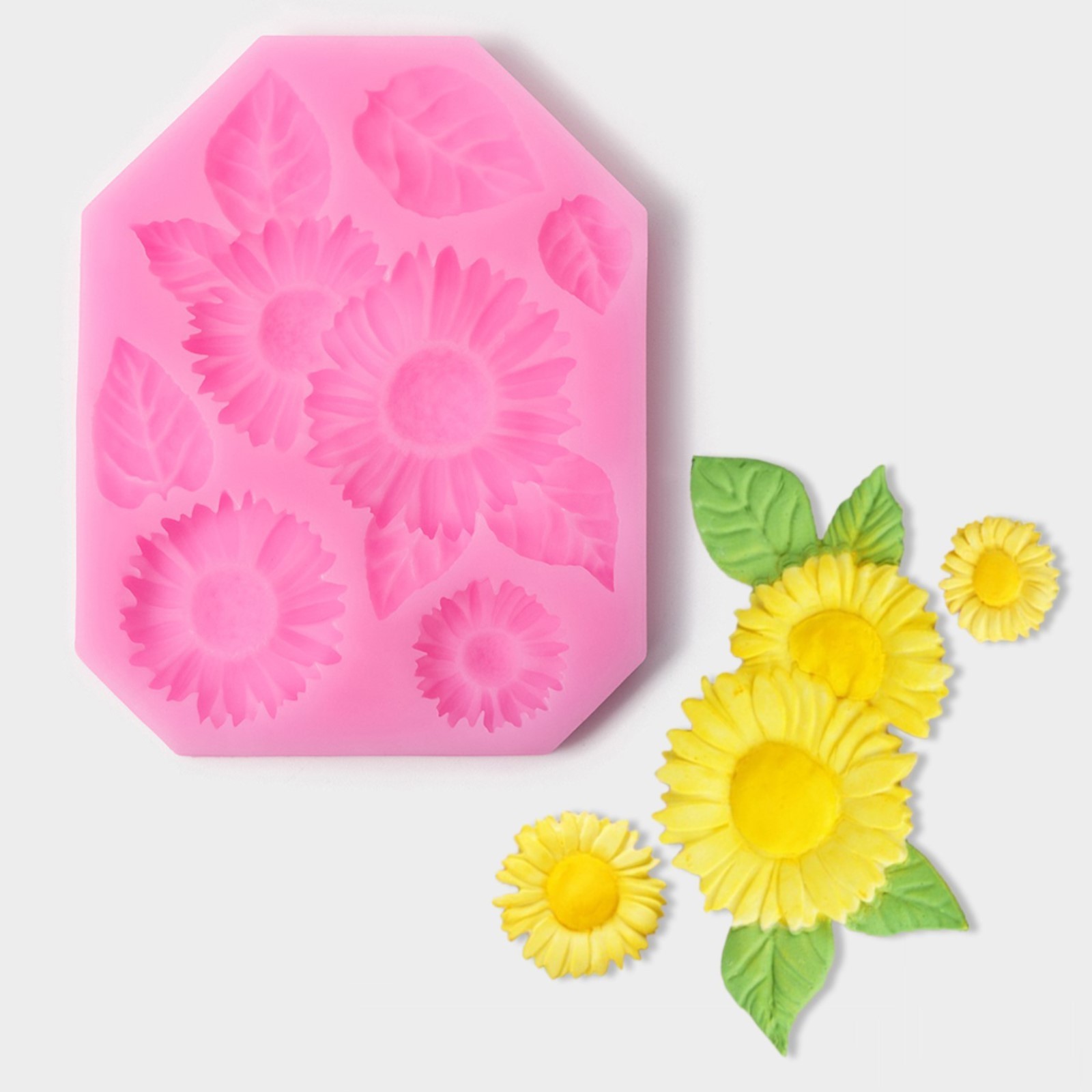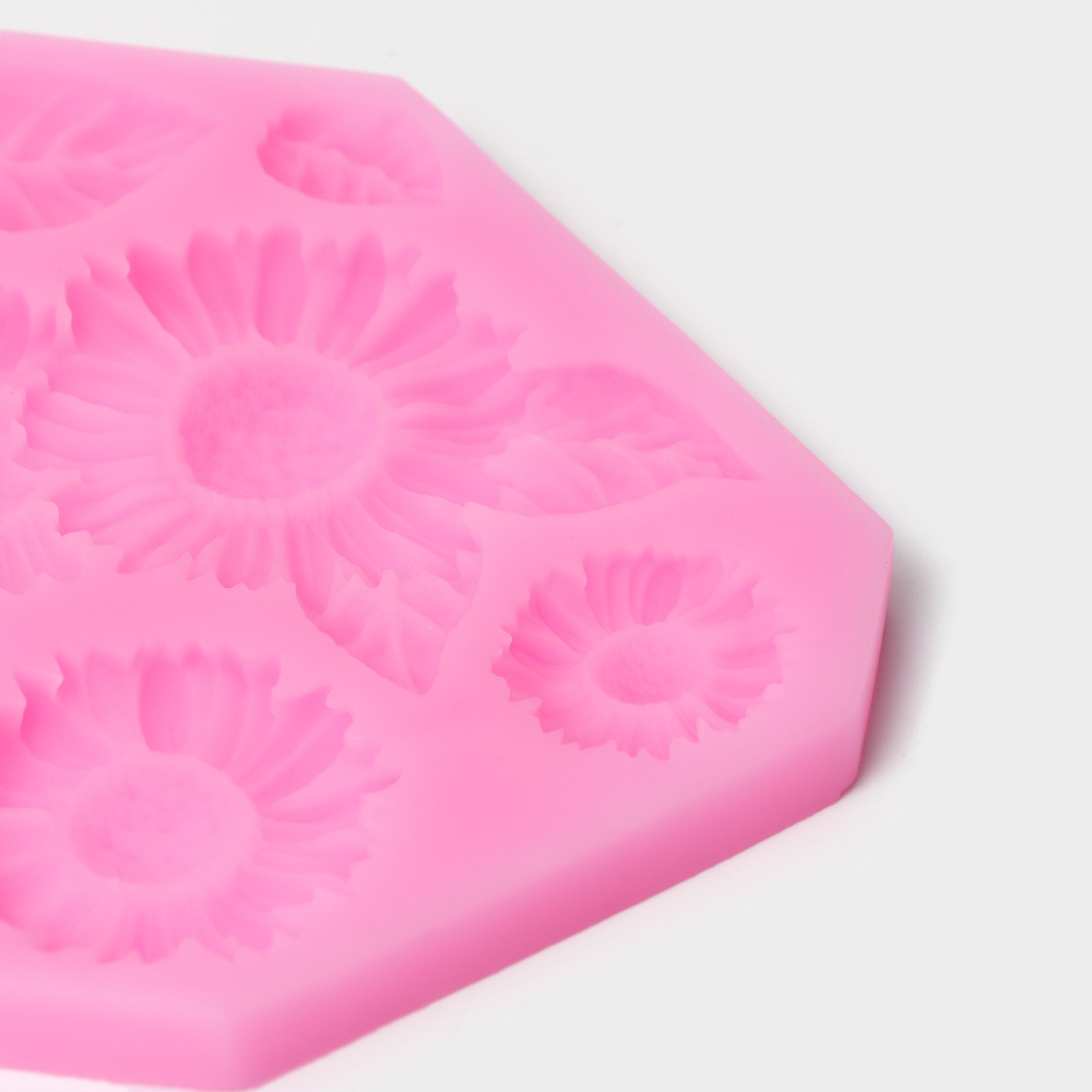 Молд «подсолнухи», силикон, 12x9,5 см, цвет розовый