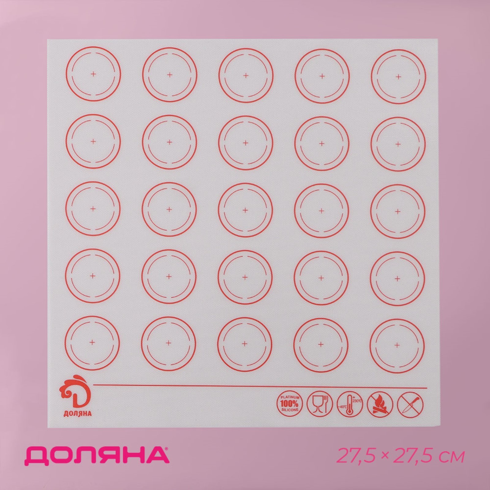 Силиконовый коврик для макаронс армированный доляна, 27,5x27,5 см