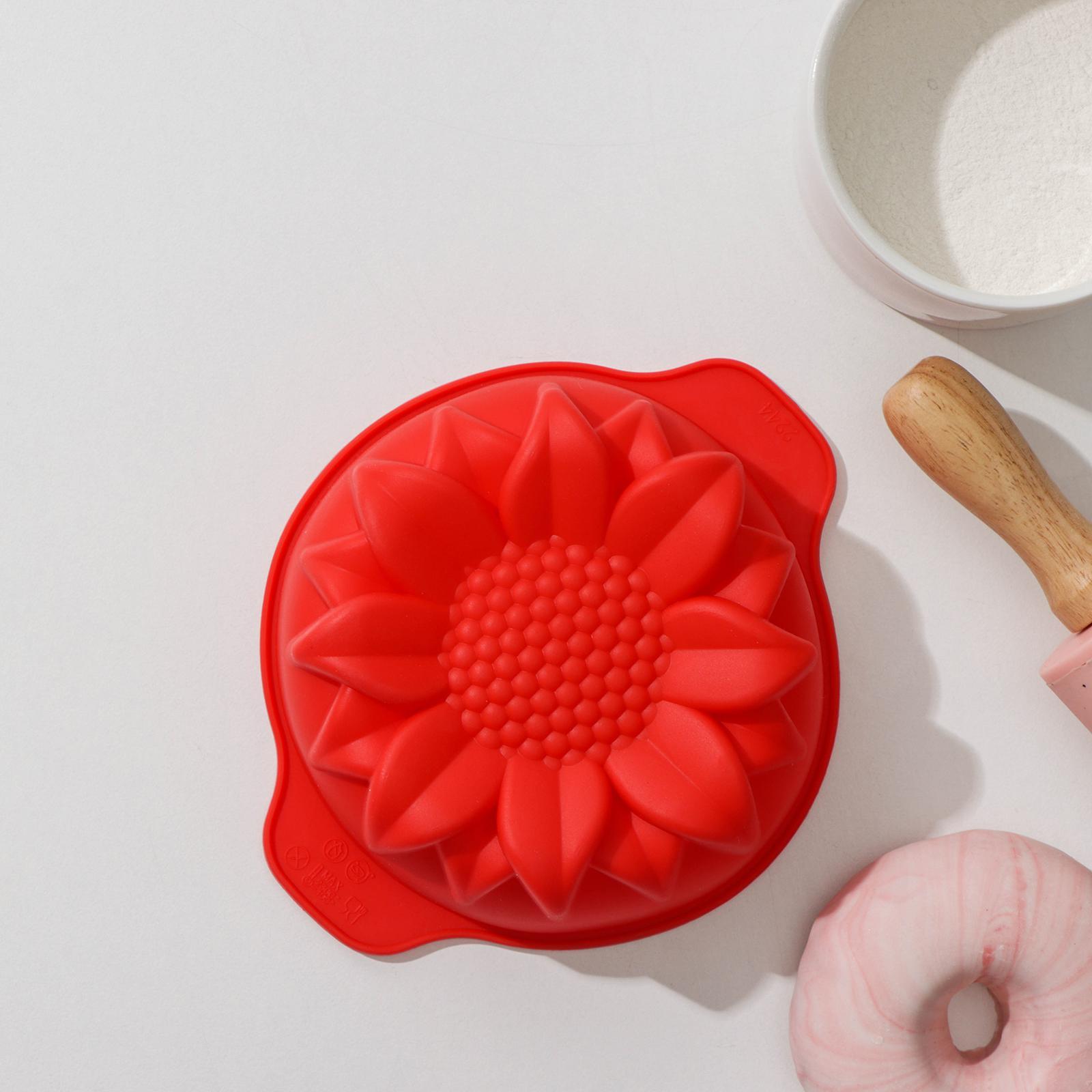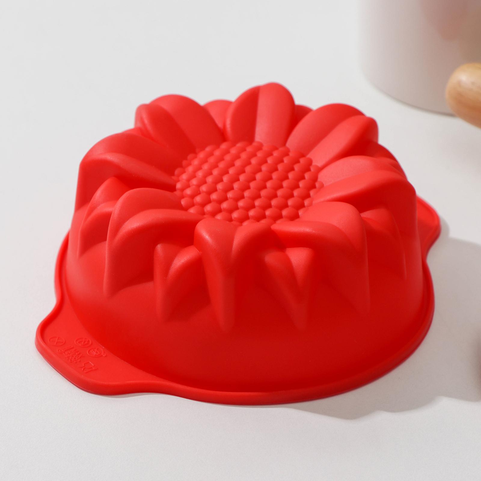 Форма силиконовая для выпечки доляна «подсолнух», 15,3x13 см, внутренний размер 12x12x4,5 см, цвет красный. Цвет: Красный Форма: Круглая Фасовка, шт.: 1 Количество ячеек: 1 Крышка: Нет Материал: Силикон Тип покрытия: Без покрытия Ячейки: Нет Наличие палочек для форм: Нет Тип формы: Для кексов Разъёмная форма: Нет Можно мыть в посудомоечной машине: Да  развернуть описание ▼
