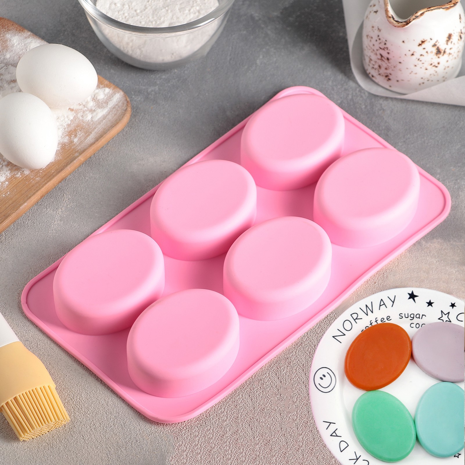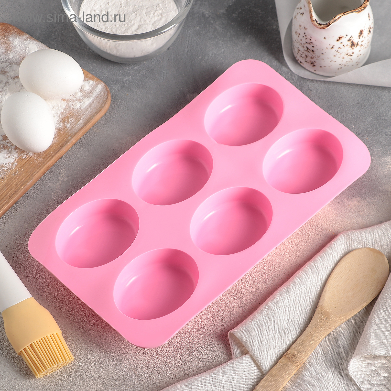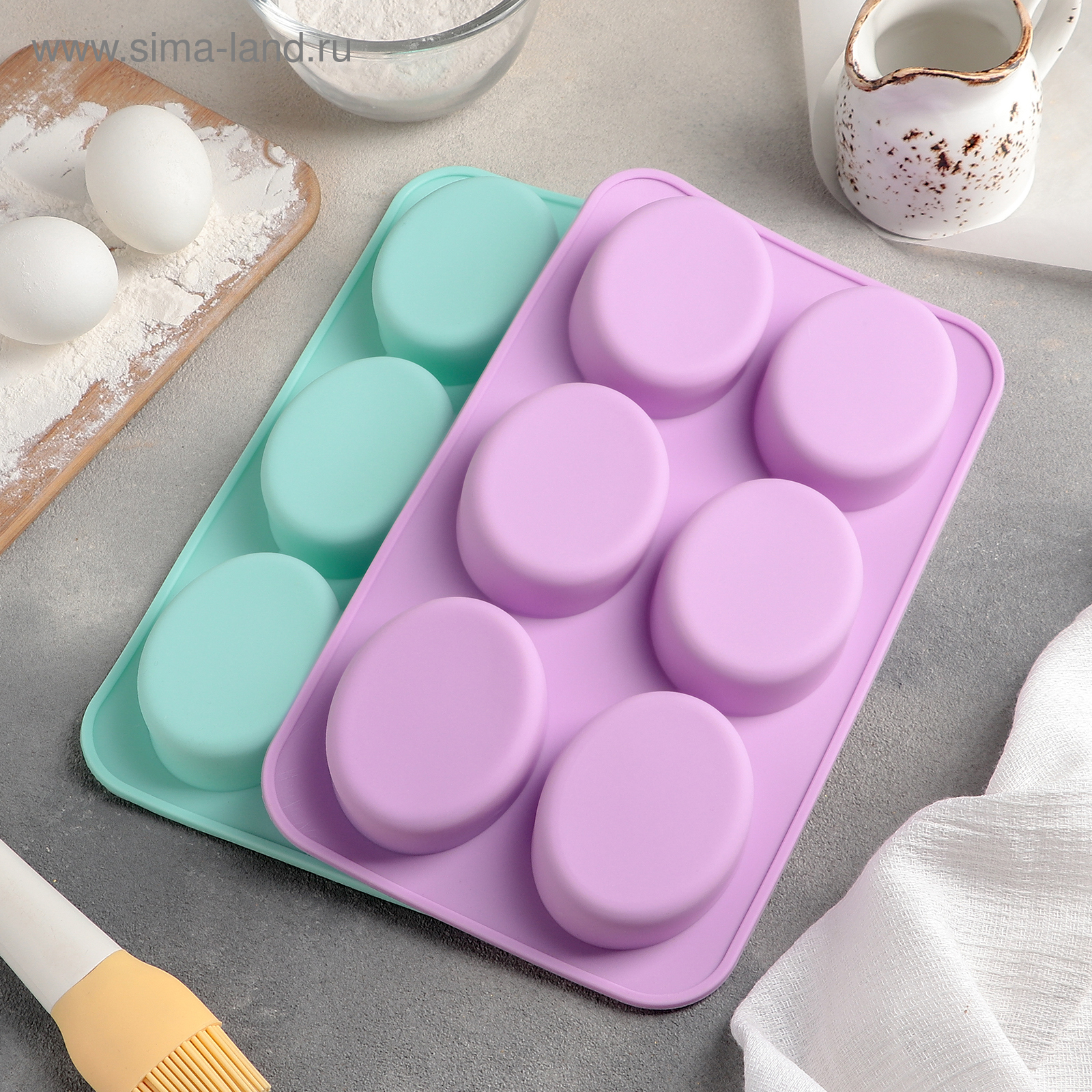 Форма силиконовая для выпечки доляна «фигуры. овал», 28x16x2 см, 6 ячеек, цвет микс
