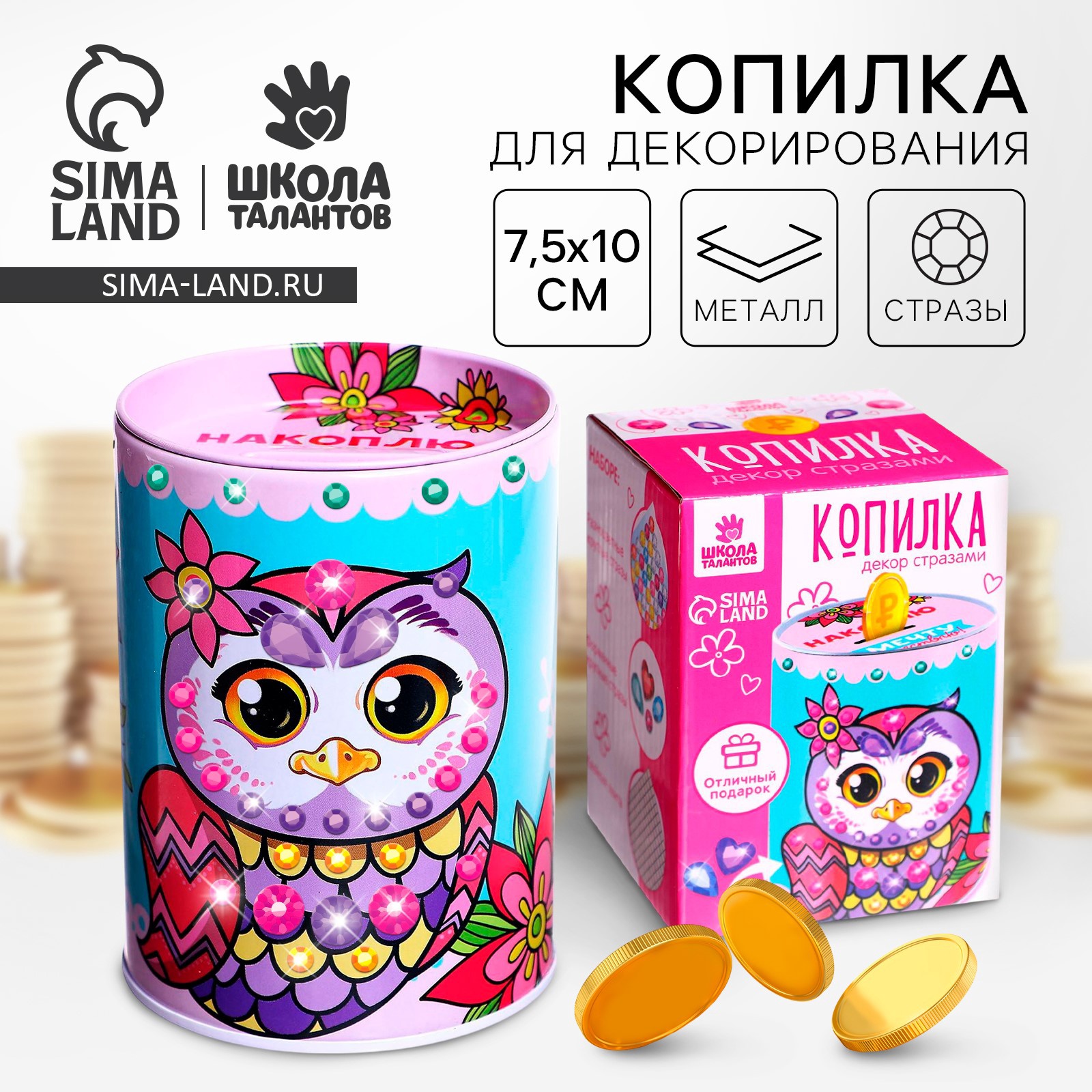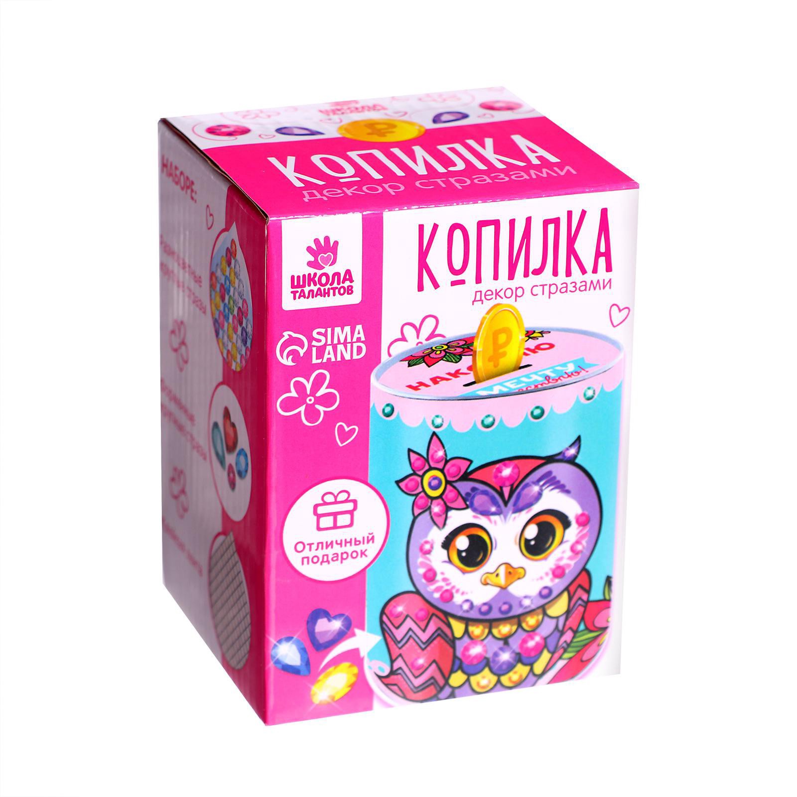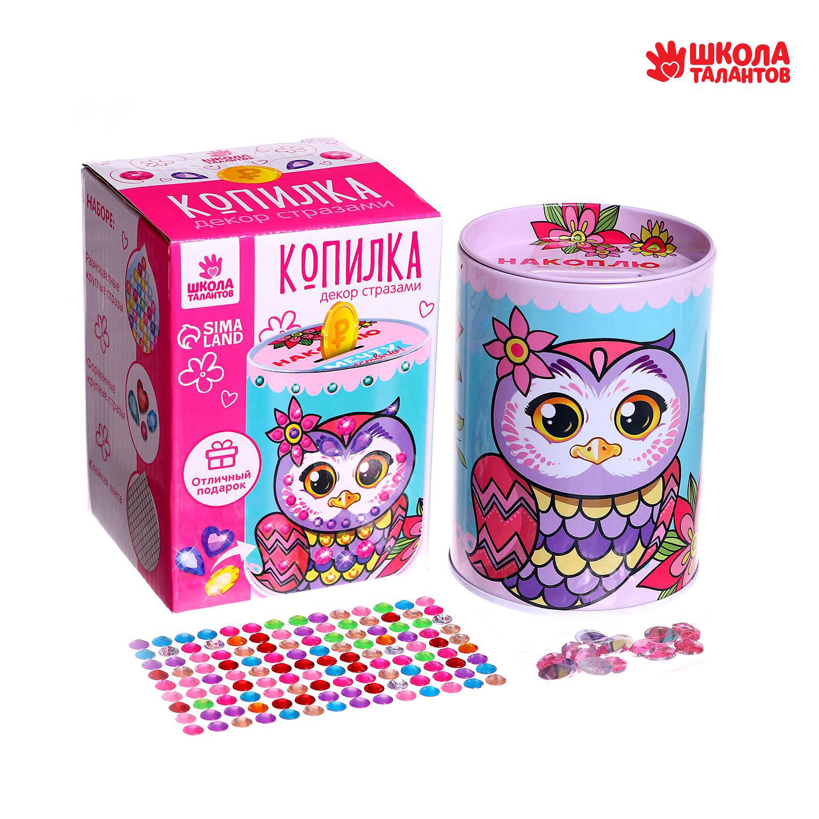 Набор для творчества. копилка для декорирования стразами «накоплю и мечту осуществлю». Создайте копилку своими руками! С помощью этого набора ребёнок самостоятельно украсит копилку и приблизит исполнение заветного желания, начав откладывать собственные сбережения. При работе с набором у малыша разовьётся мелкая моторика, усидчивость, фантазия и аккуратность, реализуется творческий потенциал. В набор входят: копилка,разноцветные круглые стразы,форменные крупные стразы,клейкая лента.Набор:Да|Цвет:Голубой|Форма:Круглая|Высота, см:10.8|Рисунок:Да|Тематика праздника:8 Марта|Тематика праздника:Универсальная тематика|Материал:Металл|Покрытие:Краска|Тип копилки:Открытый|Составляющие набора:Копилка|Страна:Китай  развернуть описание ▼