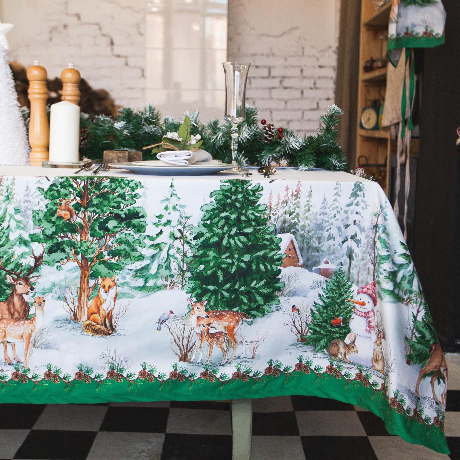Скатерть новогодняя этель «новогодний лес» 148х220 см, 100% хл, саржа 190 гр/м2 с гмво