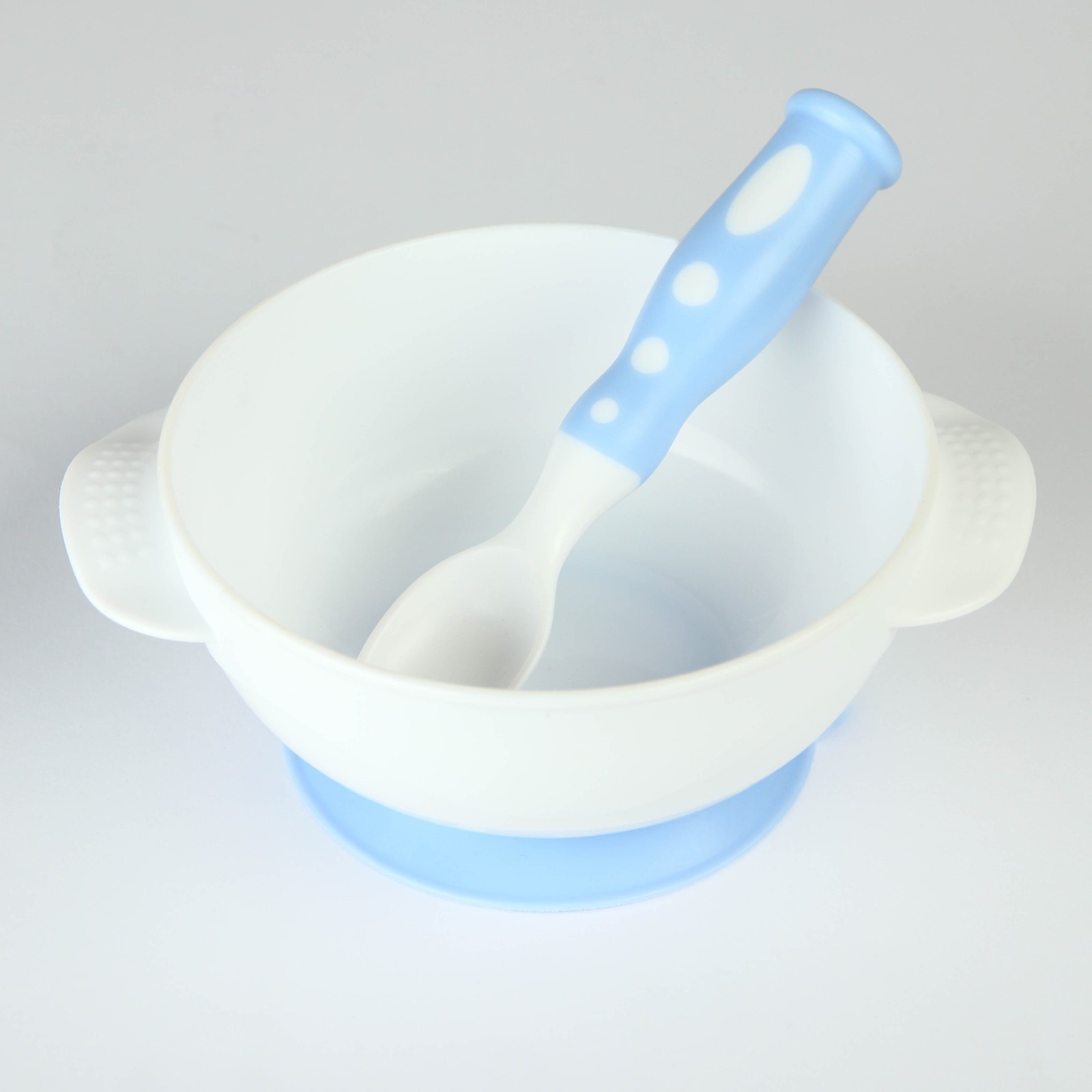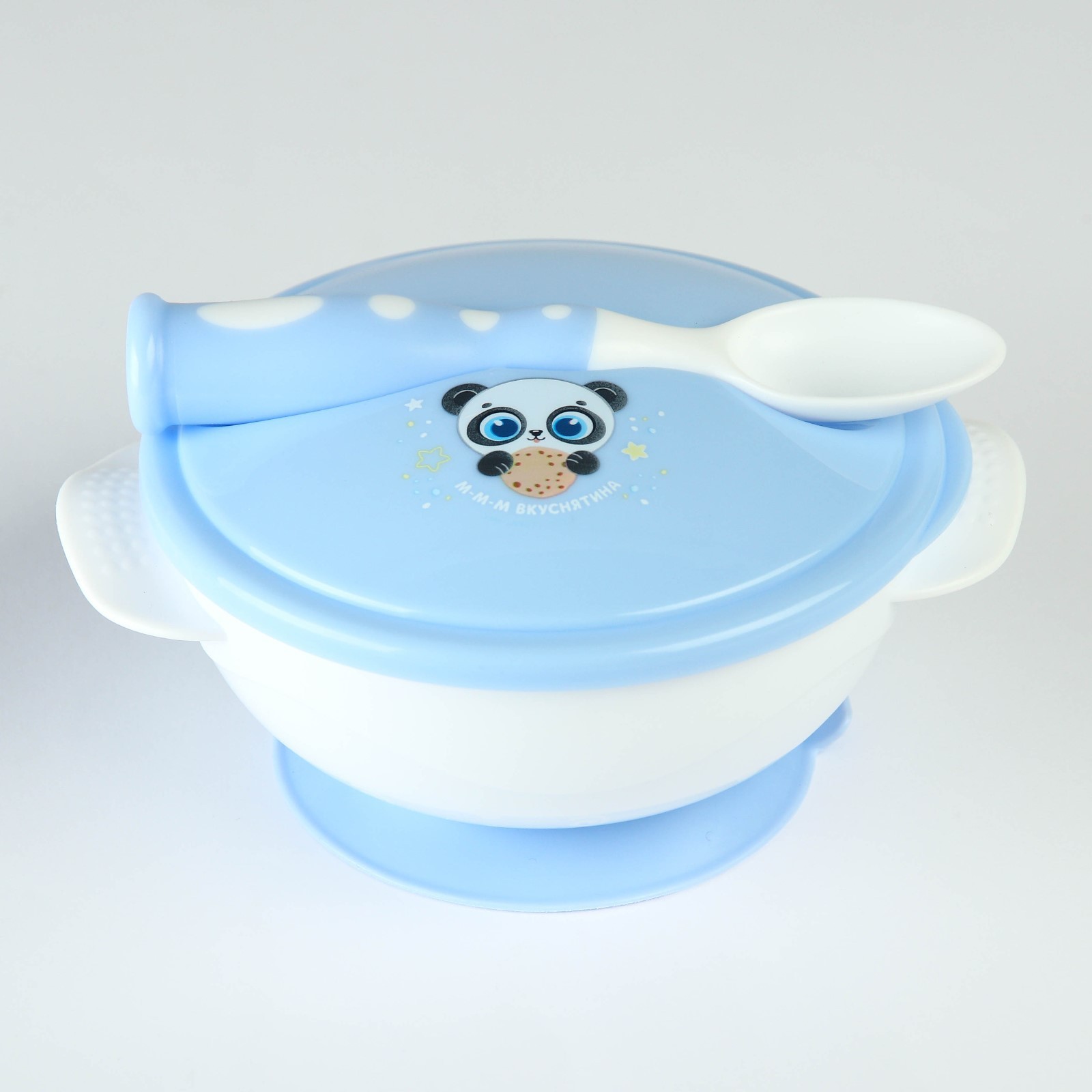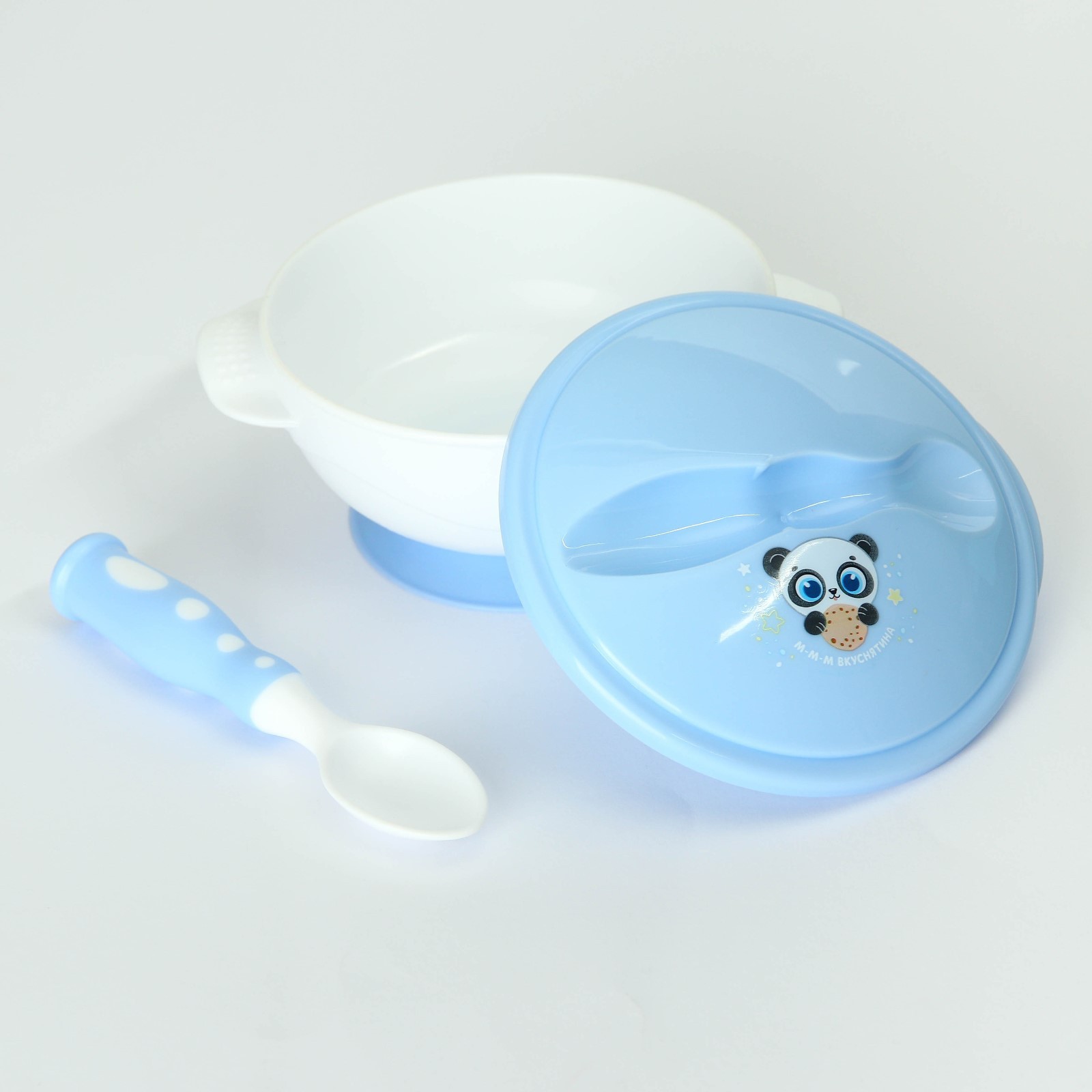 Набор детской посуды «сладкий малыш», 3 предмета: тарелка на присоске, крышка, ложка, цвет голубой