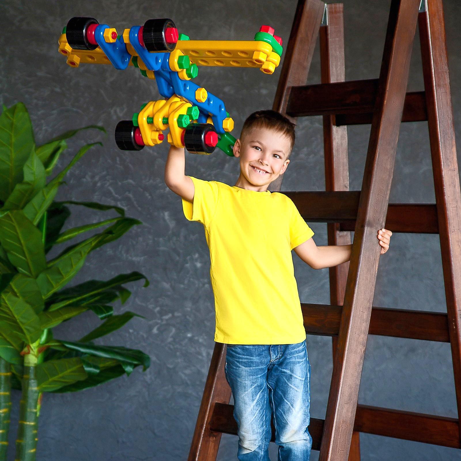 Конструктор пластиковый «авиагруппа», 5 в 1, 121 деталей. Конструктор — одна из лучших развивающих игрушек для детей. Ребёнок, словно творец, создаёт из разных элементов невиданных животных, строит небывалые замки и города, рушит и изменят их к лучшему! Чем больше деталей в конструкторе, тем выше полёт фантазии! Неоспоримая польза Красочный конструктор ТМ ВИК привлекает внимание и стимулирует познавательную активность даже малышей. Собирая различные фигуры, ребёнок в игровой форме знакомится с основными и дополнительными цветами, учится различать предметы по величине и считать их. Конструирование активно развивает моторику рук, воображение и пространственное мышление. Преимущества Правильная форма и выверенная геометрия обеспечивают точную стыковку деталей и исключают люфт.Разнообразие и насыщенность цветов радуют глаз.Полная безопасность Все элементы изготовлены из гипоаллергенного полипропилена.Материал и красители в составе конструктора — сырьё, не подвергавшееся переработке, а значит, совершенно безопасное для детей.Края деталей обрабатываются вручную, а затем проходят дополнительную проверку на отсутствие острых мест, поэтому малыш никогда не поцарапается во время игры.Безопасный и прочный материал практически не ломается и выдерживает большие нагрузки.Качество, подтверждённое сертификатами. Товар разработан и произведён в России из российских материалов и соответствует всем ГОСТам. Строгий контроль на всех этапах, начиная от производства, заканчивая упаковкой товара, исключает брак и делает конструктор действительно качественным. Имеет сертификат соответствия ЕАС. Примечание: набор содержит мелкие элементы, поэтому предназначен для деток от 3 лет. Рекомендуется играть под присмотром взрослых. Для кого:Для мальчика|Возраст:От 3 лет|Среднее время сборки, мин:60|Количество элементов:121|Материал:Пластик|Вид:Винтовой|Тематика конструктора:Транспорт|Уровень сложности:Начальный|Размер деталей:Большие детали|Страна:Россия  развернуть описание ▼
