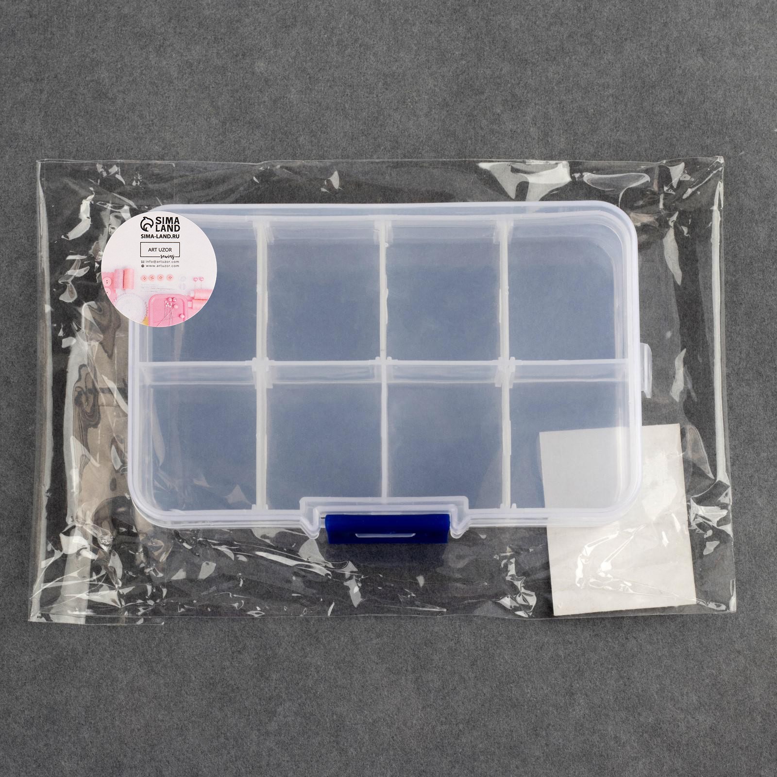 Органайзер для декора, со съёмными ячейками, 8 отделений, 10,5 X 6,7 X 2,2 см, цвет прозрачный