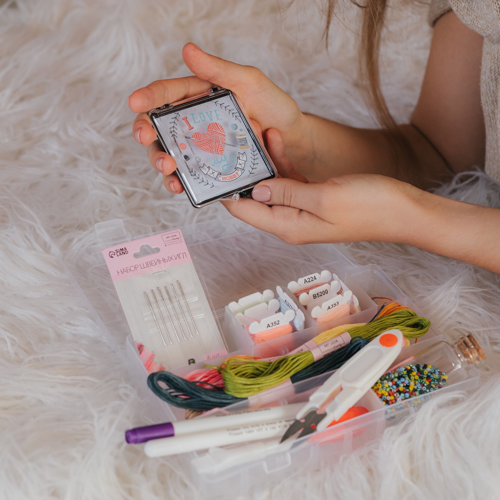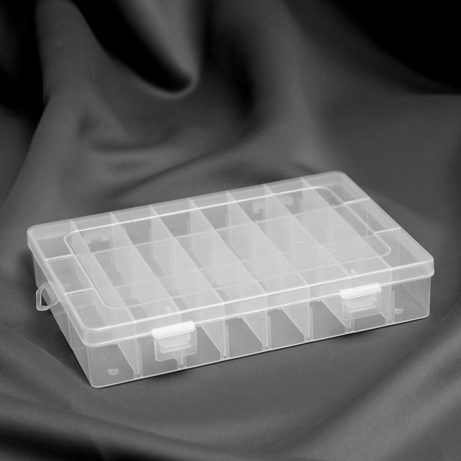 Органайзер для рукоделия, со съёмными ячейками, 24 отделения, 19,5 X 13,5 X 3,5 см, цвет прозрачный