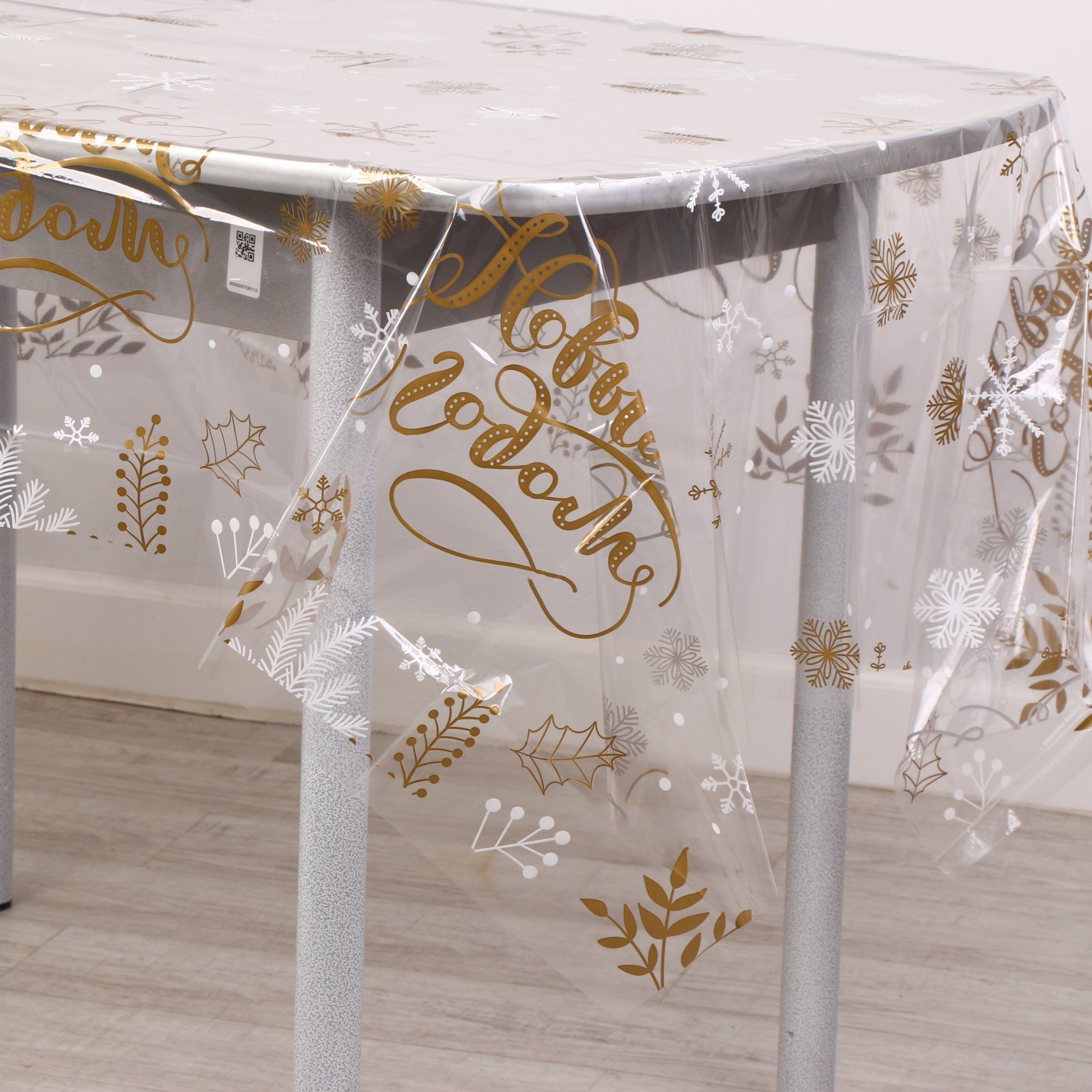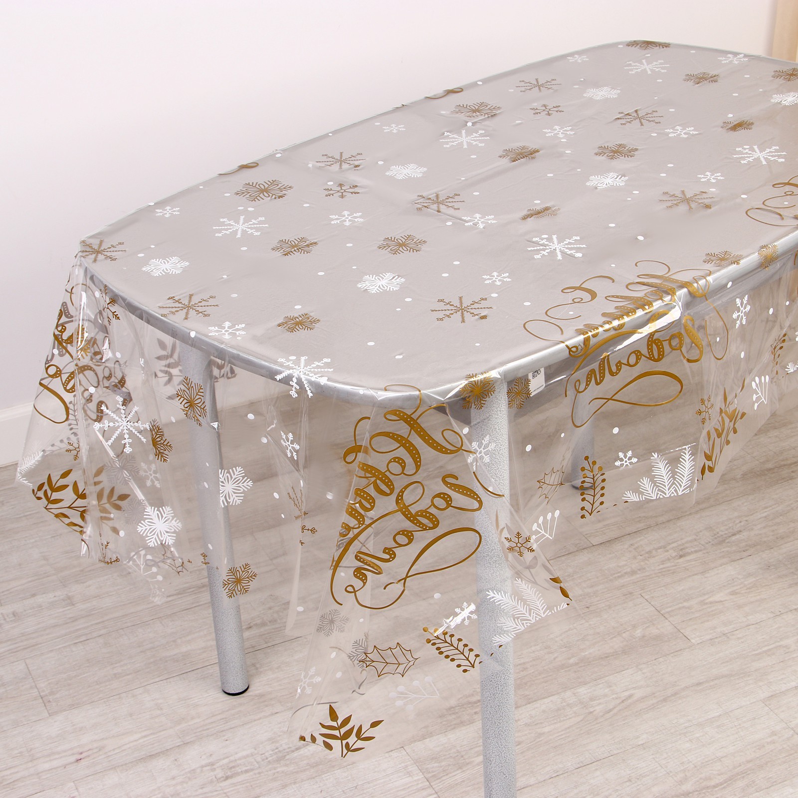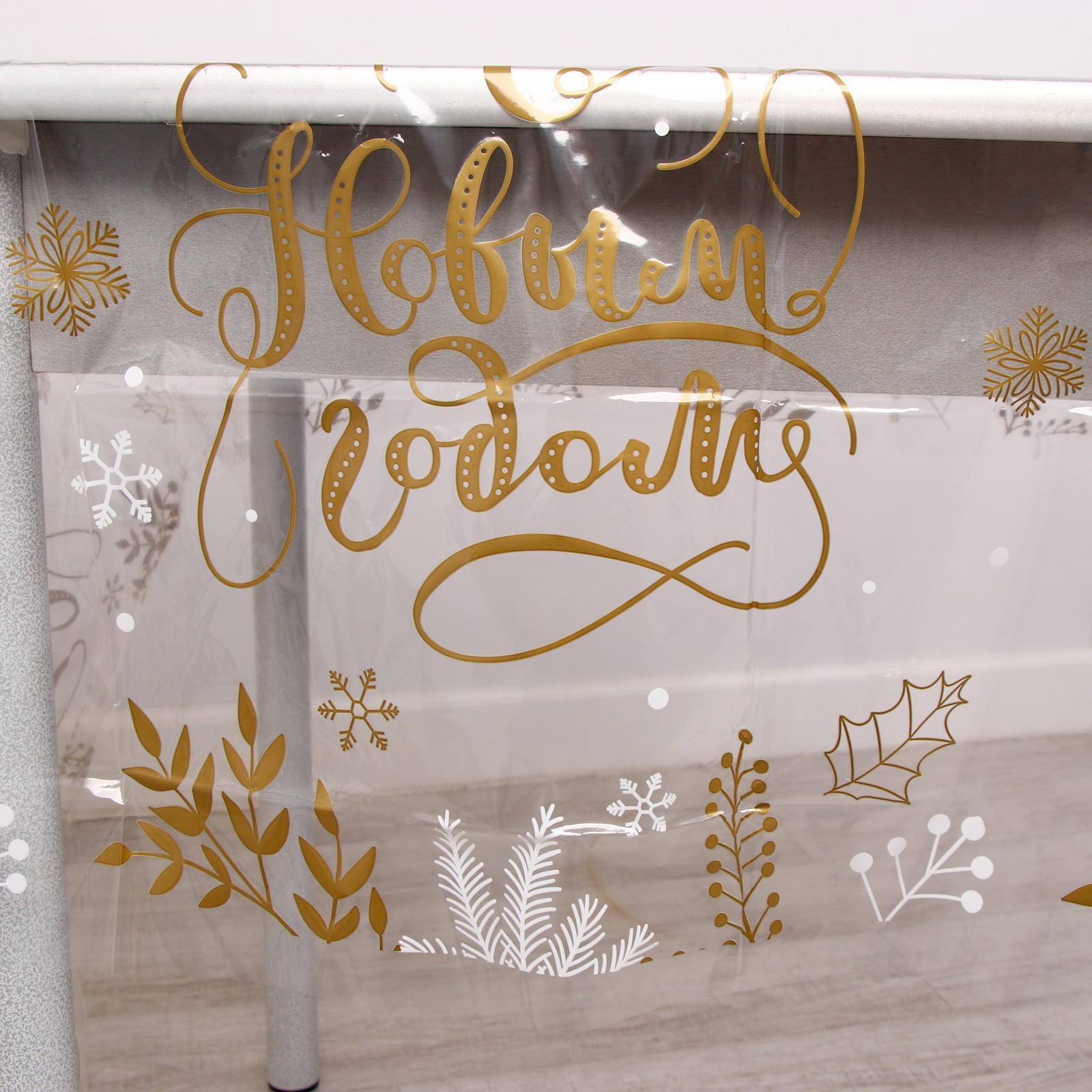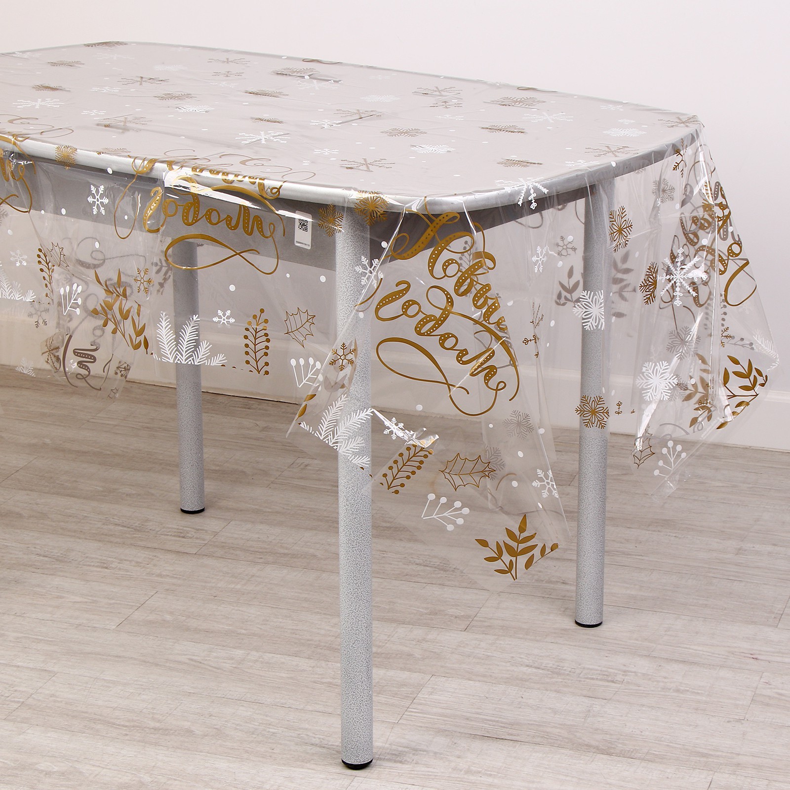Новогодняя скатерть одноразовая «с новым годом!» (прозрачная), 130х200 см