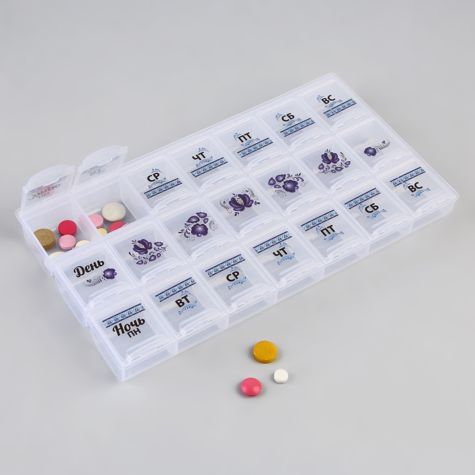 Таблетница - органайзер "гжель" 21 секция