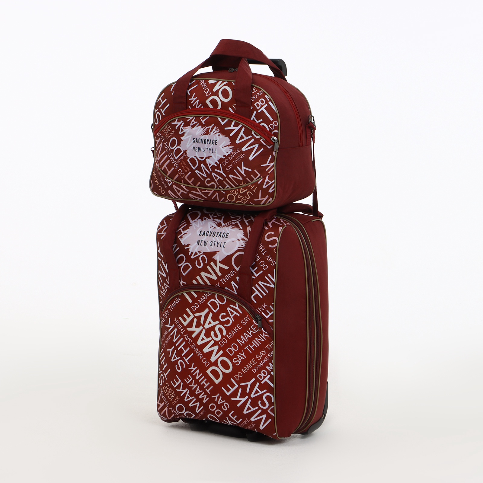 Чемодан малый с сумкой, 20", отдел на молнии, наружный карман, цвет бордовый.    Цвет: Бордовый Количество колёс: 2 Возраст: Взрослый Материал: Текстиль Размер: 20" (S) Дополнительный объём: С увеличением Материал колёс: Пластик Каталог ВБ: Да  развернуть описание ▼