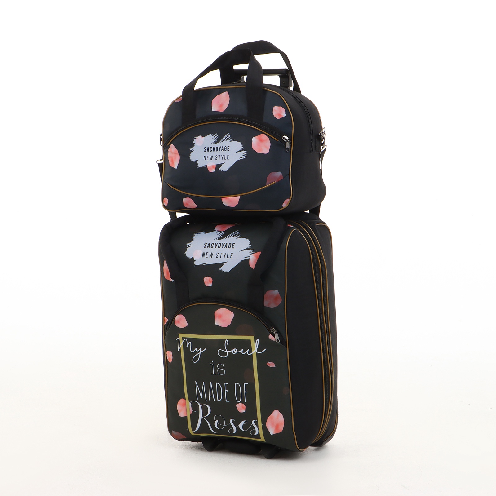 Чемодан малый 37 л (s) с сумкой, отдел на молнии, с расширением, цвет чёрный.   Откройте для себя идеального спутника для коротких поездок — малый чемодан объёмом 37 литров с сумкой от бренда Sacvoyage.  Этот стильный и функциональный аксессуар идеально подходит для тех,  кто ценит удобство и стиль в каждой детали.  Этот чемодан изготовлен из прочного текстиля,  который не только гарантирует долговечность,  но и придаёт элегантный внешний вид.  Основное отделение на молнии с возможностью расширения позволяет легко адаптироваться к количеству багажа,  а дополнительная сумка станет отличным решением для ручной клади.  Просторное хранение: Объём 37 литров и функция расширения предоставляют дополнительное место для ваших вещей. Лёгкость в движении: Два манёвренных пластиковых колеса и телескопическая ручка делают транспортировку удобной и бесшумной. Надёжные материалы: Высококачественный текстиль защищает ваш багаж от износа и влаги. Компактность: Удобные размеры чемодана и сумки позволяют легко использовать их в качестве ручной клади. Практичность: Наружный карман на молнии обеспечивает быстрый доступ к мелким вещам. Сделайте ваше путешествие максимально комфортным и стильным с чемоданом от Sacvoyage.  Этот набор — идеальный выбор для тех,  кто ценит качество,  практичность и элегантность.  Цвет: Чёрный Количество колёс: 2 Возраст: Взрослый Материал: Текстиль Размер: 20" (S) Дополнительный объём: С увеличением Материал колёс: Пластик Каталог ВБ: Да  развернуть описание ▼