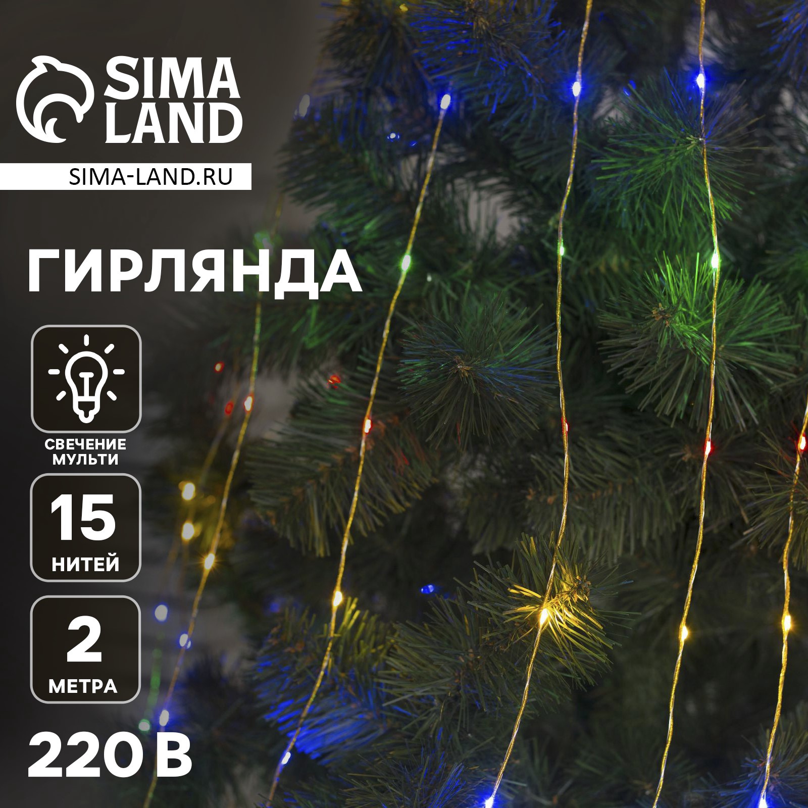 Гирлянда «конский хвост» 15 нитей по 2 м, Ip20, золотистая нить, 300 Led, свечение мульти, 220 в