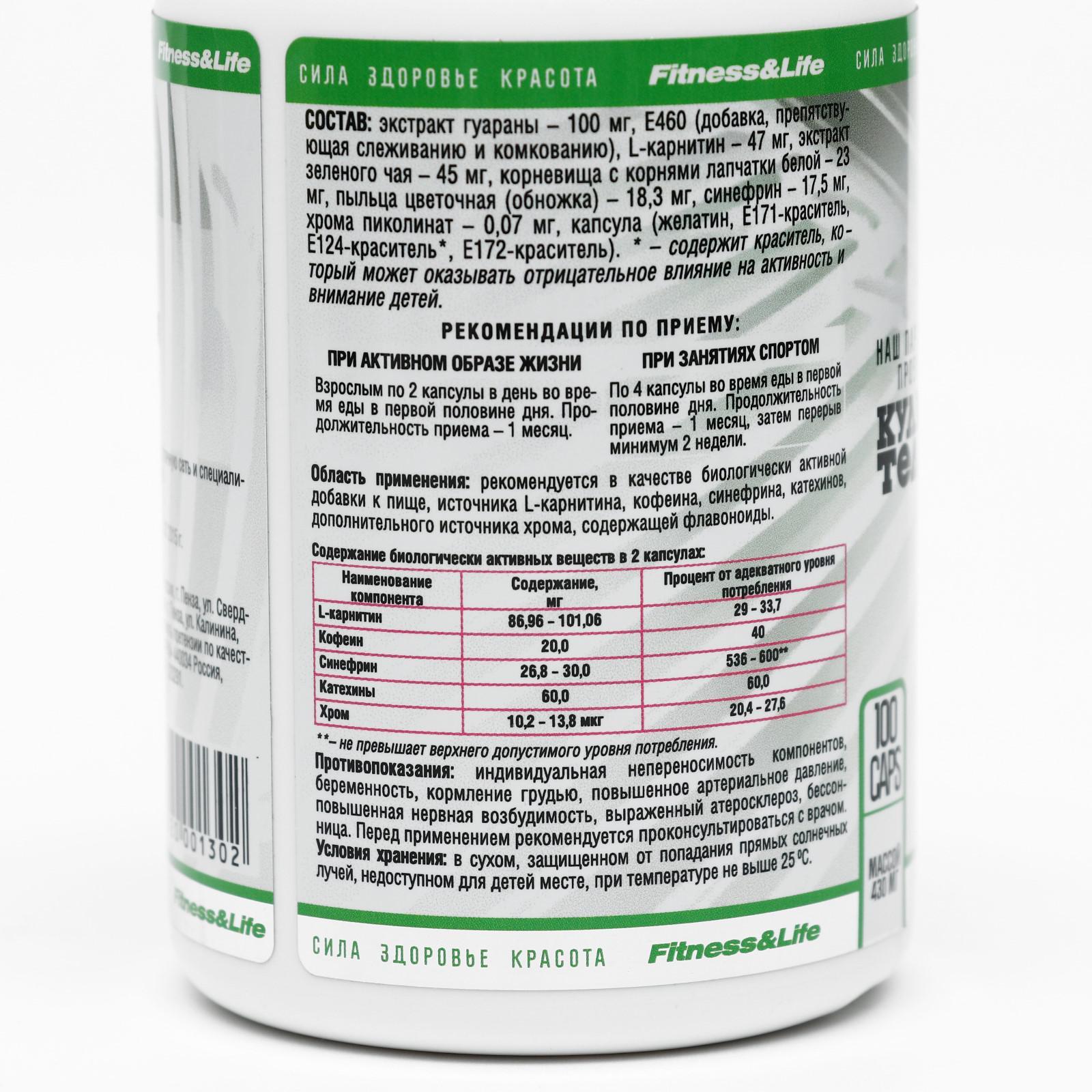 Комплекс «кило-лайт. утро», уменьшение аппетита, заряд энергией, 100 капсул. Утренний препарат включает такие компоненты: экстракт гуараны, L-карнитин, экстракт зеленого чая, корневища с корнями лапчатки белой, пчелиная пыльца-обножка, синефрин, порошок ламинарии. Пищевая добавка содержит минералы и аминокислоты, которые регулируют центры насыщения организма, благодаря чему аппетит держится в узде. Кроме того дает силу и бодрость, которые необходимы в течение дня. Отметим, что препарат дает максимальное количество энергии при минимуме калорий. Согласитесь, это крайне важно для всех, кто сидит на диете. Так вы получаете возможность зарядиться энергией на весь день во время завтрака. Гуарана – это растение из Южной Америки, которое веками применялось местными индейцами в качестве стимулирующего средства. Установлено, что вещества, содержащиеся в семенах этого кустарника, нормализуют жировой обмен, улучшают состояние кишечника, повышают выносливость. Важное свойство гуараны — способность подавлять аппетит, также она выводит из организма токсины и лишнюю жидкость. Это отличное средство, чтобы зарядить энергией на весь день. L-карнитин – еще один важный компонент добавки. Он участвует во многих обменных процессах, способствуя сжиганию жиров. Дело в том, что это витаминоподобное вещество доставляет жирные кислоты в митохондрии, где происходит их окисление. По сути оно ускоряет процесс распада жировых тканей, а кроме того способствует росту мышечной массы. Зеленый чай – компонент, который также помогает избавиться от лишних килограммов. Совсем не случайно его очень любят по всему миру. Это превосходный антиоксидант, который способствует жиросжиганию. Исследованиями установлено, что он содержит огромное количество витаминов и микроэлементов. В листьях растения много теина — вещества, которое родственно кофеину, но действует мягче, поскольку всасывается в организм постепенно. Именно поэтому чай оказывает бодрящее действие и повышает настроение. Также это растение улучшает работу ЖКТ и стимулирует обмен веществ. Корни лапчатки белой воздействуют на метаболизм жиров и нормализуют работу щитовидной железы. Не все знают, что проблемы с весом зачастую возникают именно из-за расстройства щитовидной железы (гипотериоза). В таких случаях даже самая лучшая диета не даст ожидаемого эффекта. Синефрин включен в добавку Kilo Ligh» тоже не случайно. Это вещество, которое добывают из горького апельсина, по своему действию схоже с эфедрином, но безопаснее и редко вызывает побочные эффекты. Являясь стимулятором адренорецепторов, синефрин вызывает более активное окисление жиров. Также это хорошее дополнение к низкокалорийному питанию. Кроме того данное вещество позволяет уменьшить аппетит за счет повышения уровня глюкозы в крови. Дает выносливость и оказывает психостимулирующее воздействие, что увеличивает расход калорий во время тренировок. Ламинария — прекрасное подспорье в борьбе с лишним весом и целлюлитом. Как известно, это растение богато йодом, который помогает восстановить нарушение обмена веществ, одну из причин ожирения. Также йод воздействует на работу щитовидной железы, что благотворно отражается на внешнем виде. Ламинария способствует расщеплению жиров в подкожной клетчатке, помогая вернуть красоту и молодость. Спосо