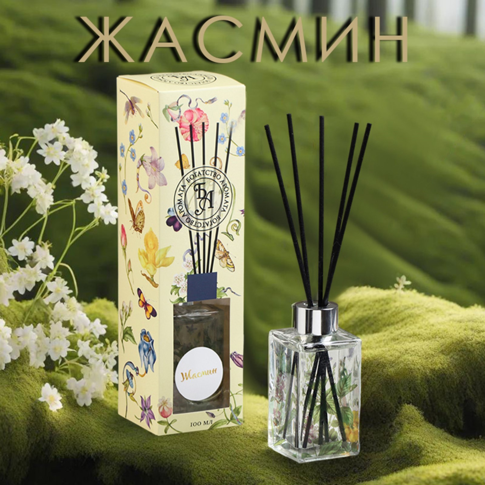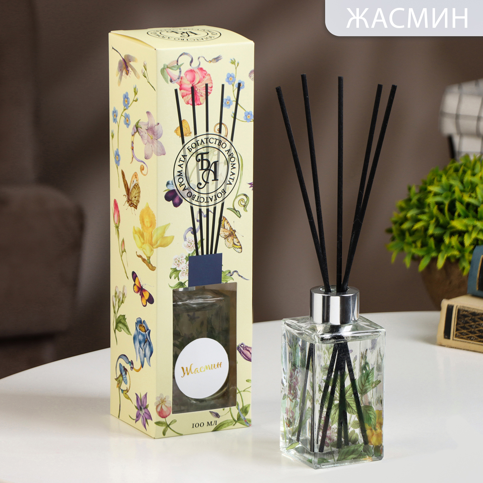 Диффузор ароматический "артдекор", 100 мл, жасмин, "богатство аромата". Диффузор — это безопасный, экологически чистый и натуральный способ ароматизации помещения, является прекрасной альтернативой ароматизированным спреям. Чтобы аромат оставался насыщенным, 1–2 раза в день доставайте палочки и переворачивайте их, вставляя другим концом в стеклянную колбу. Интенсивность аромата зависит от влажности воздуха (в более влажном помещении летучесть аромата сильнее), проветриваемости помещения и количества палочек. parts count: 0 Объём, мл: 100 Вид ароматизатора: Диффузор Аромат: Жасмин  развернуть описание ▼