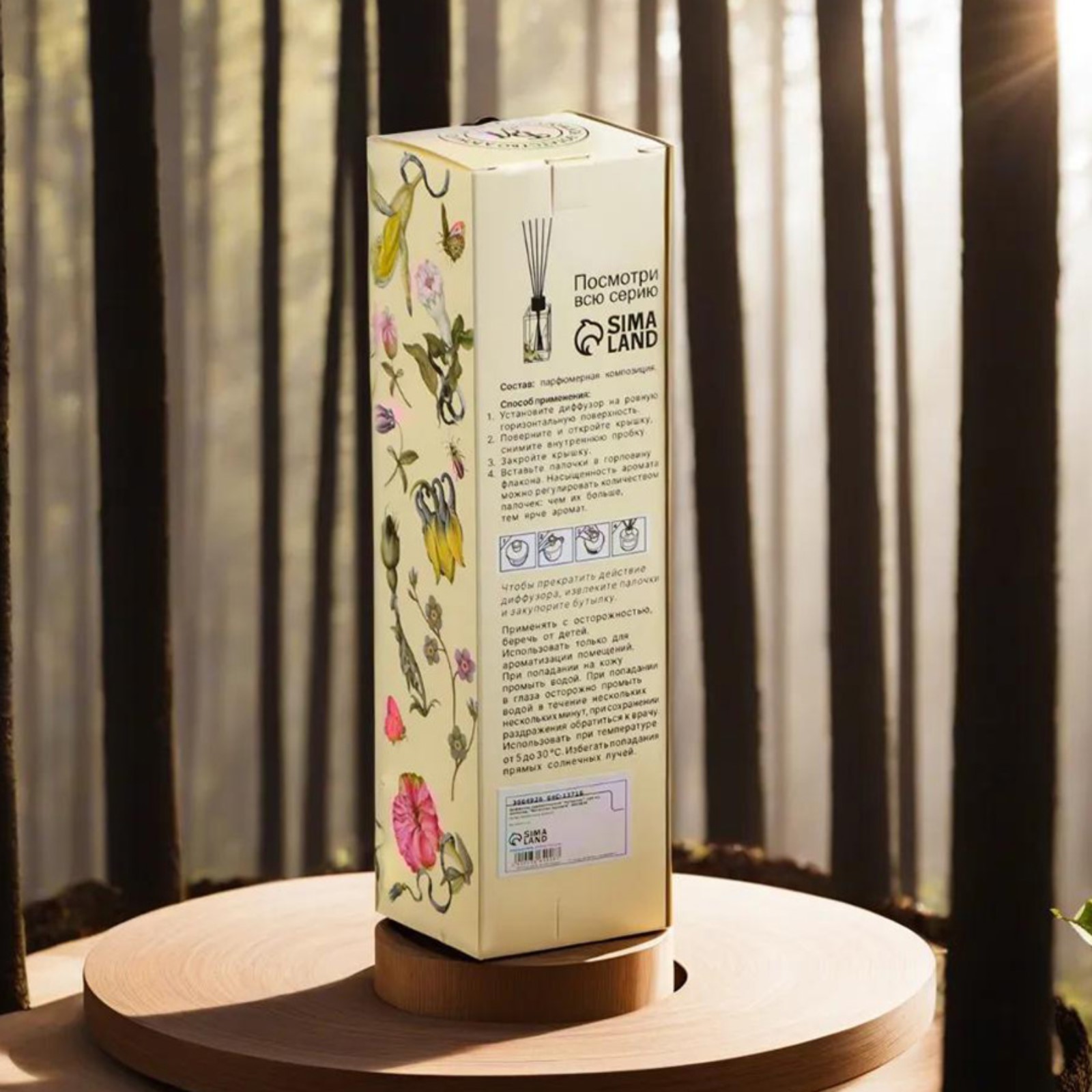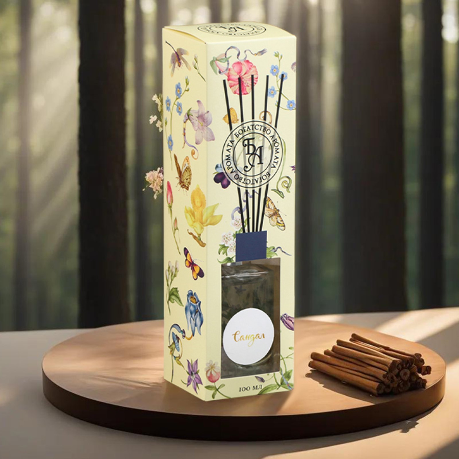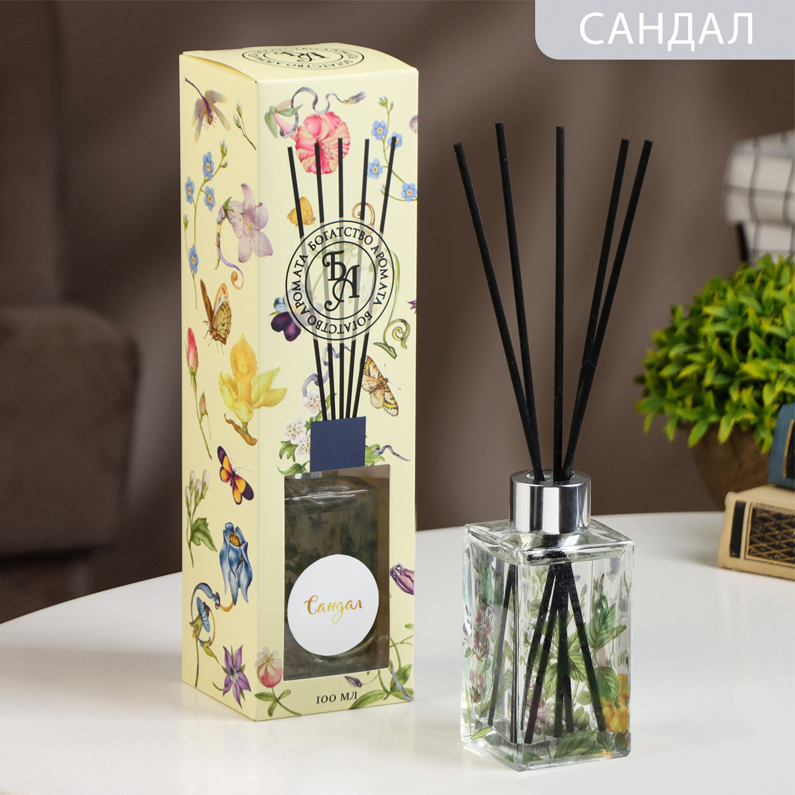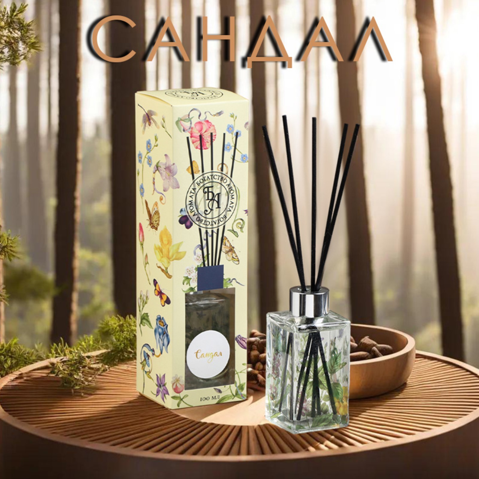 Диффузор ароматический "артдекор", 100 мл, сандал, "богатство аромата". Диффузор — это безопасный, экологически чистый и натуральный способ ароматизации помещения, является прекрасной альтернативой ароматизированным спреям. Чтобы аромат оставался насыщенным, 1–2 раза в день доставайте палочки и переворачивайте их, вставляя другим концом в стеклянную колбу. Интенсивность аромата зависит от влажности воздуха (в более влажном помещении летучесть аромата сильнее), проветриваемости помещения и количества палочек. parts count: 0 Объём, мл: 100 Вид ароматизатора: Диффузор Аромат: Сандал  развернуть описание ▼
