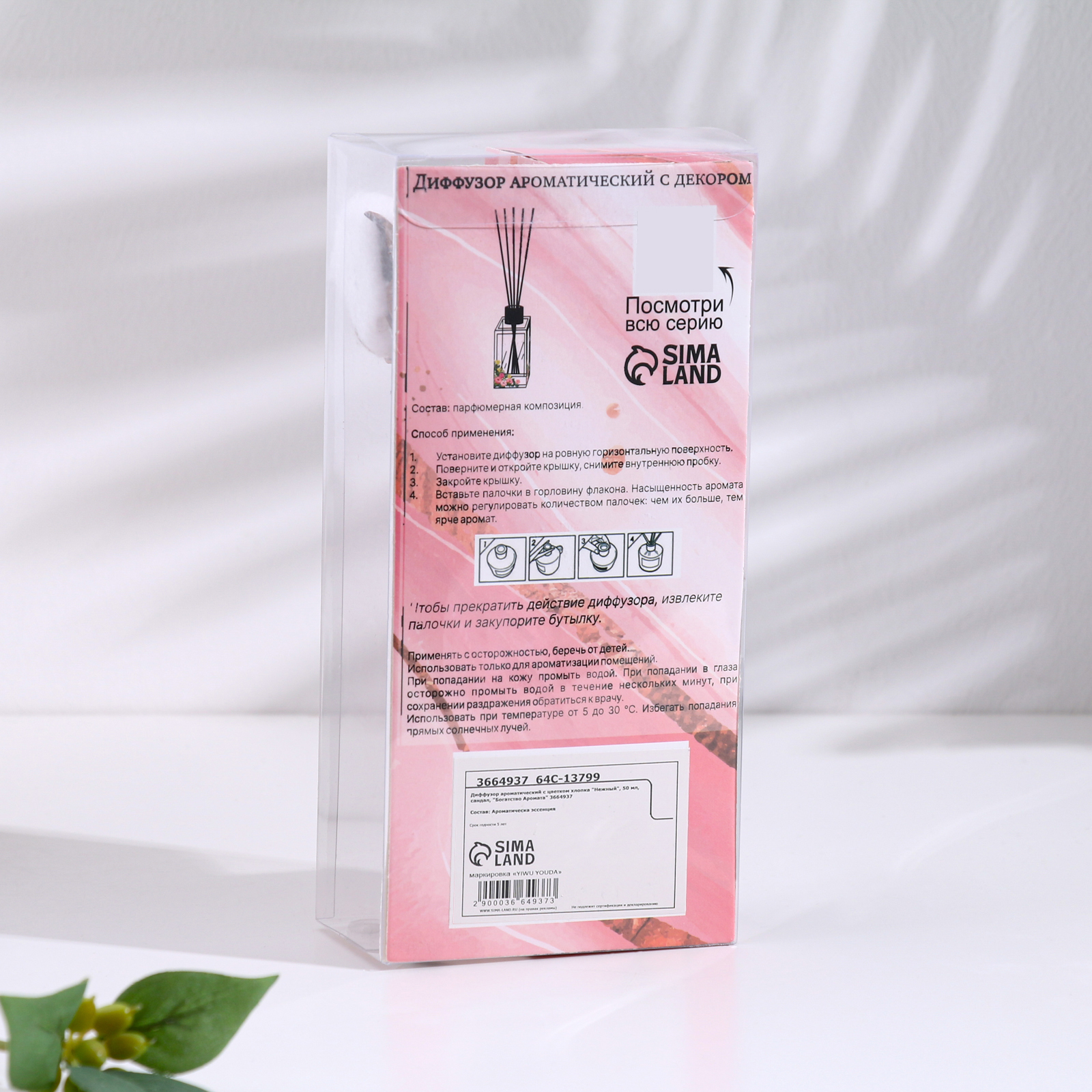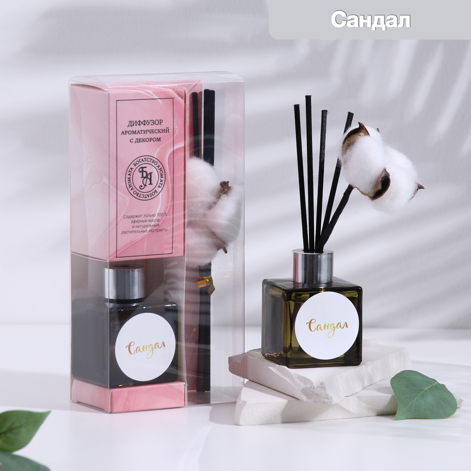 Диффузор ароматический с цветком хлопка "нежный", 50 мл, сандал, "богатство аромата"