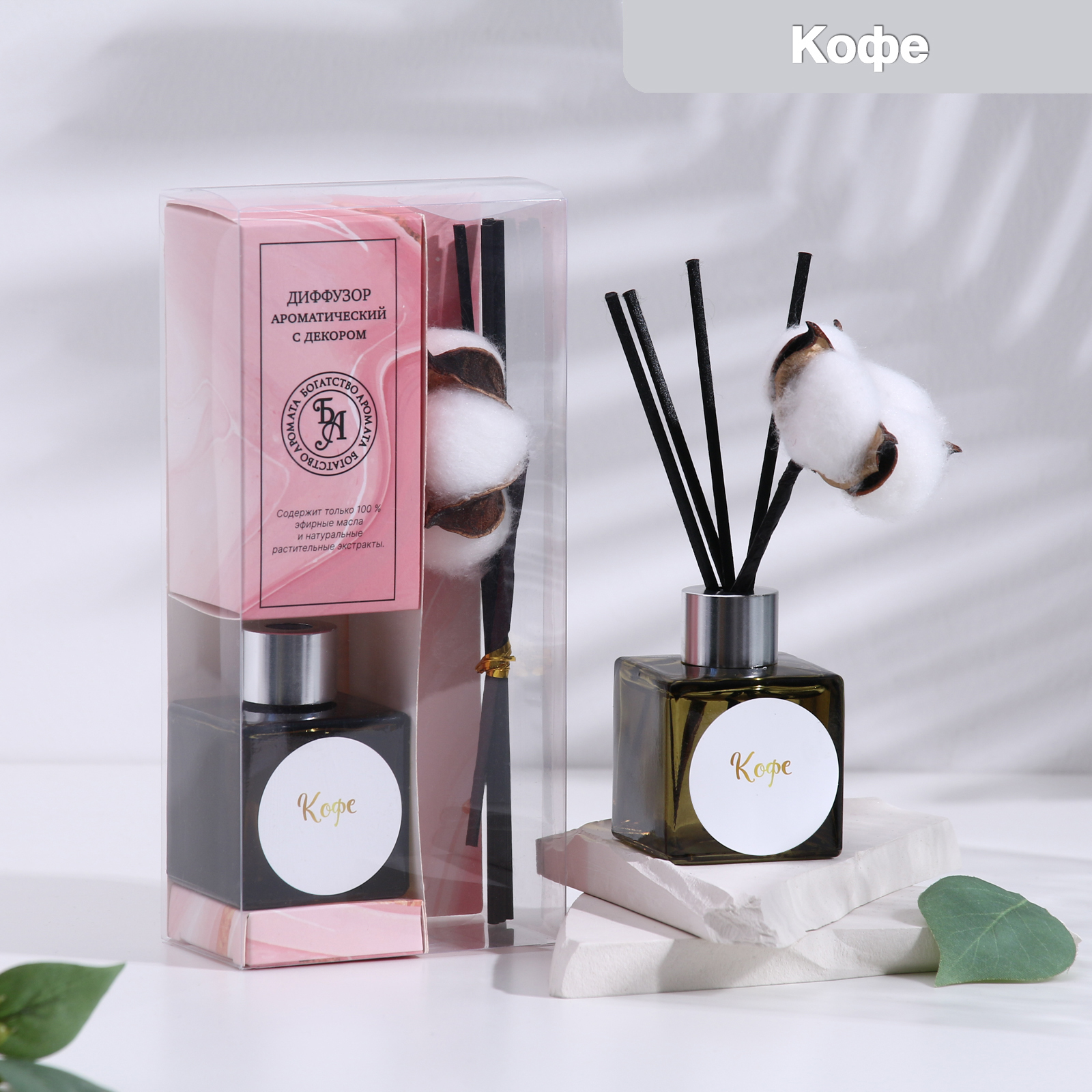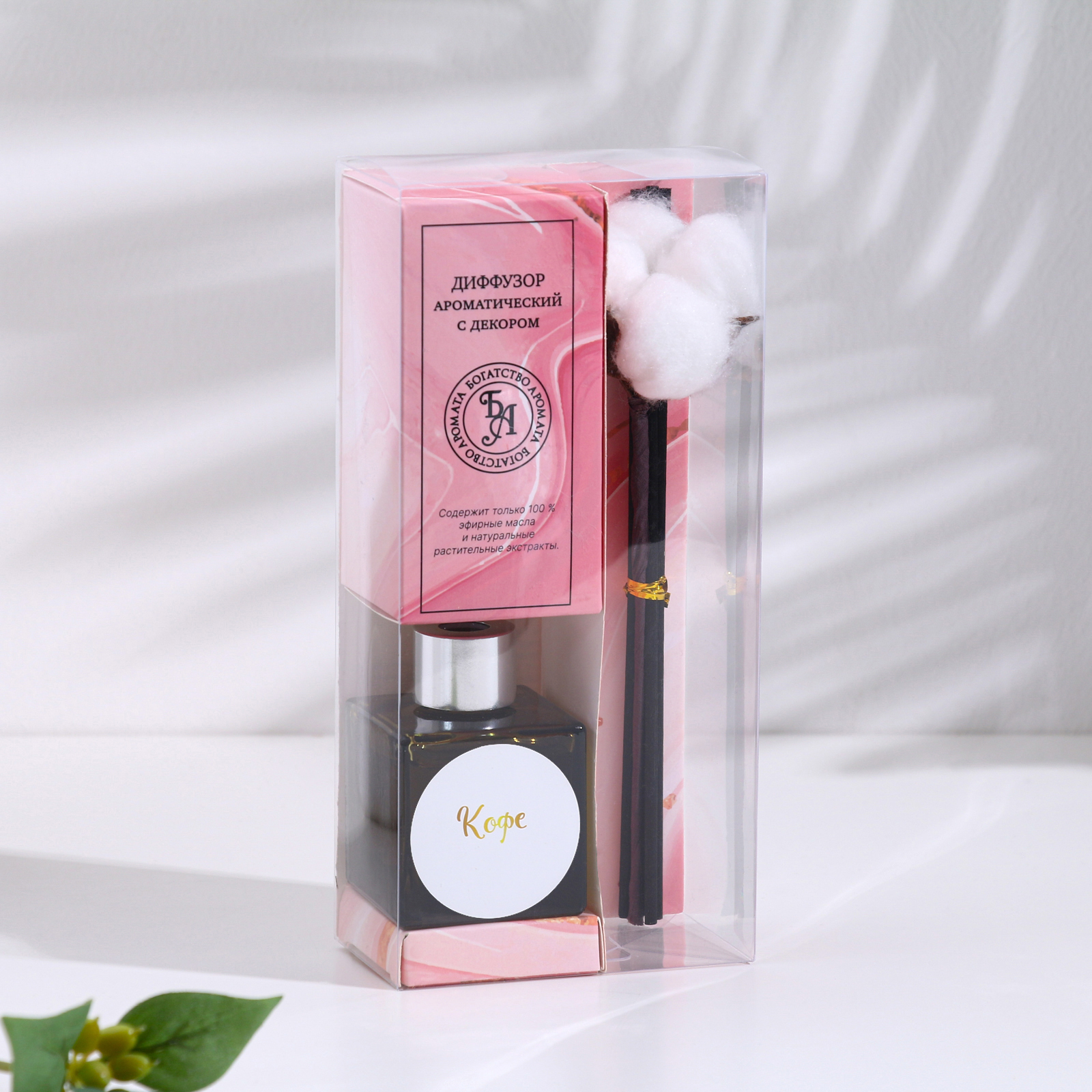 Диффузор ароматический с цветком хлопка "нежный", 50 мл, кофе, "богатство аромата"