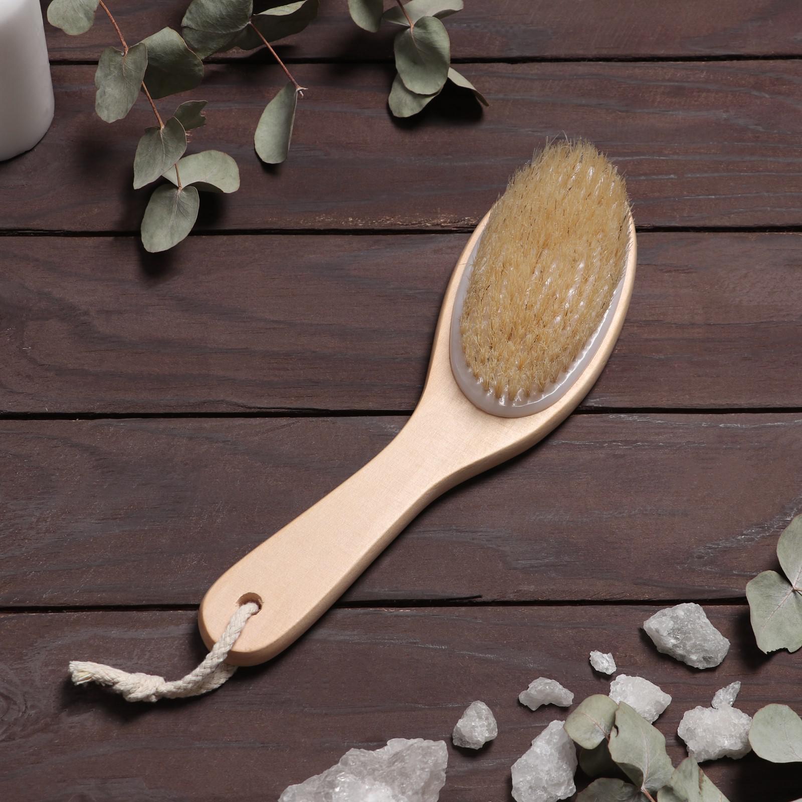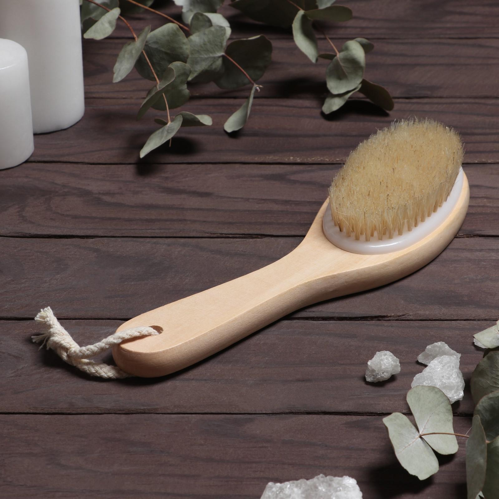 Щётка массажная для тела, с ручкой, натуральная щетина