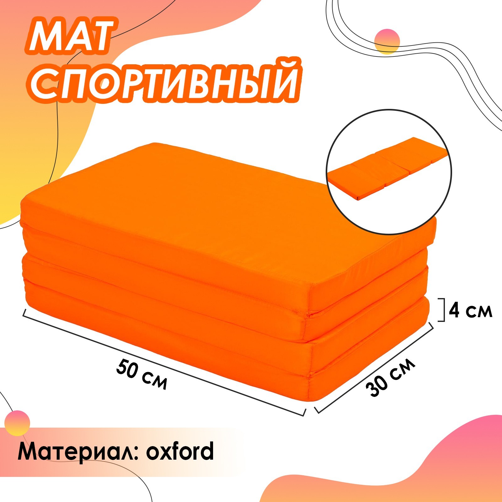 Мат onlytop, 120х50х4 см, 3 сложения, цвет оранжевый. Мат предназначен для предохранения от травм и ушибов во время выполнения упражнений. Изделие идеально подойдёт для использования дома, в детской игровой комнате и спортзале. Мягкий поролоновый наполнитель защитит вас от травм и ушибов при падении. Прочный износостойкий материал внешнего слоя не рвётся от нагрузок и прослужит вам долгое время. Длина, см: 120 Ширина, см: 50 Высота, см: 4 Количество элементов: 4 : 22 Материал: Оксфорд Наполнитель: Поролон Особенности: Съемный чехол Особенности: Складной  развернуть описание ▼