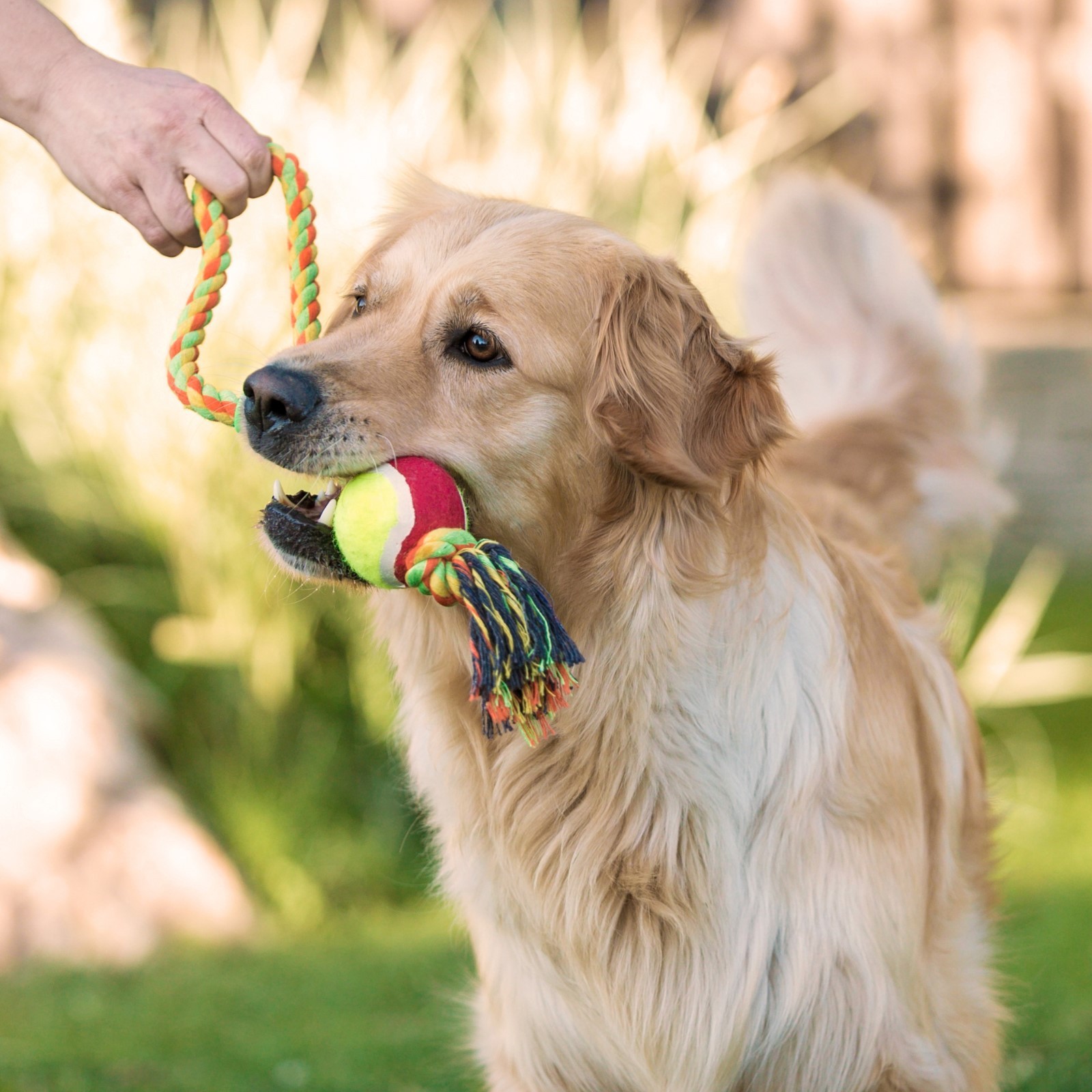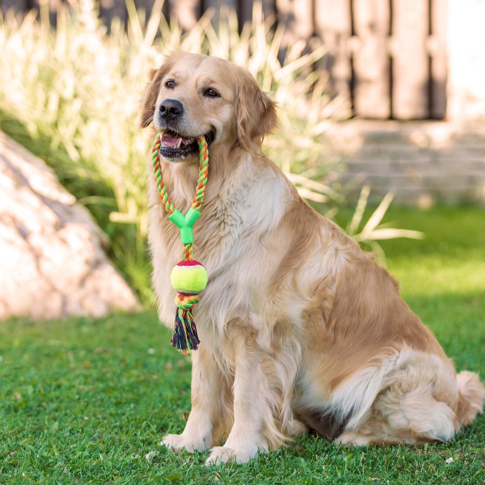 Игрушка канатная с ручкой и мячом, до 150 г, до 35 см, микс цветов