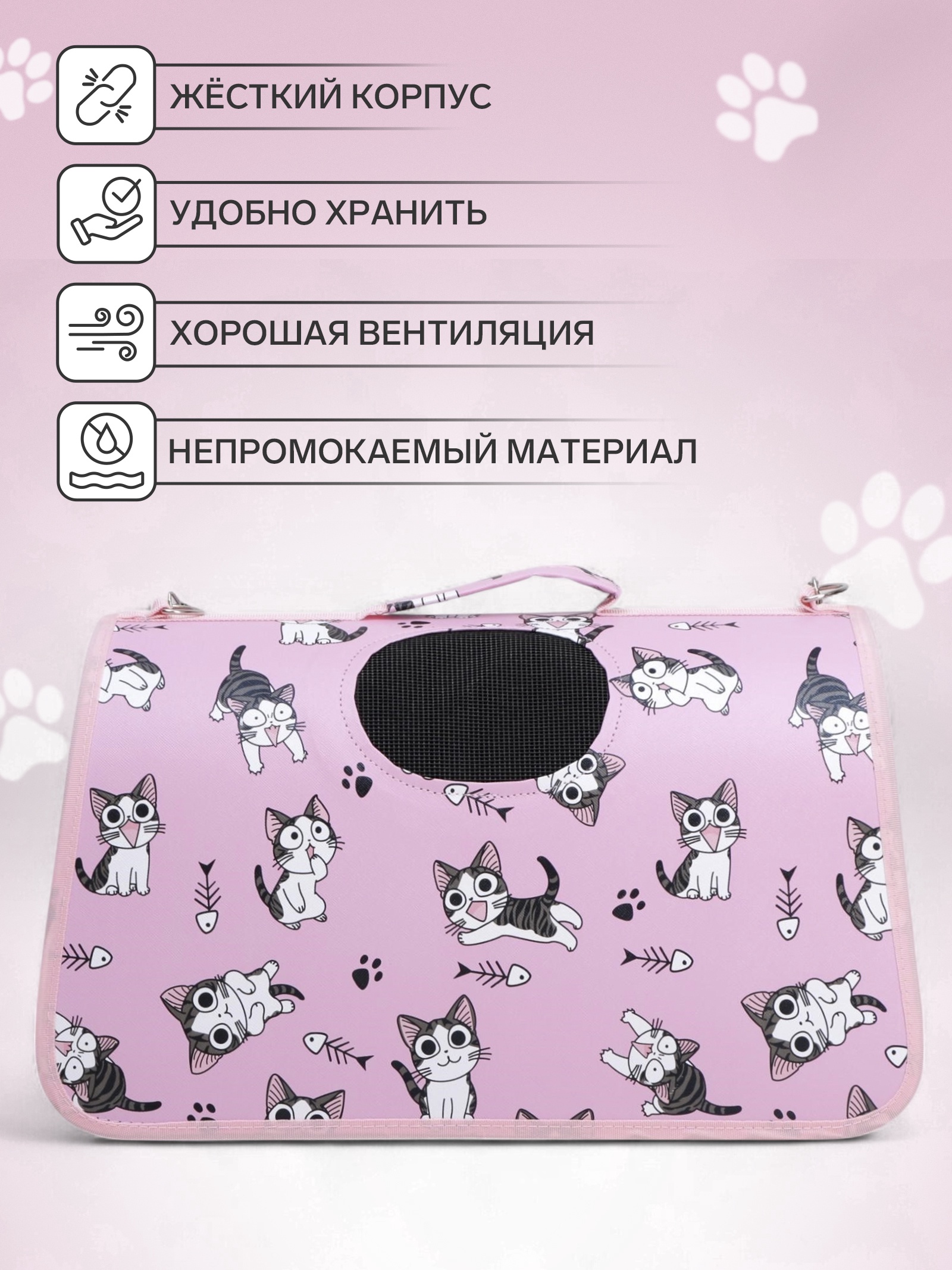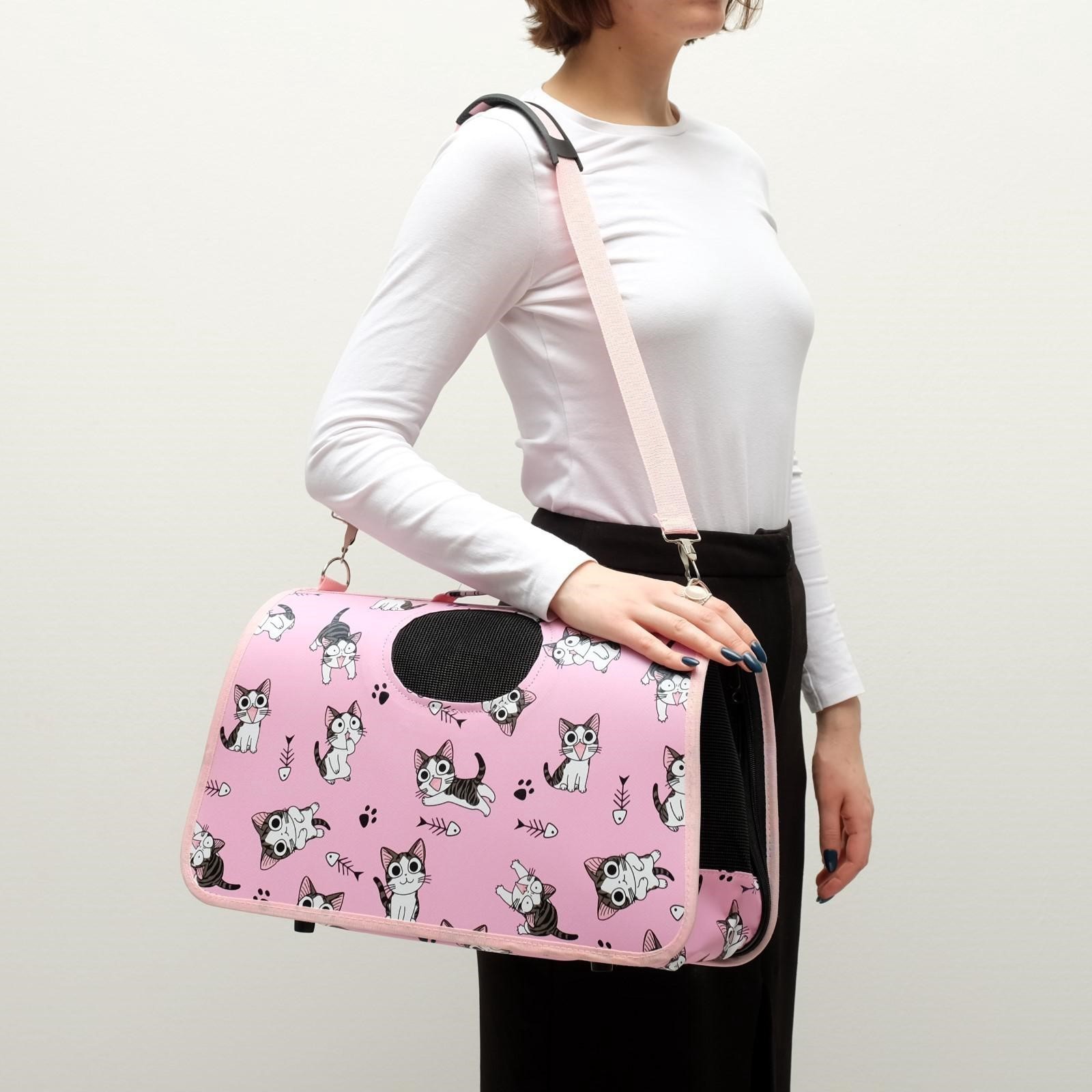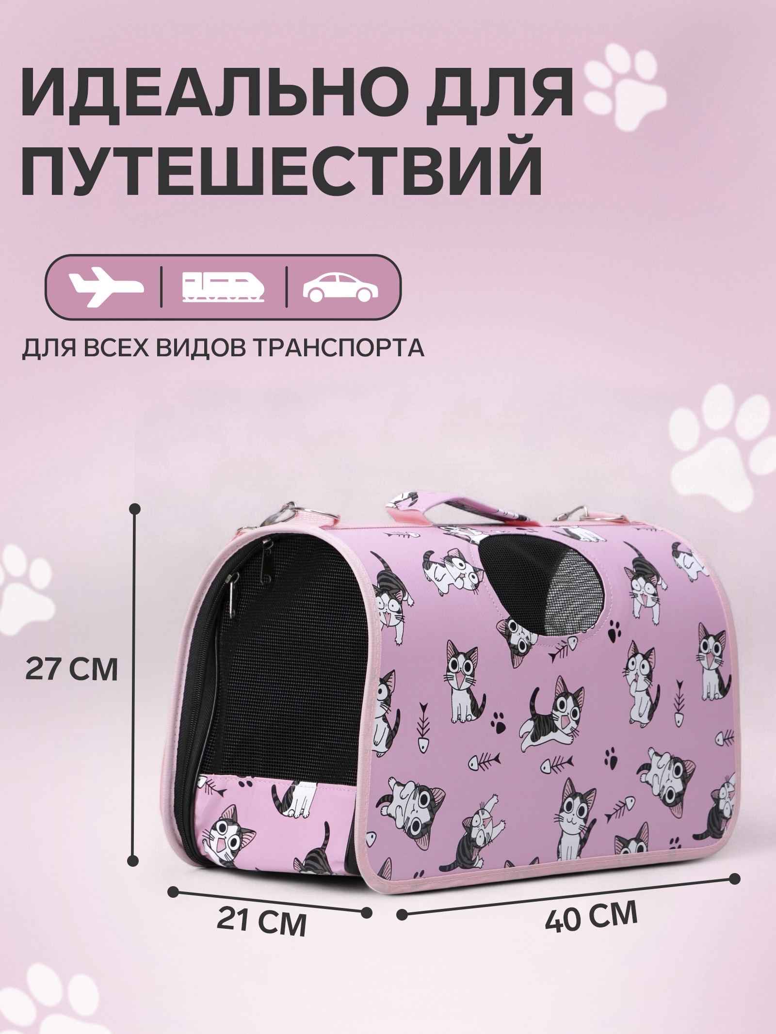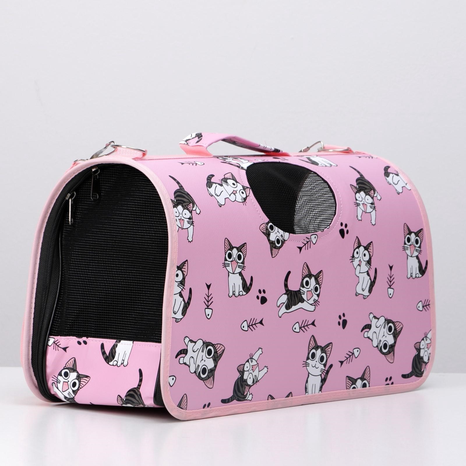 Сумка-переноска каркасная «играющие котики», размер м, 40 21 27 см, розовая