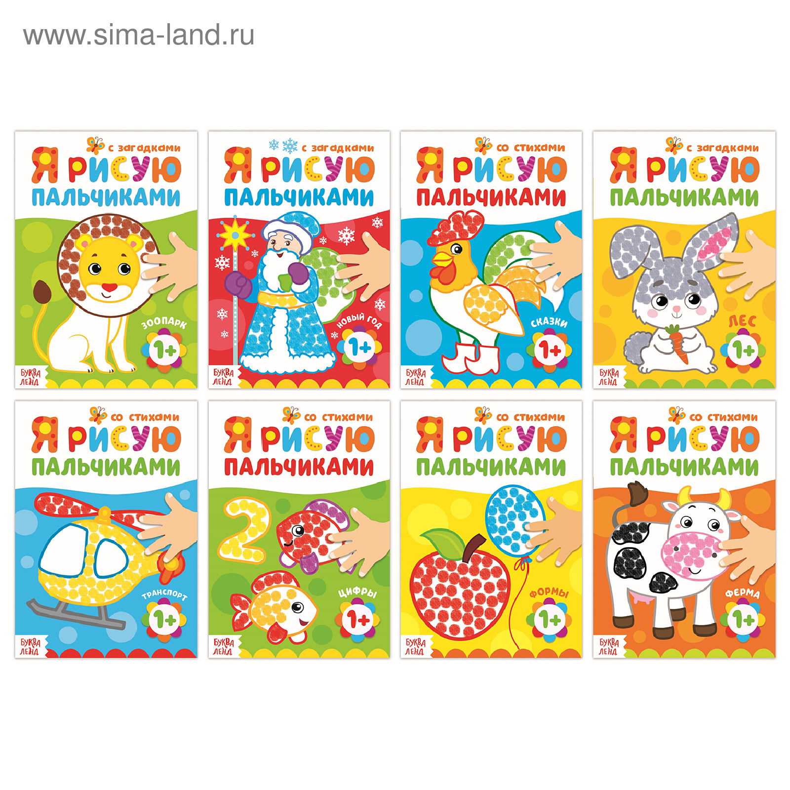 Раскраски для малышей набор «рисуем пальчиками», 8 шт. по 16 стр.