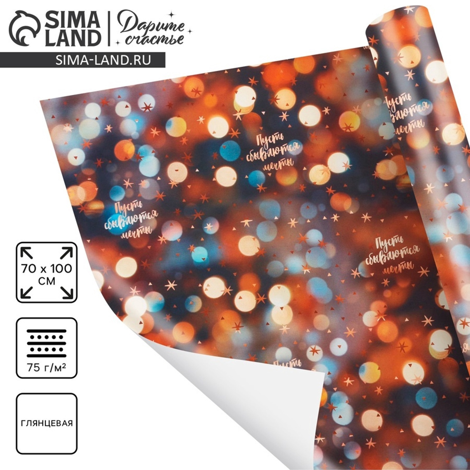 Упаковочная бумага на новый год «пусть сбываются мечты», 70 х 100 см, глянцевая