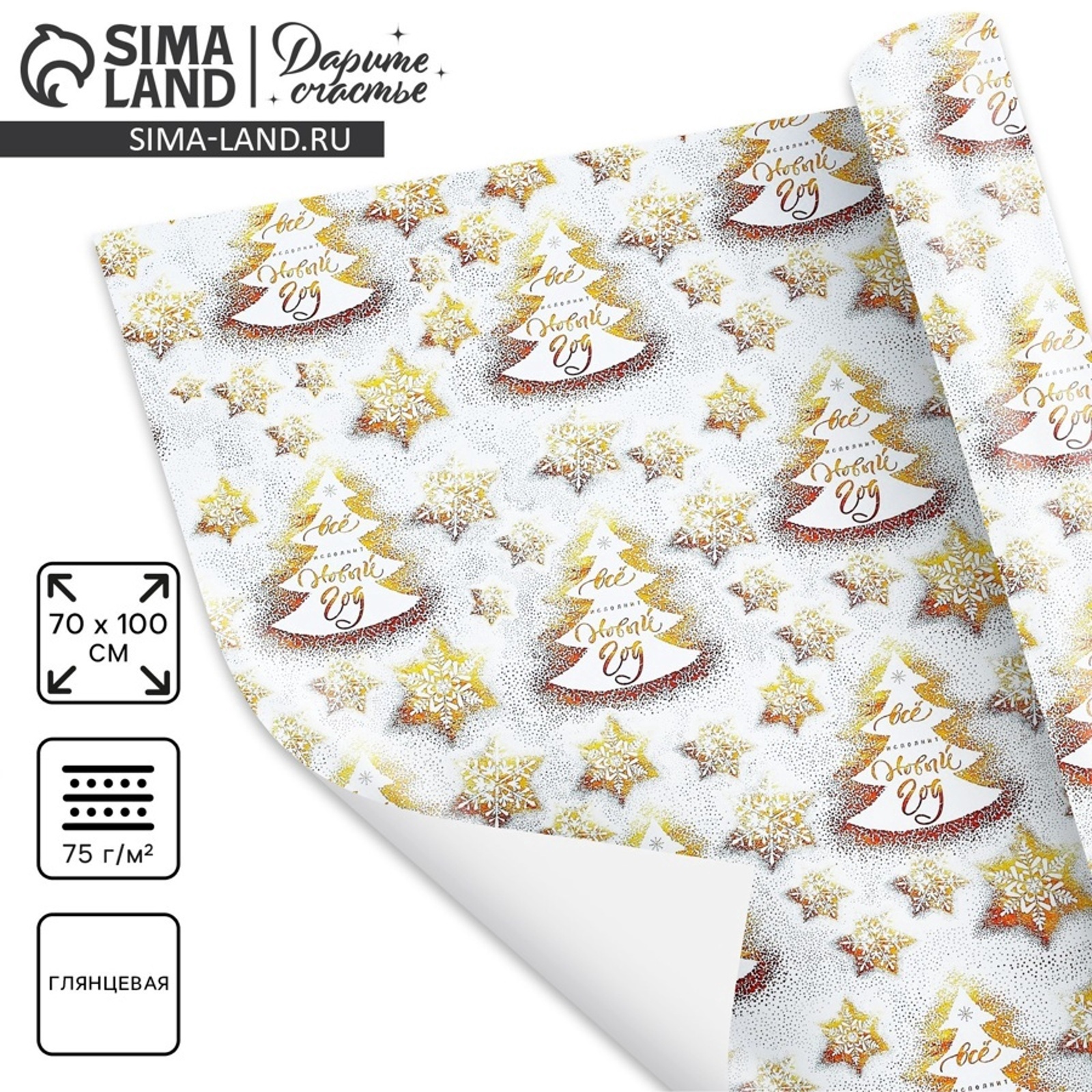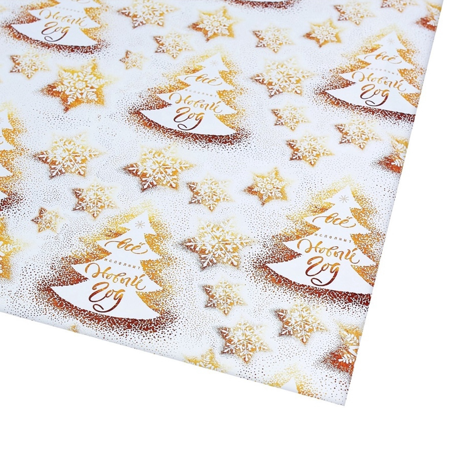 Упаковочная бумага на новый год «все исполнит глянцевая», 70 х 100 см, глянцевая