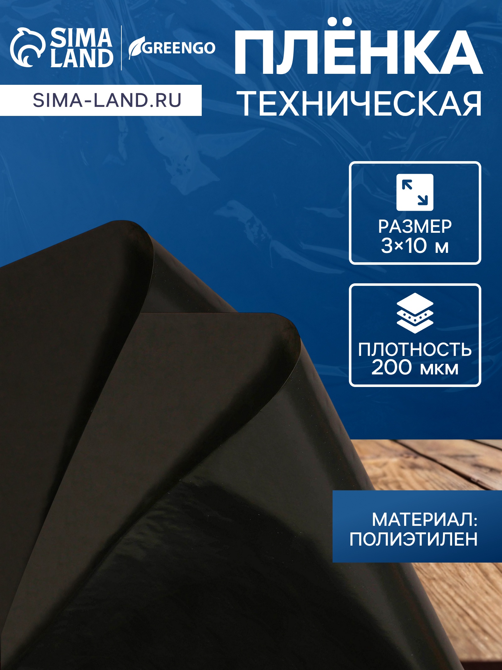 Плёнка из полиэтилена, техническая, толщина 200 мкм, чёрная, 10 3 м, рукав (1.5 м 2), эконом 50%, Greengo