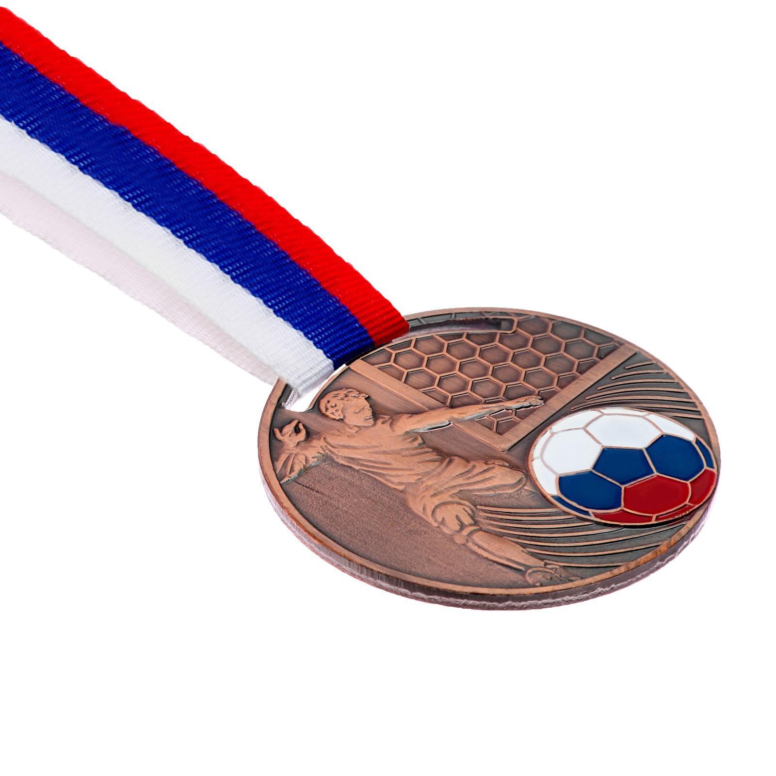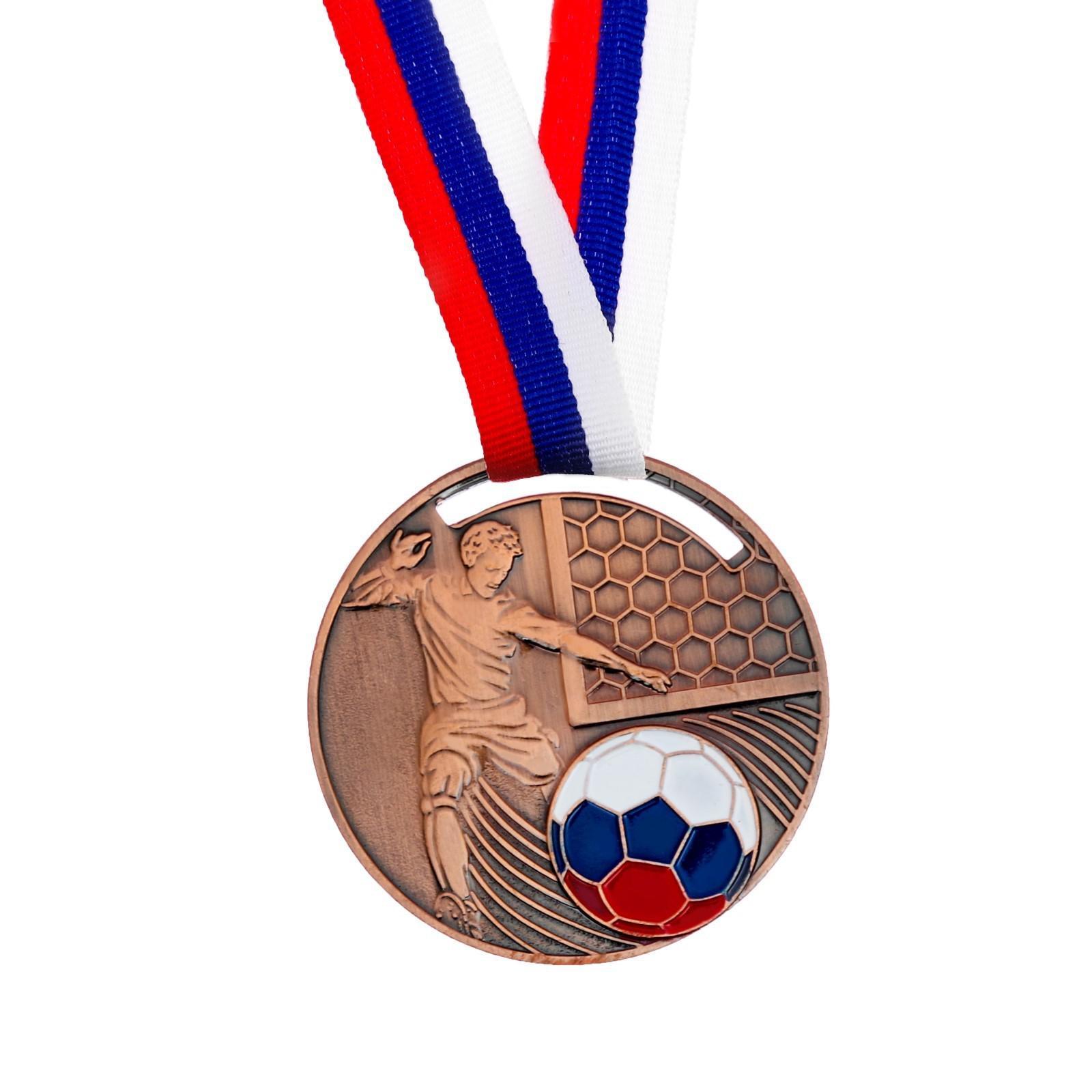 Медаль тематическая 139 «футбол», d= 5 см. цвет бронза. с лентой. Медаль — знак отличия, которым награждают самых достойных. Она вручается лишь тем, кто проявил настойчивость и волю к победе. Каждое достижение — это важное событие, которое должно остаться в памяти на долгие годы. Любое спортивное состязание, профессиональное или среди любителей, любое корпоративное мероприятие — отличный повод для того, чтобы отметить лучших из лучших. Цвет: Бронзовый Диаметр, мм: 50 Вид упаковки: Пакет Материал: Металл Вид спорта: Футбол Наличие символики РФ: Да Наличие ленты: Да Призовое место: 3 место  развернуть описание ▼