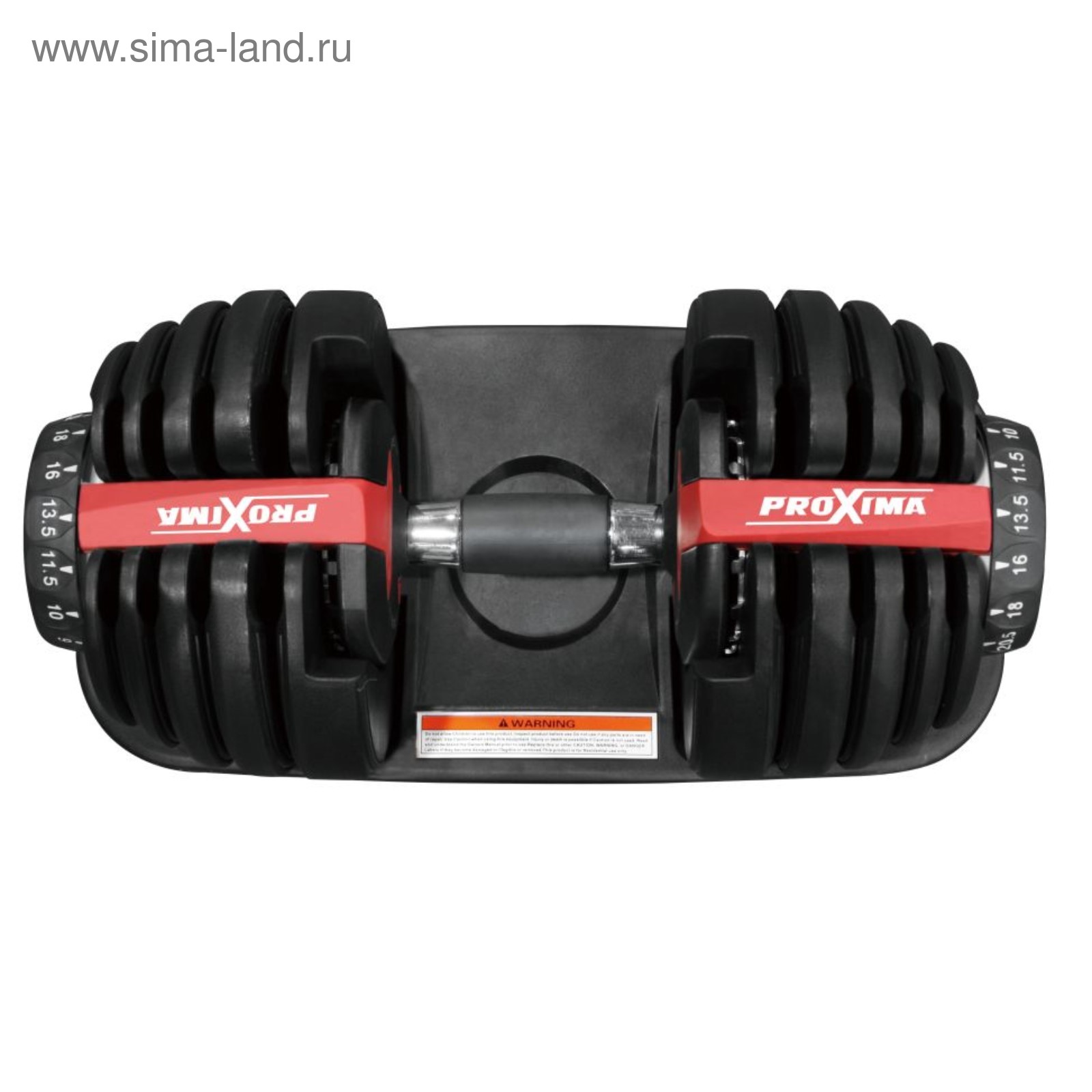 Регулируемая гантель proxima, gigant 24кг. Регулируемая гантель Proxima Gigant c возможностью изменения веса от 2, 5 до 24 кг идеальна для домашних тренировок. Преимущества: удобный и быстрый выбор веса гантели с помощью поворота диска, это позволяет быстро переключаться с одного упражнения на другое;исключается необходимость использования нескольких комплектов гантелей и загромождения пространства;многофункциональны благодаря наличию различных настроек веса, 15 уровней регулировки позволят выбрать необходимый дли тренировки вес;регулировка веса в пределах: 2, 5кг –3, 5кг – 4, 5кг – 5, 5кг – 6, 5кг – 8кг – 9кг – 10кг – 11, 5кг – 13, 5кг – 16кг – 18кг– 20, 5кг – 22, 5кг – 24кг;изготовлены из высокопрочных материалов и рассчитаны на многолетнюю эксплуатацию;имеют эргономичную форму и удобно лежат в руке;подставка-поддон для гантели в комплекте, металлическая стойка для гантелей Proxima Gigant приобретается отдельно;Рекомендации: не бросать и не ронять гантель во избежание повреждения механизма регулировки веса! Цвет: Чёрный Вес, кг: 24 Защитное покрытие: Нет Тип покрытия: Без покрытия Тип гантели: Регулируемая Форма дисков: Круглые Наличие замков: Нет  развернуть описание ▼
