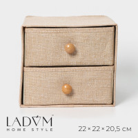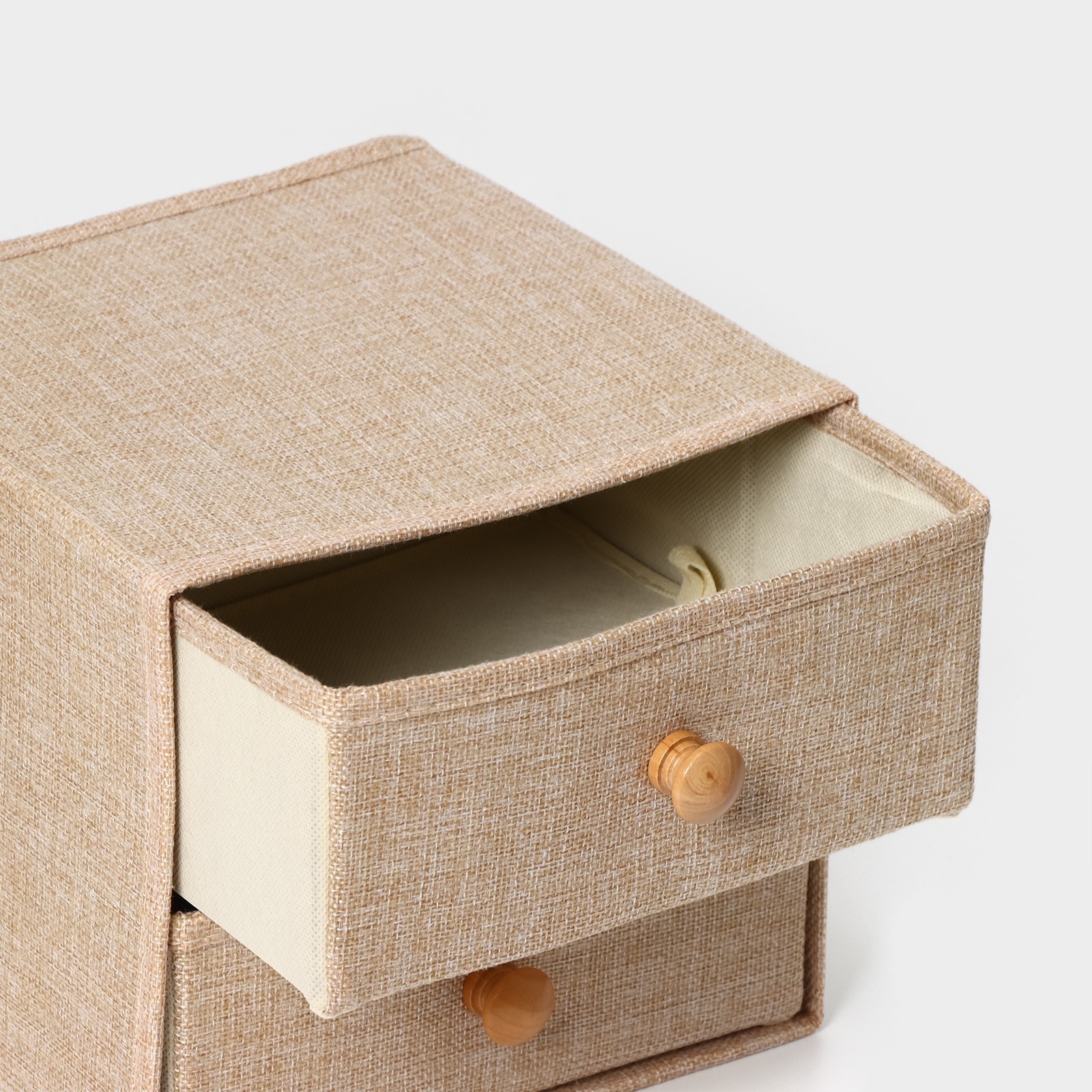 Array. Представляем идеальное решение для наведения порядка в Вашем гардеробе - короб с выдвижными ящиками. Органайзер «Франческа» с 2 отделениями станет полезным в каждом доме и позволит организовать идеальную систему хранения вещей. Применение: Этот кофр для хранения вещей сделает ваш гардероб более удобным и компактным, а Вам при этом не придется искать нужную вещь среди кучи белья и аксессуаров. Органайзер подойдёт для хранения разных вещей: нижнего белья, носков, колготок, бюстгальтеров, ремней, галстуков и даже мелких аксессуаров. Органайзер выполнен из качественных материалов и имеет ячейки, чтобы вы могли организовать хранение вещей удобным способом. Прямоугольный короб с легкостью поместятся на полке в многоярусном шкафу, секционном шкафчике и даже прикроватной тумбочке. Цвет: Бежевый Для кого: Унисекс Форма: Квадратная Количество отделений: 1 Количество ящиков: 2 Количество ячеек: 2 Тематика: Однотонная Крышка: Да Материал: Картон Материал: Дерево Материал: Флизелин Назначение: Для домашних мелочей Форма: Квадрат, куб  развернуть описание ▼