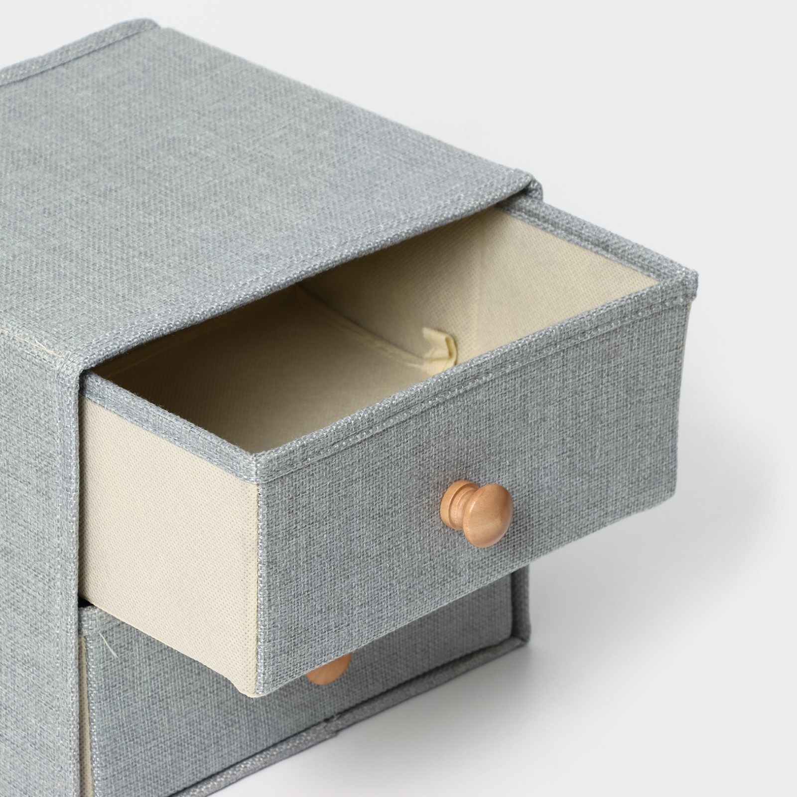 Array. Представляем идеальное решение для наведения порядка в Вашем гардеробе - короб с выдвижными ящиками. Органайзер «Франческа» с 2 отделениями станет полезным в каждом доме и позволит организовать идеальную систему хранения вещей. Применение: Этот кофр для хранения вещей сделает ваш гардероб более удобным и компактным, а Вам при этом не придется искать нужную вещь среди кучи белья и аксессуаров. Органайзер подойдёт для хранения разных вещей: нижнего белья, носков, колготок, бюстгальтеров, ремней, галстуков и даже мелких аксессуаров. Органайзер выполнен из качественных материалов и имеет ячейки, чтобы вы могли организовать хранение вещей удобным способом. Прямоугольный короб с легкостью поместятся на полке в многоярусном шкафу, секционном шкафчике и даже прикроватной тумбочке. Цвет: Серый Для кого: Унисекс Форма: Квадратная Количество отделений: 1 Количество ящиков: 2 Количество ячеек: 2 Тематика: Однотонная Крышка: Нет Материал: Дерево Материал: Картон Материал: Флизелин Назначение: Для домашних мелочей Форма: Квадрат, куб  развернуть описание ▼