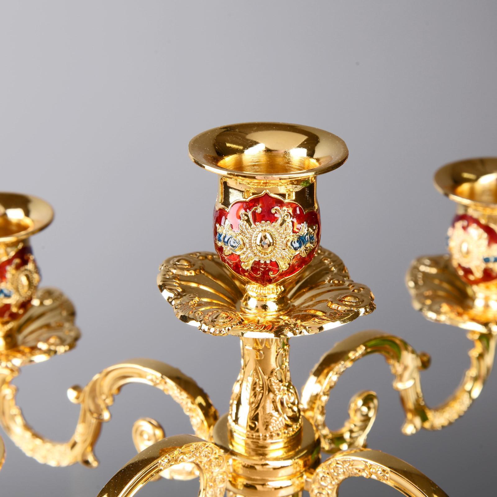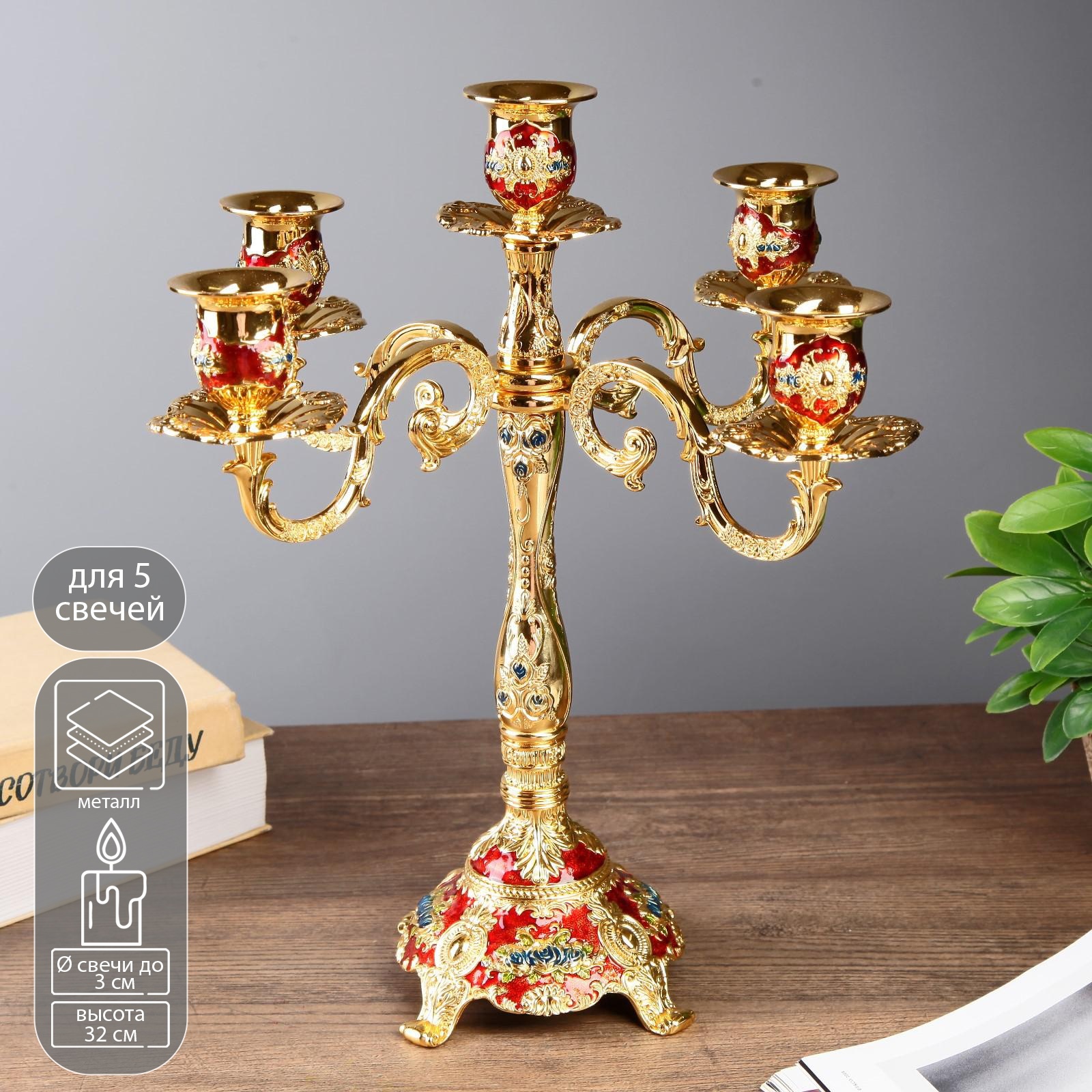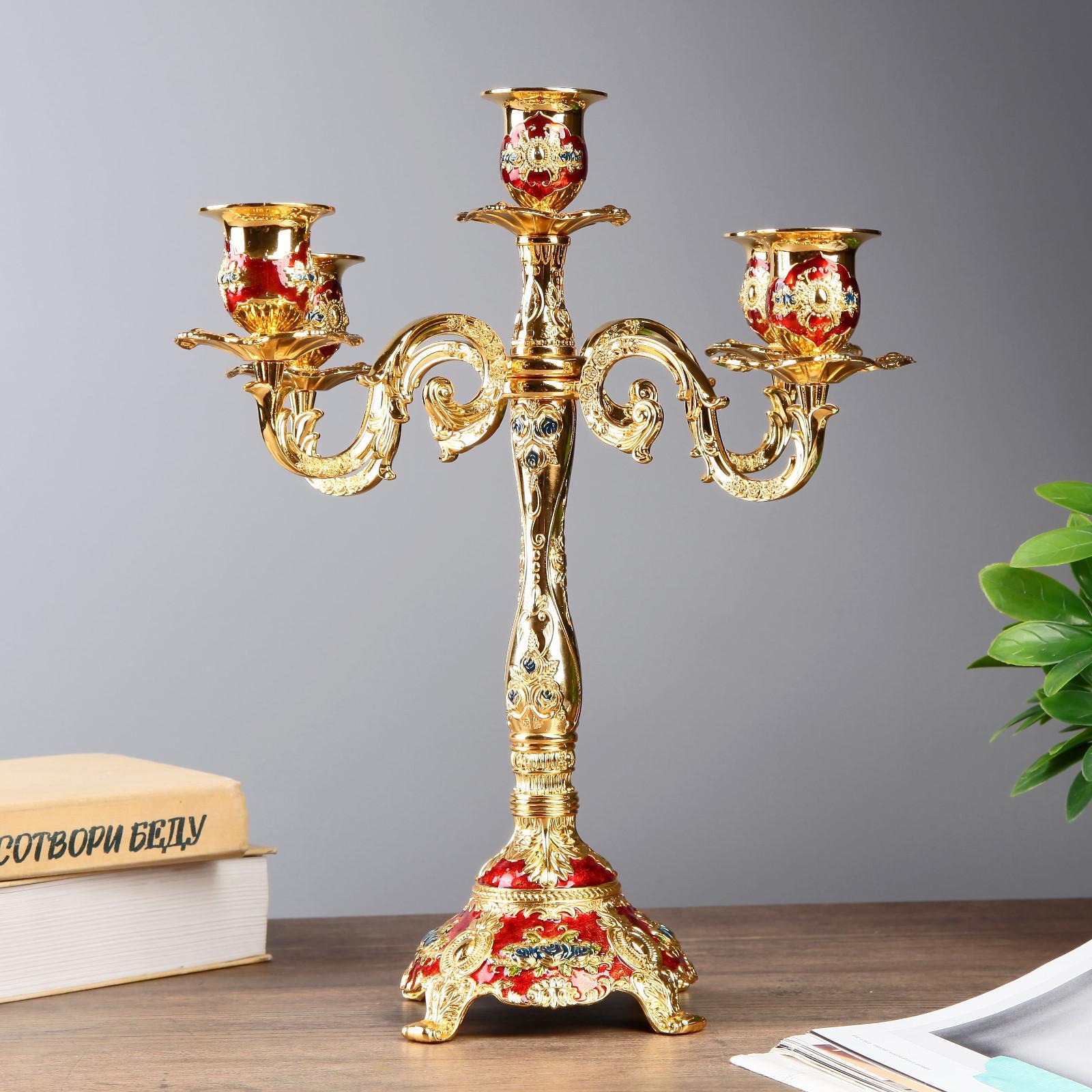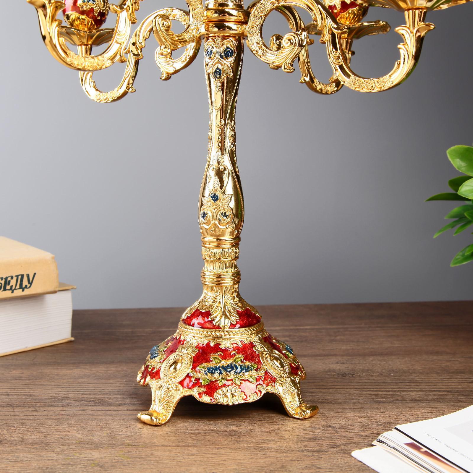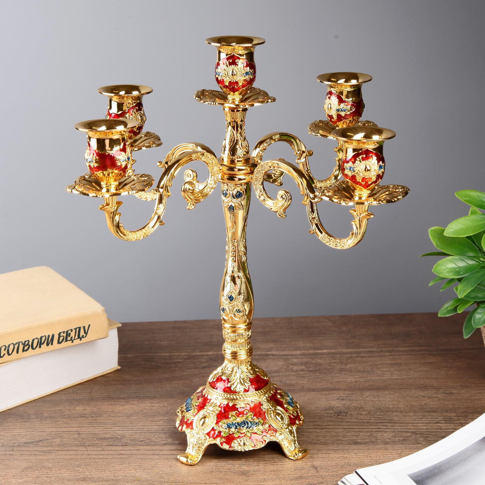 Металлический подсвечник на 5 свечей «канделябр. розы на зеленом», золото, 32 30 30 см