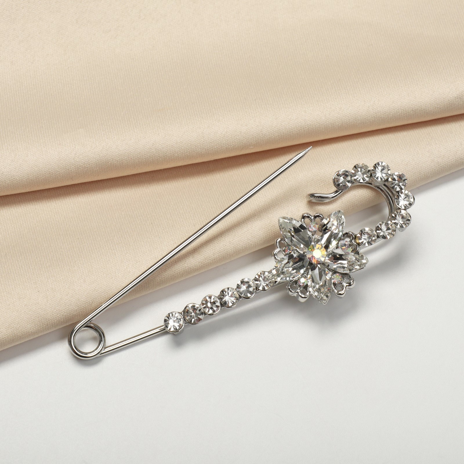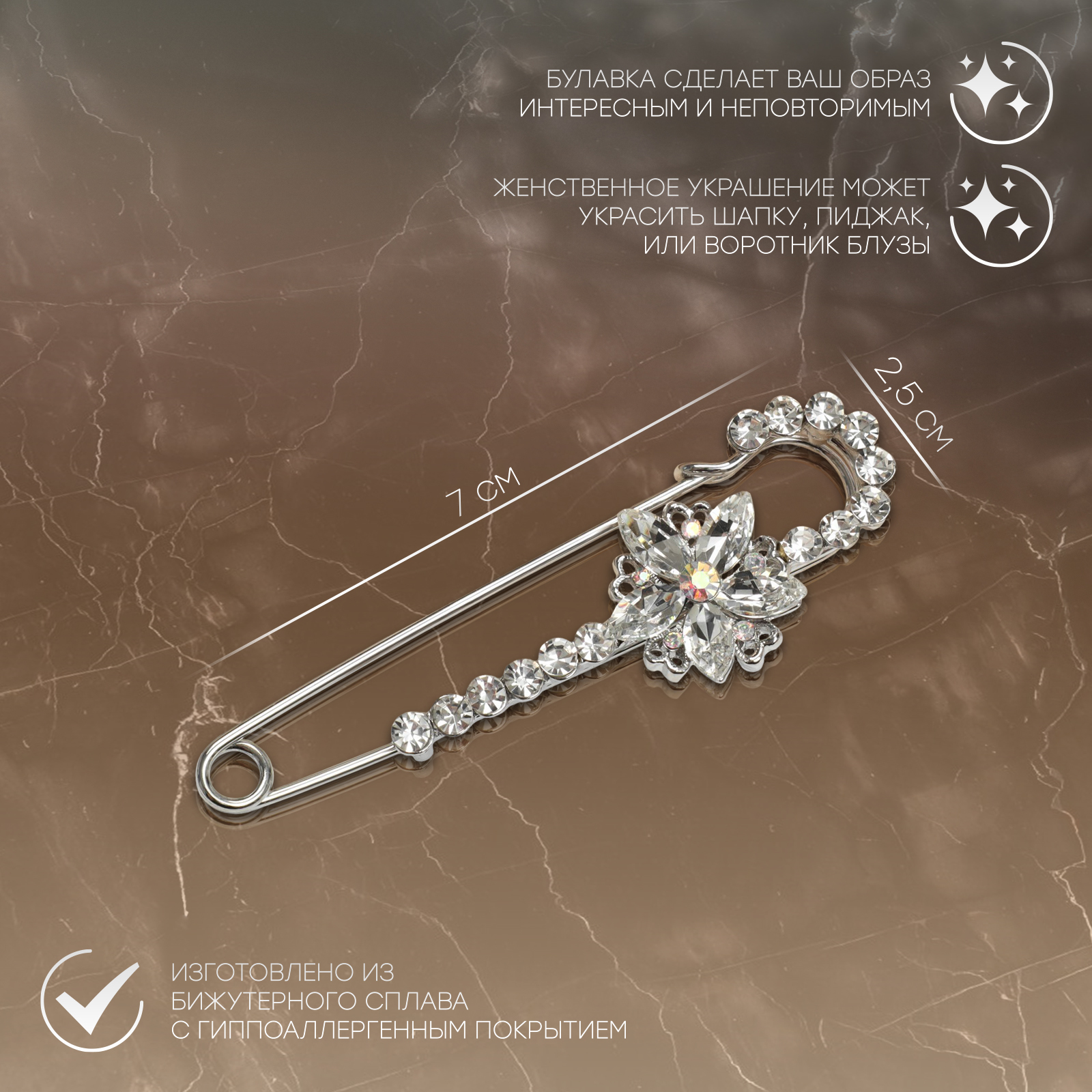 Булавка «цветок» магнолия, 7 см, белая в серебре