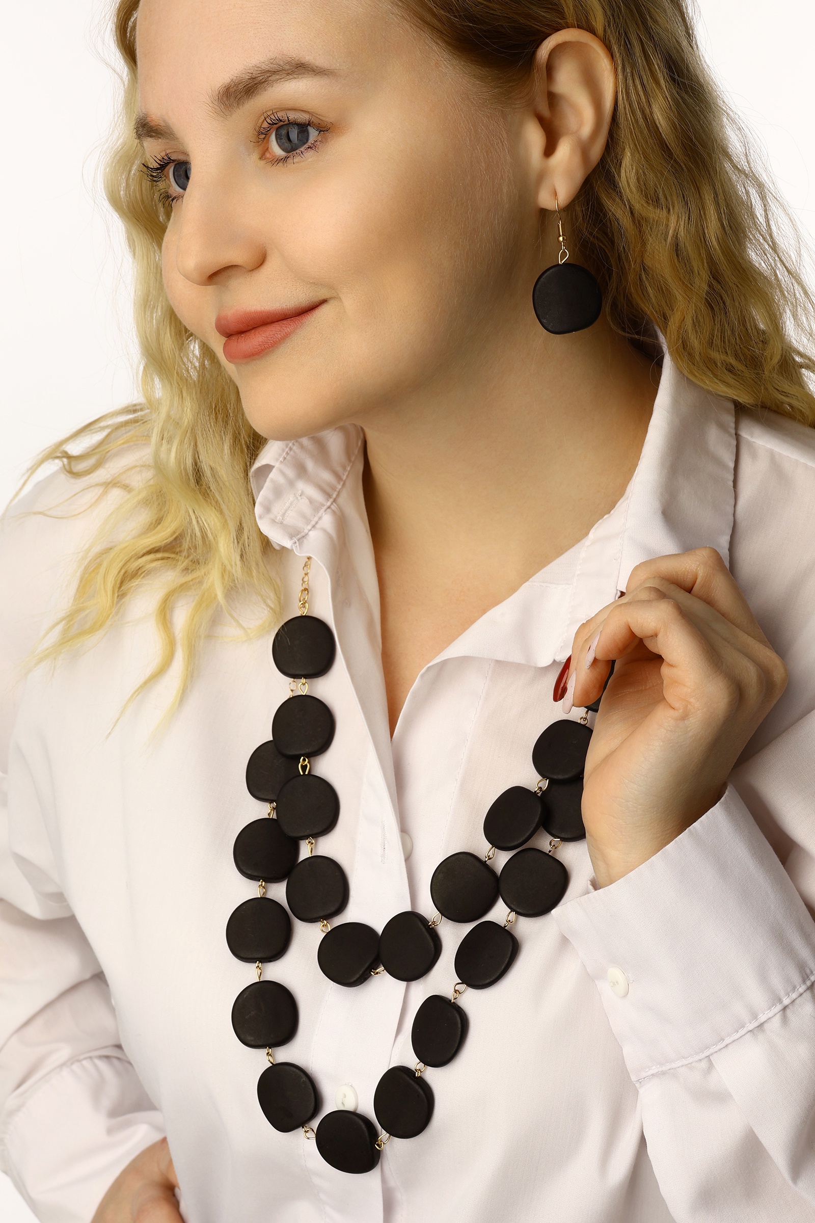 Набор 2 предмета: серьги, бусы «нежность форм», 2 яруса, цвет чёрный, 50 см. Погрузитесь в мир стильных аксессуаров с нашим уникальным набором бижутерии из двух предметов! Серьги и бусы — это элегантный аксессуар с уникальным дизайном, который добавит сияния вашему образу. Этот комплект идеально подойдет для любого мероприятия, подчеркивая утонченность и стиль. Серьги и бусы можно носить вместе или раздельно, дополняя образы для любого случая. Советы по уходу за бижутерией Храните изделия отдельно друг от друга в сухом месте не пропускающем солнечные лучиСнимайте украшения перед контактом с водойСнимайте украшение перед использованием парфюма и кремовПосле каждой носки протирайте аксессуары салфеткой из микрофибрыНабор:Да|Цвет:Чёрный|Для кого:Для женщины|Длина, см:50|В наборе, шт.:2|Тематика праздника:8 Марта|Тематика праздника:Последний звонок|Тематика праздника:День рождения|Тематика праздника:Выпускной в школе|Тематика праздника:Новый год|Цвет фурнитуры:Золотой|Вставка/Подвеска:Пластик|Состав набора:Серьги + Бусы|Материал основы:Металл|Тематика:Абстракция|Страна:Китай  развернуть описание ▼
