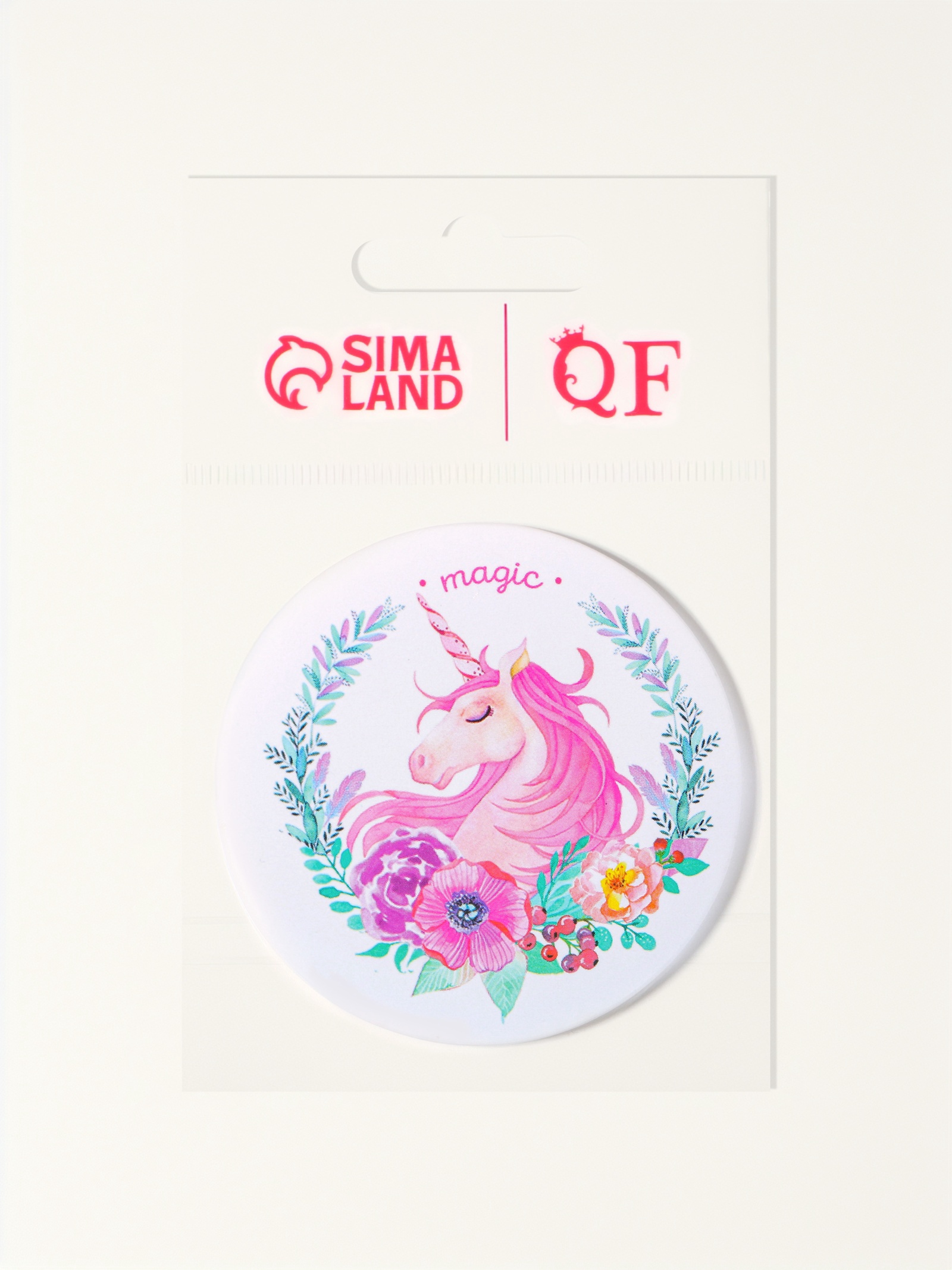 Зеркало карманное «единороги», D=7.5 см, разноцветное