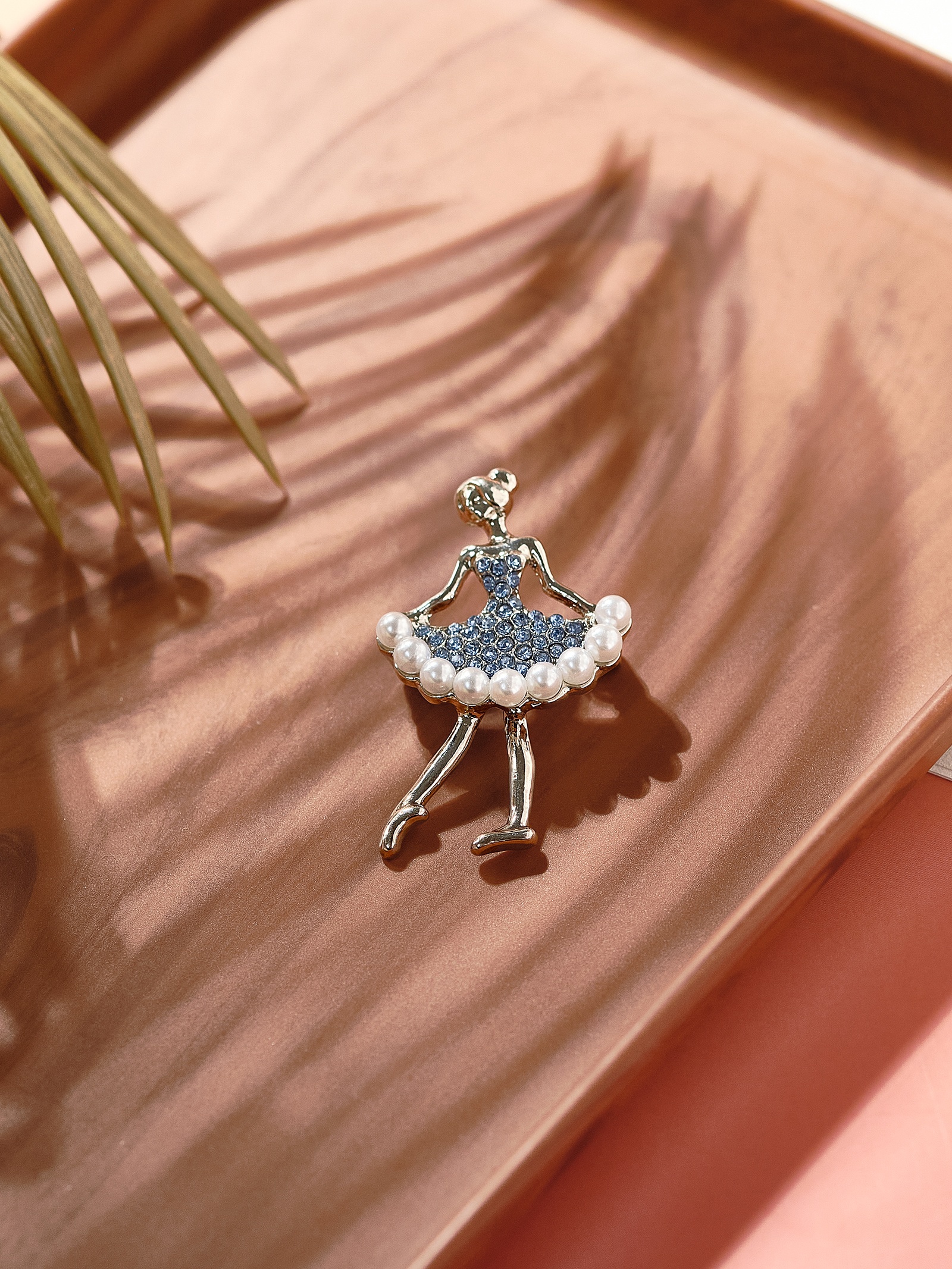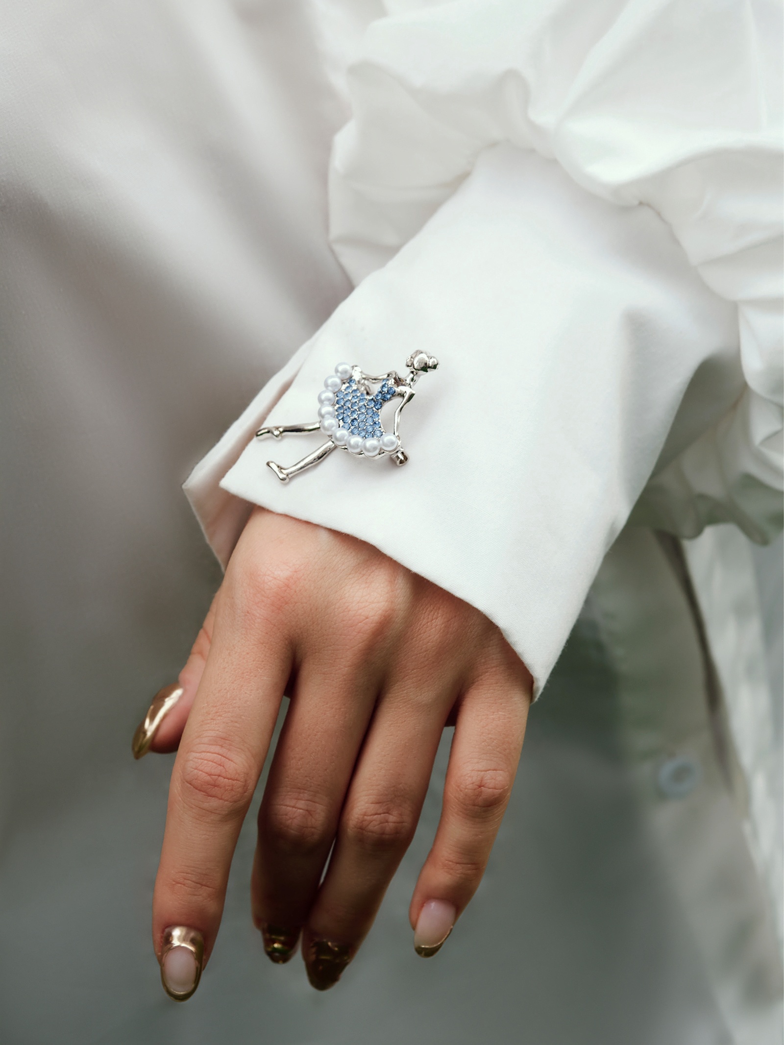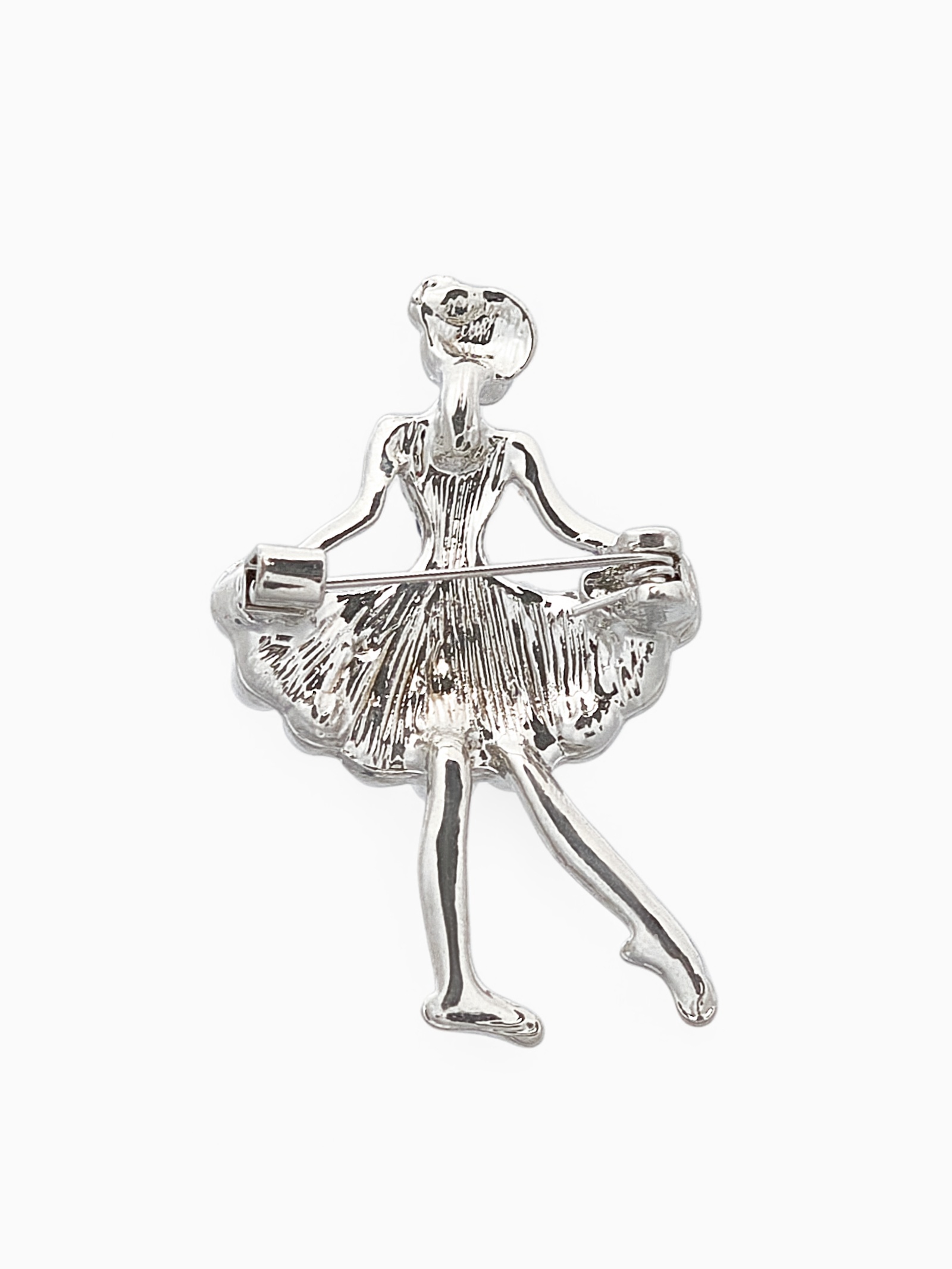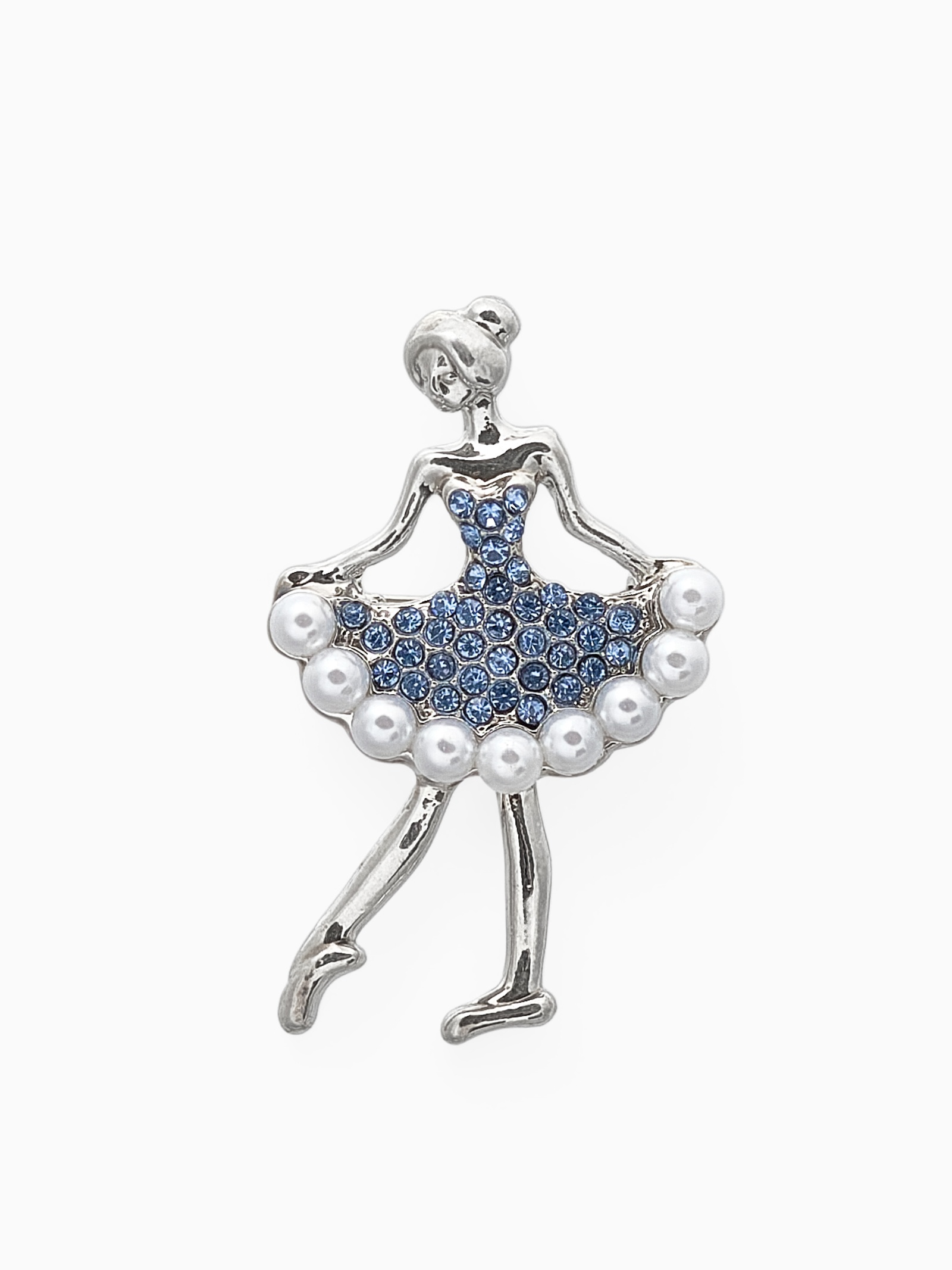 Брошь «балеринка», цвет бело-сапфировый в серебре