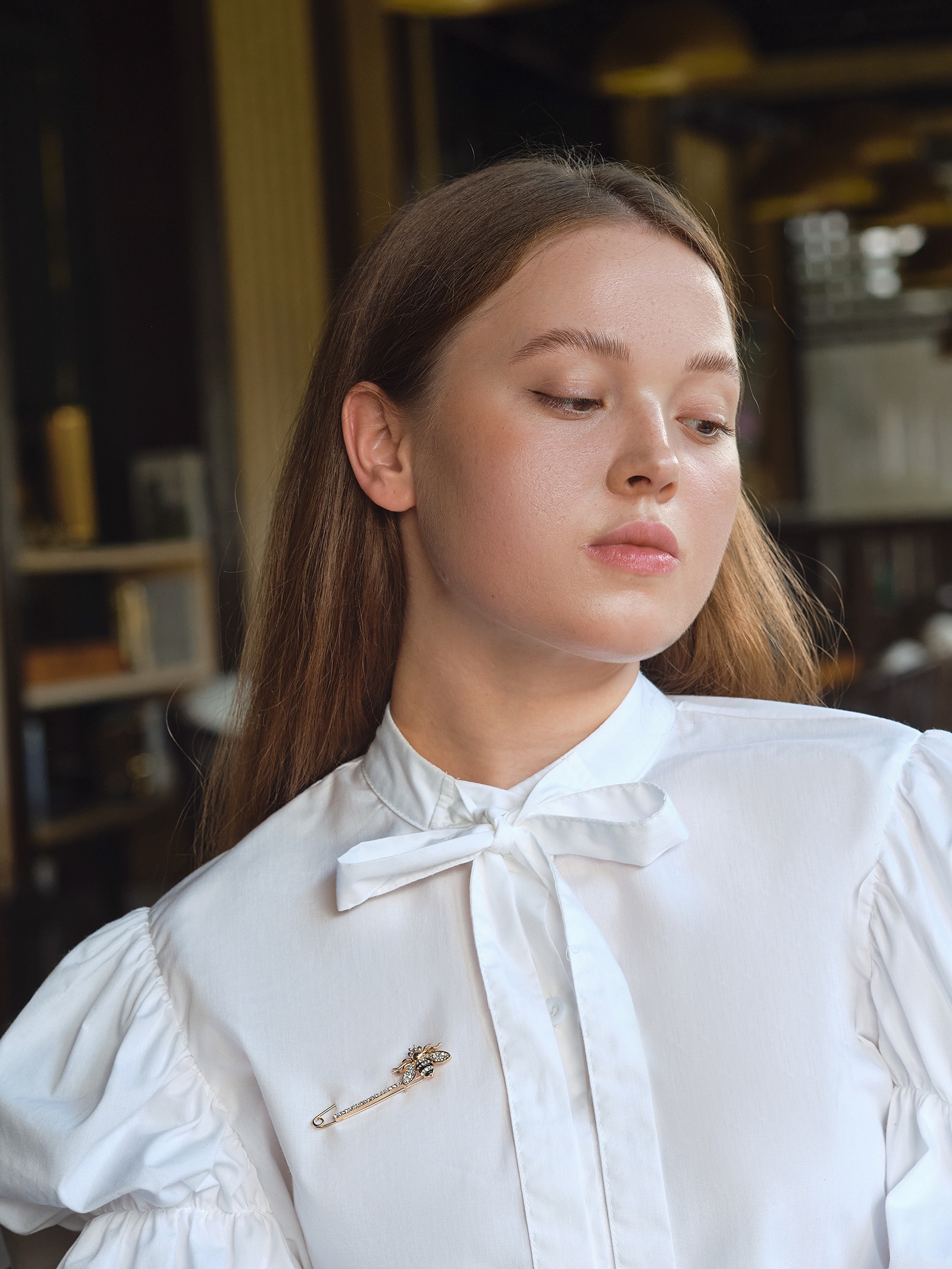 Булавка «пчела» со стразами, 5.5 см, чёрно-белая в золоте