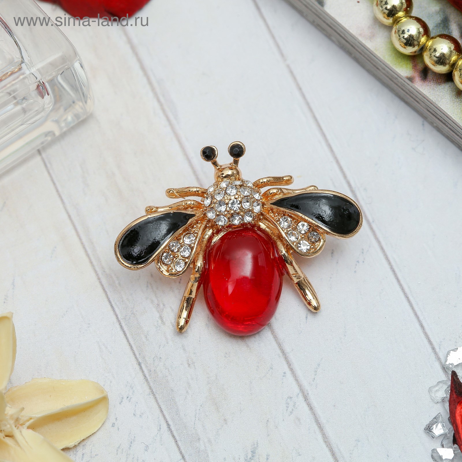 Брошь «муха» в полете, цветная в золоте. Погрузитесь в мир изысканных украшений с этой удивительной брошью в виде мухи, которая словно расправила свои яркие крылья. Каждый элемент этого аксессуара, выполненного в золотом цвете, притягивает взгляды и добавляет нотку игривости в любой образ. Красный цвет страз и эмали придает броши яркость и динамичность, что делает её идеальным акцентом для смелых модниц. С длиной всего 3 см, эта брошь легко впишется как в повседневный, так и в вечерний наряд. Она станет отличным подарком для женщин любого возраста, подчеркивая их индивидуальность и стиль. Упакованная на подложке в пакет, брошь готова стать прекрасным сюрпризом для мамы, бабушки, дочки или внучки. Качественные материалы: металлическое основание и вставки из пластика, эмали и страз обеспечивают долговечность и надежность.Яркий дизайн: эффектный красный цвет в сочетании с золотой фурнитурой создает стильный контраст, который не останется незамеченным.Универсальность: подходит для различных мероприятий — от деловых встреч до праздничных торжеств.Простой уход: легко очищается и сохраняет свой первоначальный вид на долгое время.Идеальный подарок: станет замечательным сюрпризом для близких, подчеркивая вашу заботу и внимание к их стилю.Эта брошь не просто аксессуар, а настоящая находка для тех, кто ценит уникальность и стиль. Позвольте себе или своим близким насладиться красотой и изяществом, которые она приносит! Набор:Нет|Цвет:Красный|Для кого:Для женщины|Длина, см:3|Тематика праздника:Универсальная тематика|Адресат:Дочке|Адресат:Маме|Адресат:Внучке|Адресат:Бабушке|Материал:Стразы|Цвет фурнитуры:Золотой|Вид:Брошь|Вставка/Подвеска:Эмаль|Вставка/Подвеска:Пластик|Вставка/Подвеска:Стразы|Материал основания:Металл|Составляющие набора:Брошь|Материал основы:Металл|Возраст:Для взрослых|Тематика:Насекомое|Тематика:Насекомые|Тематика:Яркая|Страна:Китай  развернуть описание ▼