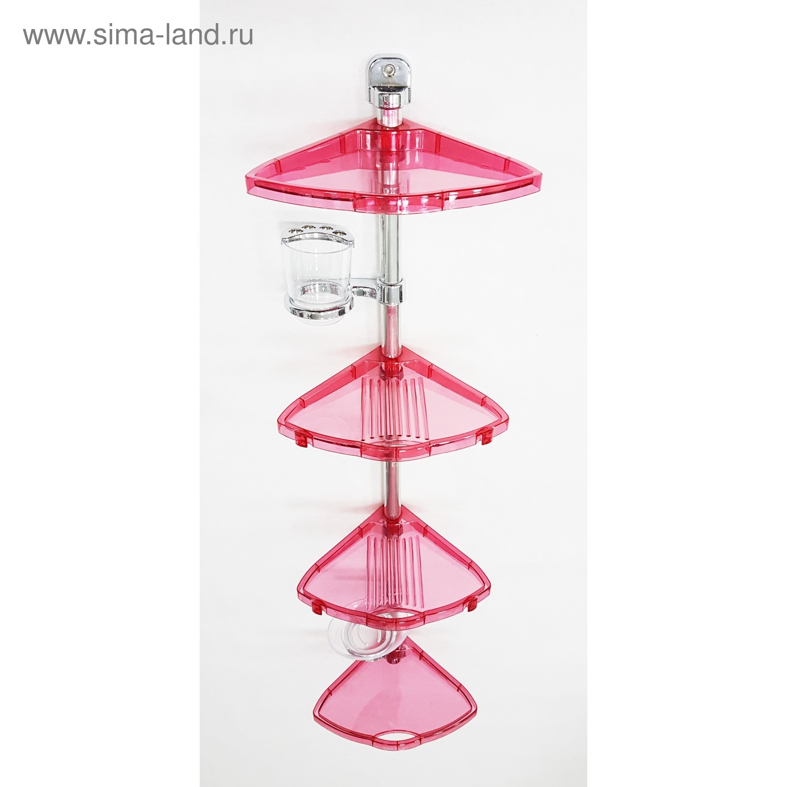 Угловая полка, алюминиевая трубка, 4 полки, мыльница и стакан, цвет прозрачно-красный