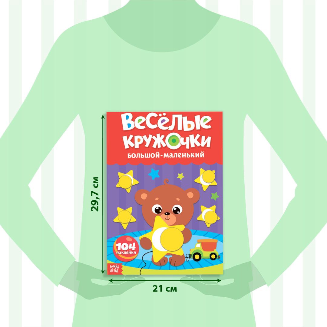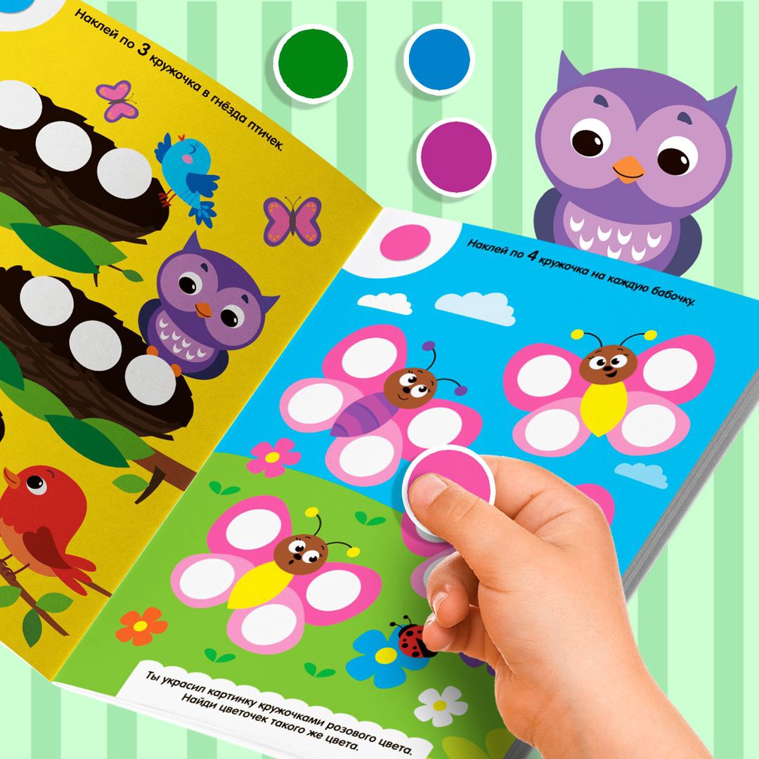 Наклейки обучающие «весёлые кружочки», набор 4 шт. по 16 стр., а4. Набор книг с обучающими наклейками поможет потренировать цветовосприятие, пространственное мышление, а также запомнить названия цветов и соотношение понятий «большой» — «маленький». Набор включает в себя 4 книги разной тематики: «Весёлые кружочки. Большой и маленький».«Весёлые кружочки. Считаем и наклеиваем».«Весёлые кружочки. Наклеиваем по образцу».«Весёлые кружочки. Изучаем цвета».Удобный формат Крупные кружочки удобно держать и отклеивать малышам, которые ещё только осваивают этот вил творчества.Красочные картинки и милые персонажи подсказывают, куда именно нужно прикрепить наклейку-кружочек.Чем полезны занятия с наклейками Такой вид творчества позволяет детям развивать мелкую моторику, пространственное и логическое мышление, а также тренировать усидчивость и аккуратность. Набор:Да|Для кого:Унисекс|Формат:А4|Возраст:От 1 года|Количество страниц:16|Год издания:2018|Тематика:Геометрия|Тематика:Животный мир|Тематика праздника:Универсальная тематика|Развитие навыков:Фигуры, цвета|Тема обучения:Цвета, формы, звуки|Вид наклейки:Бумажная|Тип обложки:Мягкий переплёт|Автор:Коллектив авторов|Страна:Россия  развернуть описание ▼