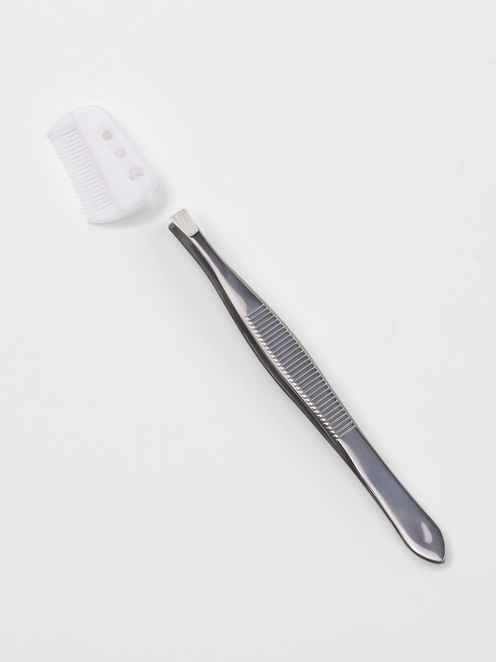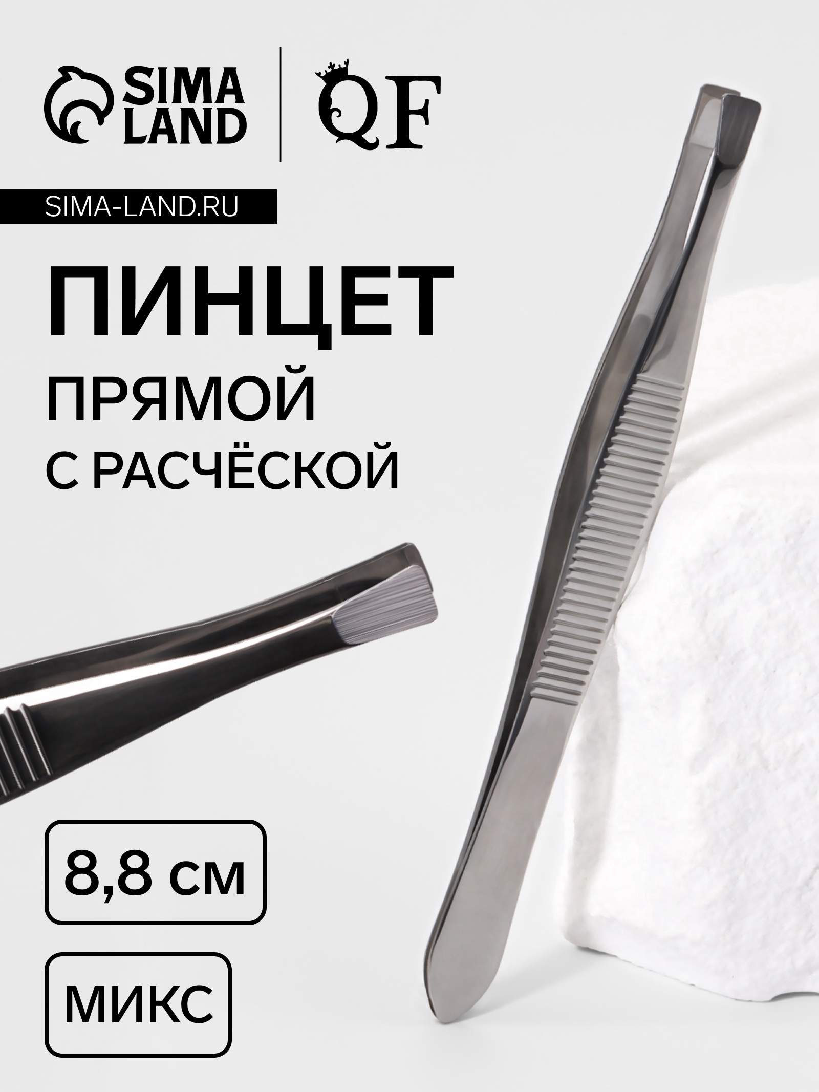 Пинцет прямой, узкий, с расчёской, 8.8 см, в чехле, микс