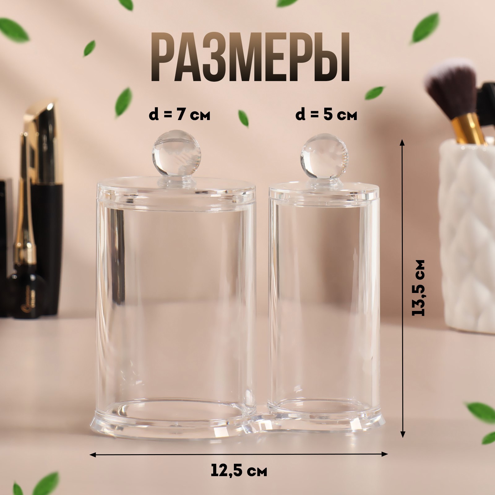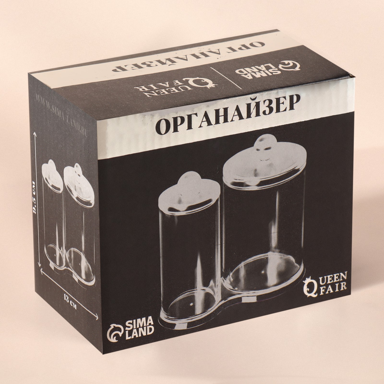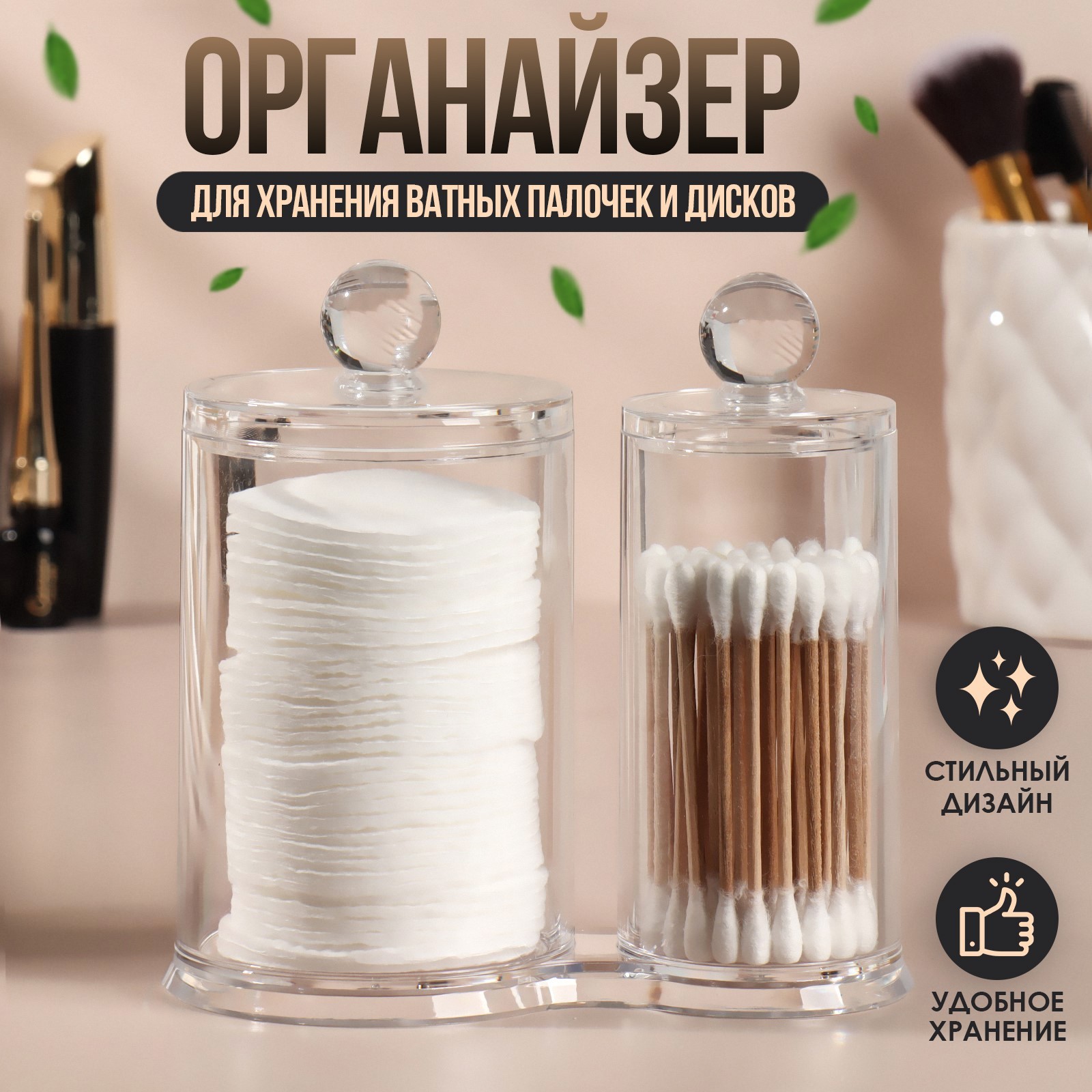 Органайзер для хранения ватных палочек и дисков, с крышкой, 2 секции, 12,5 X 7,3 X 13,5 см, в картонной коробке, цвет прозрачный