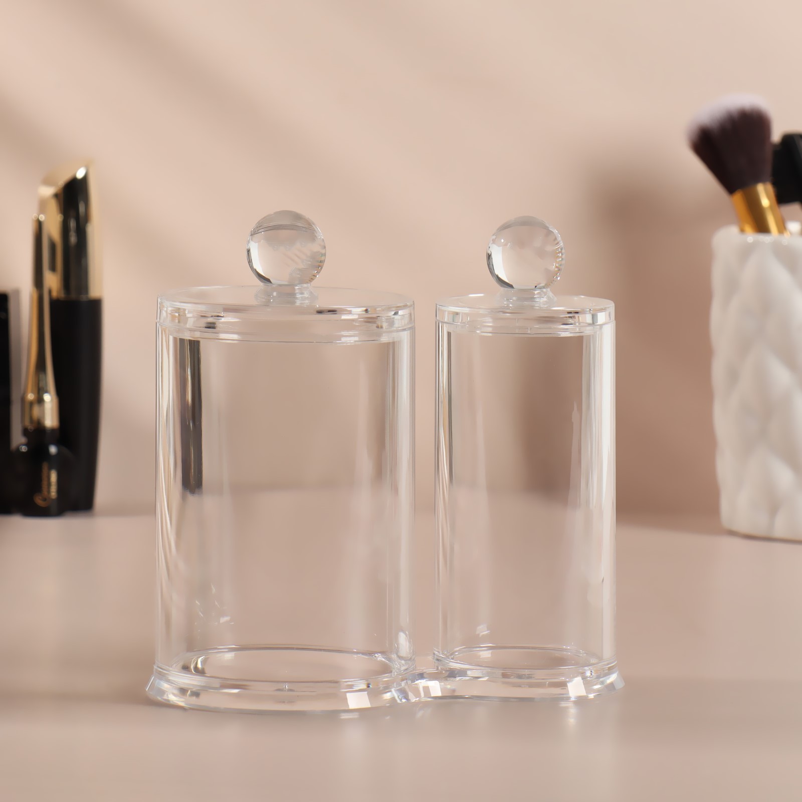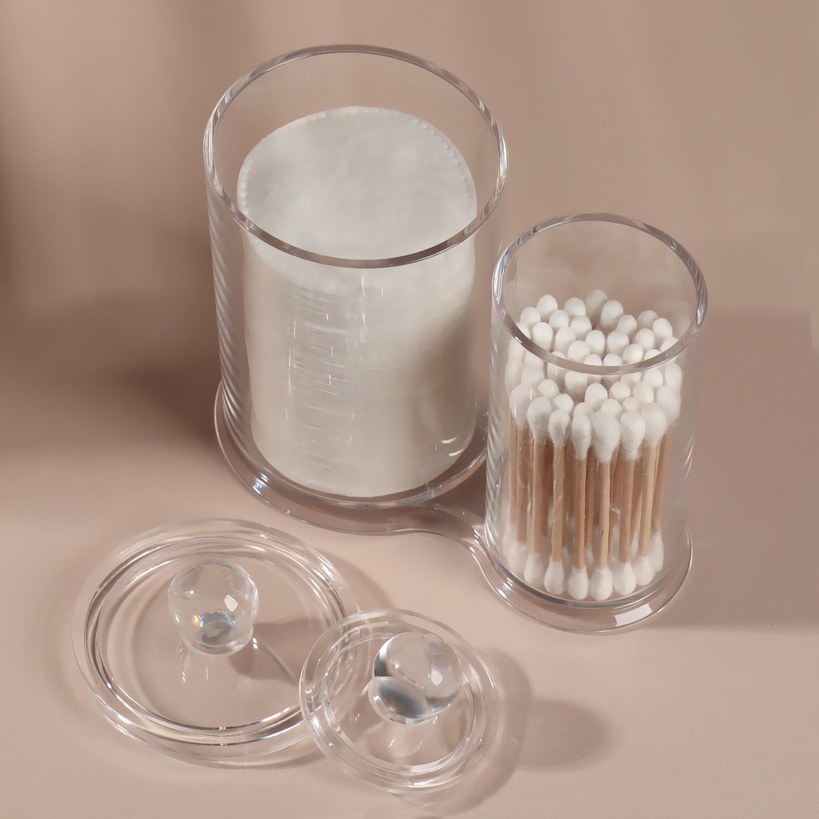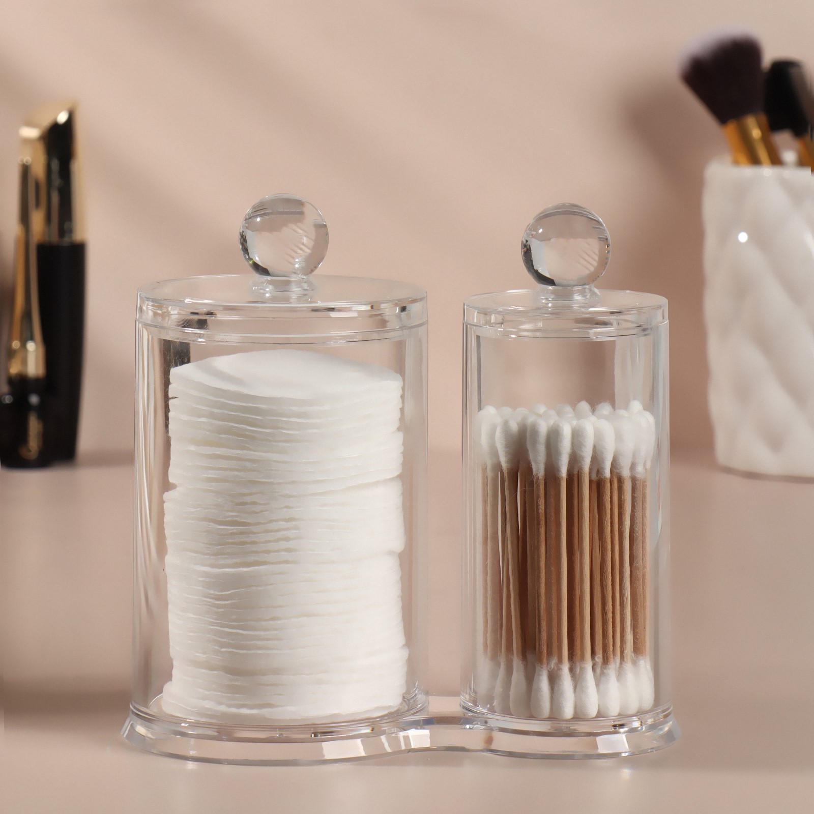 Органайзер для хранения ватных палочек и дисков, с крышкой, 2 секции, 12,5 X 7,3 X 13,5 см, в картонной коробке, цвет прозрачный