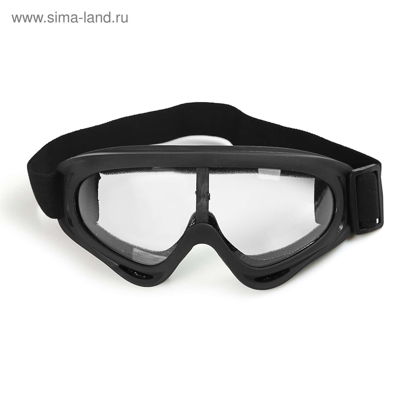Очки для езды на мототехнике, стекло прозрачное, цвет черный. Надежные маски-очки для мотоциклистов, лыжников и сноубордистов созданы для защиты глаз от ультрафиолетовых лучей или непогоды. Во время езды или скоростного спуска они оберегают глаза и лицо от встречного ветра, насекомых, пыли. Также очки нужны, чтобы помогать владельцу ориентироваться на трассе в любую погоду. Цвет: Чёрный Сезон: Всесезонный Возраст: Взрослый Цвет линз: Прозрачный Функция подогрева: Нет Тип: Очки Вид стекла: Одинарное  развернуть описание ▼