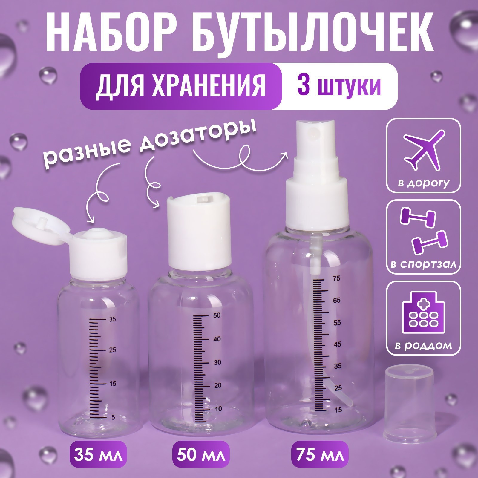 Набор для хранения, 3 предмета, со шкалой деления, цвет белый/прозрачный