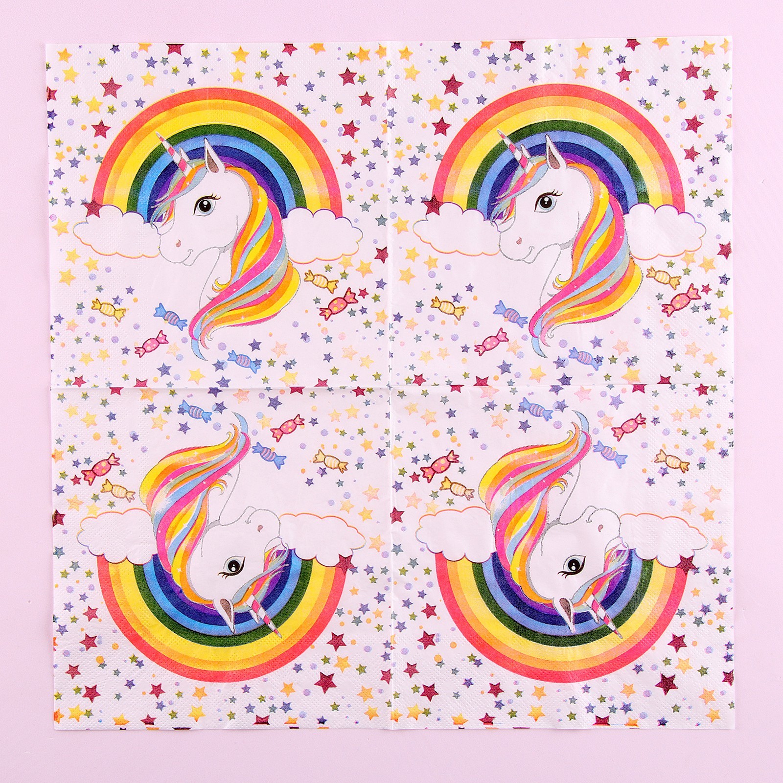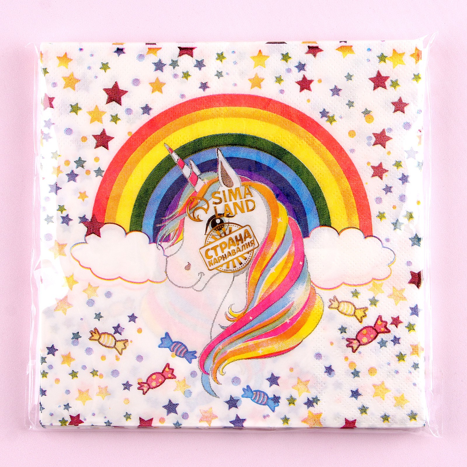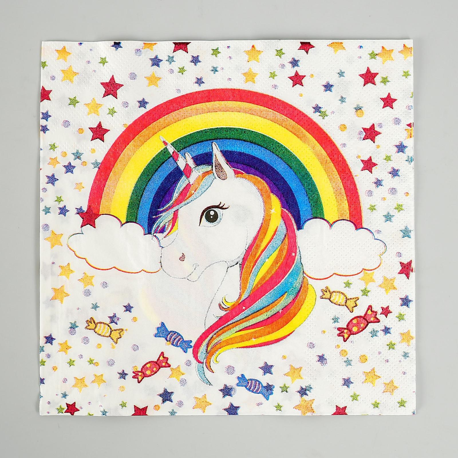 Салфетки бумажные «единорог и радуга», 33х33 см, набор 20 шт.