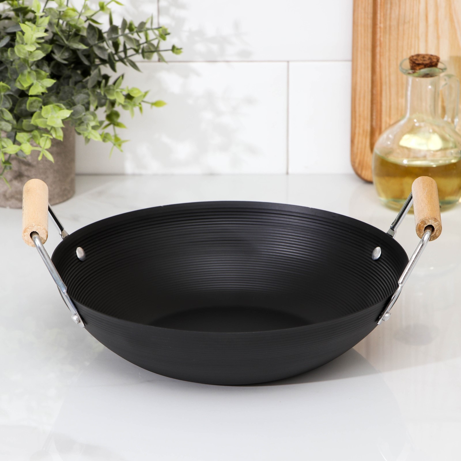 Сковорода-wok доляна «жаклин», D=24,5 см, деревянные ручки, цвет чёрный