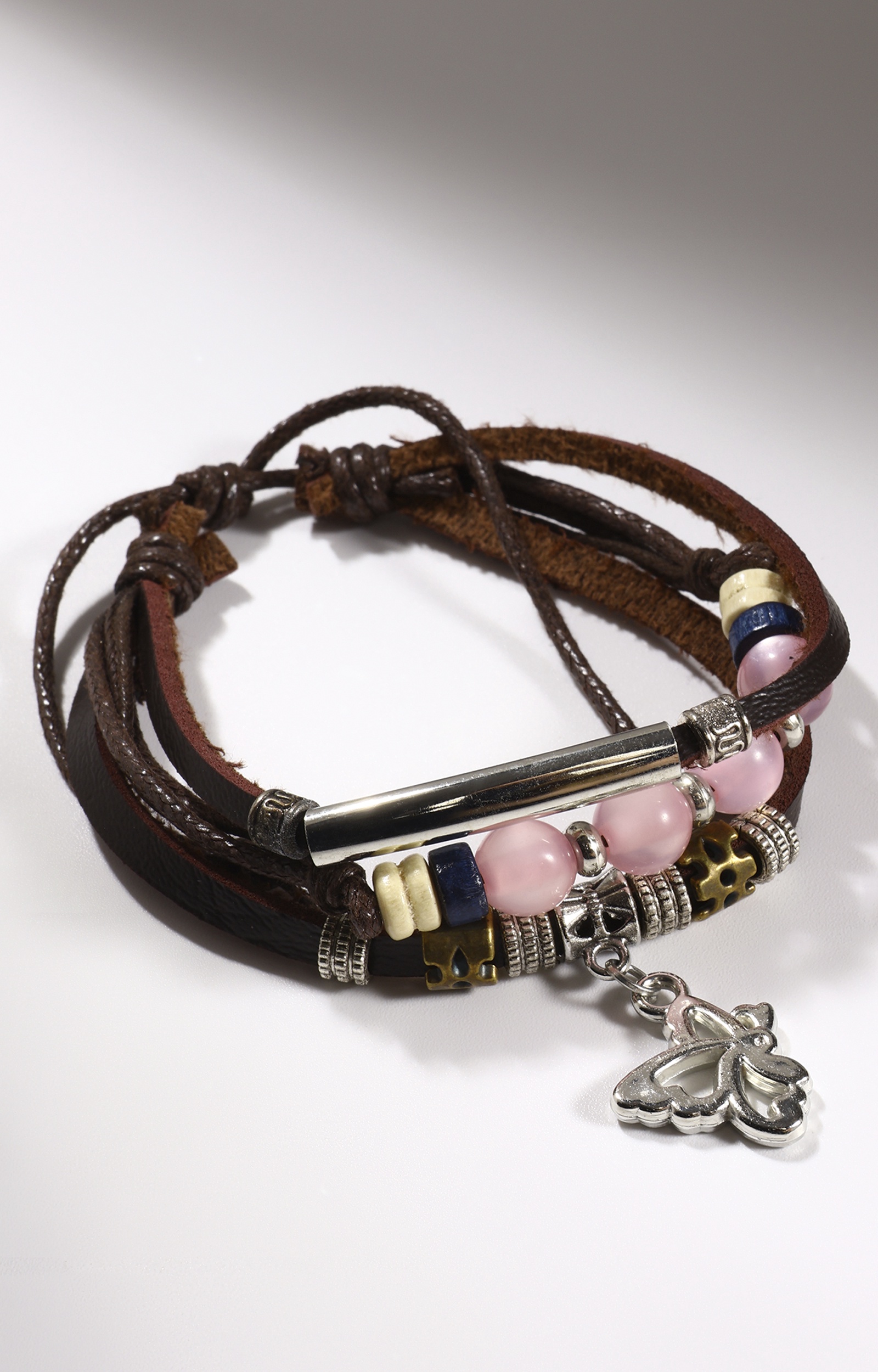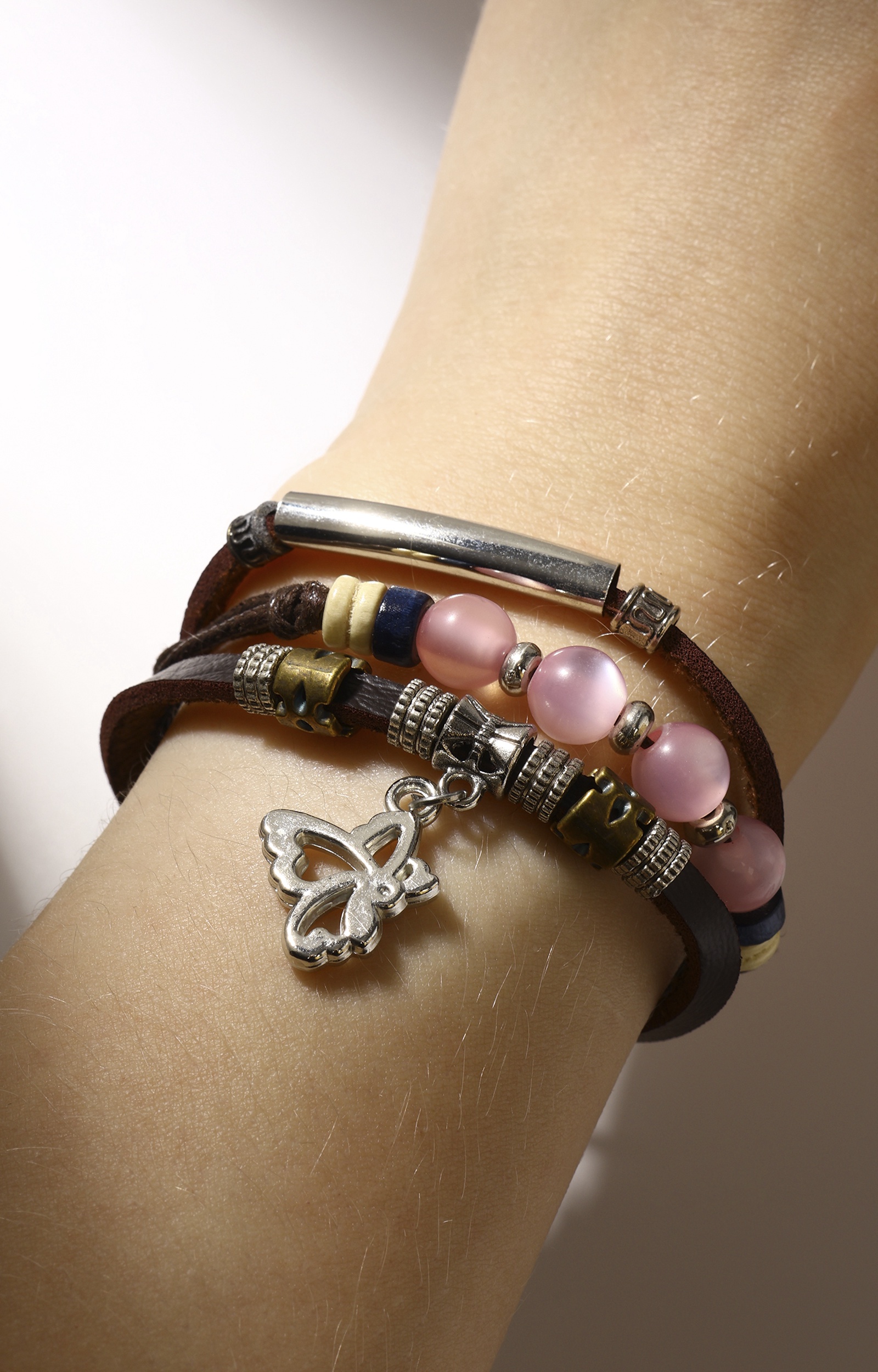 Браслет кожа «настроение» кошачий глаз, бабочка, коричневый, D=8 см