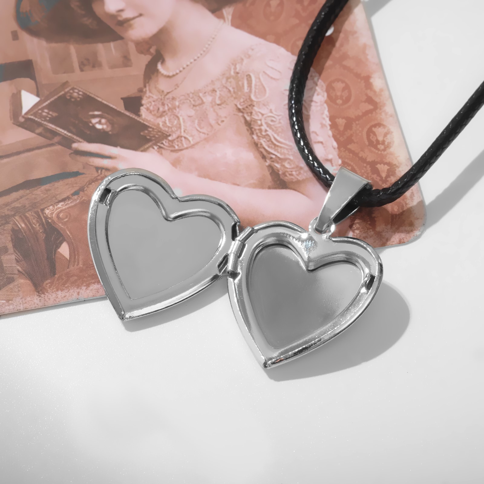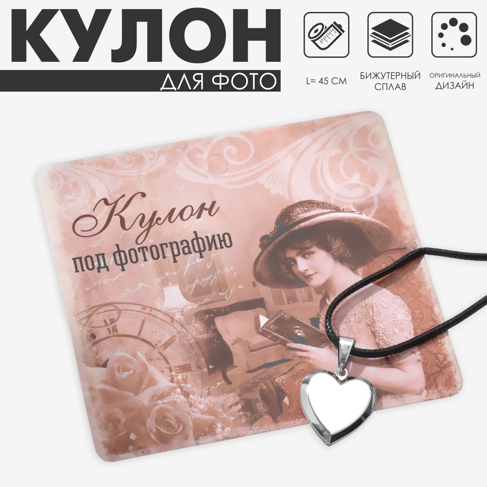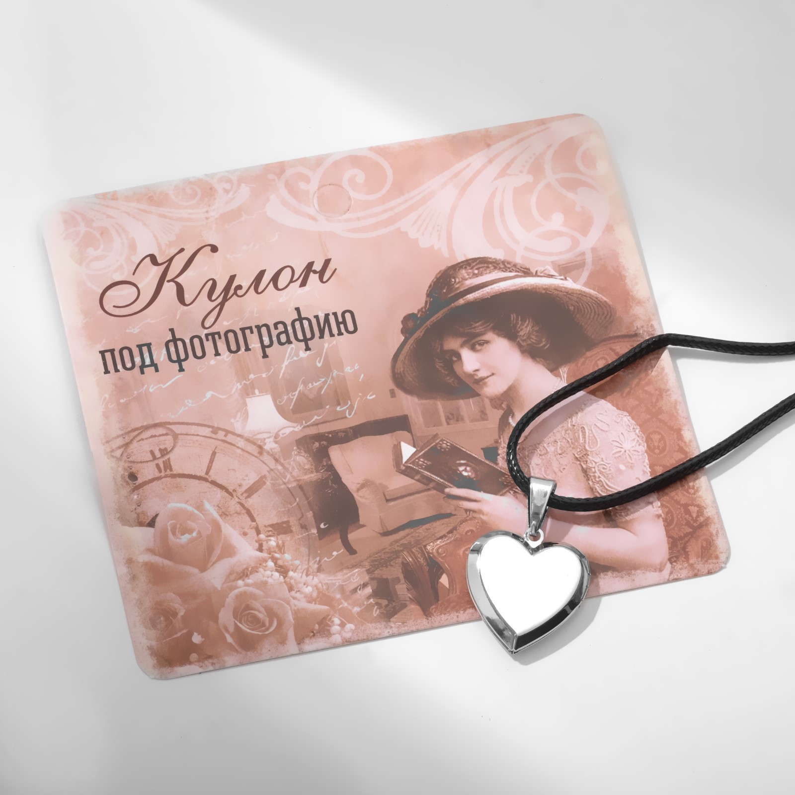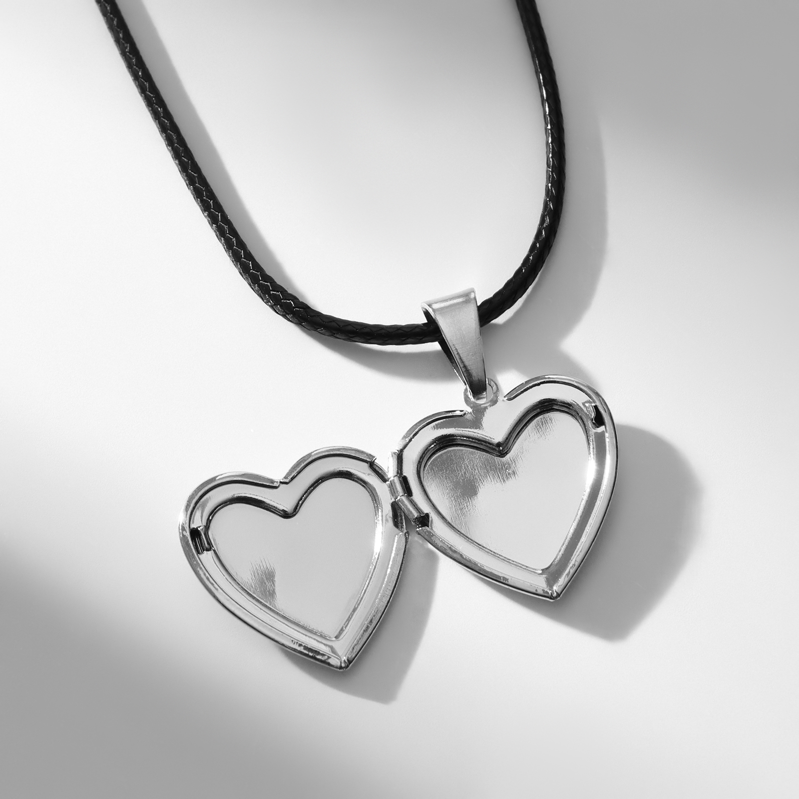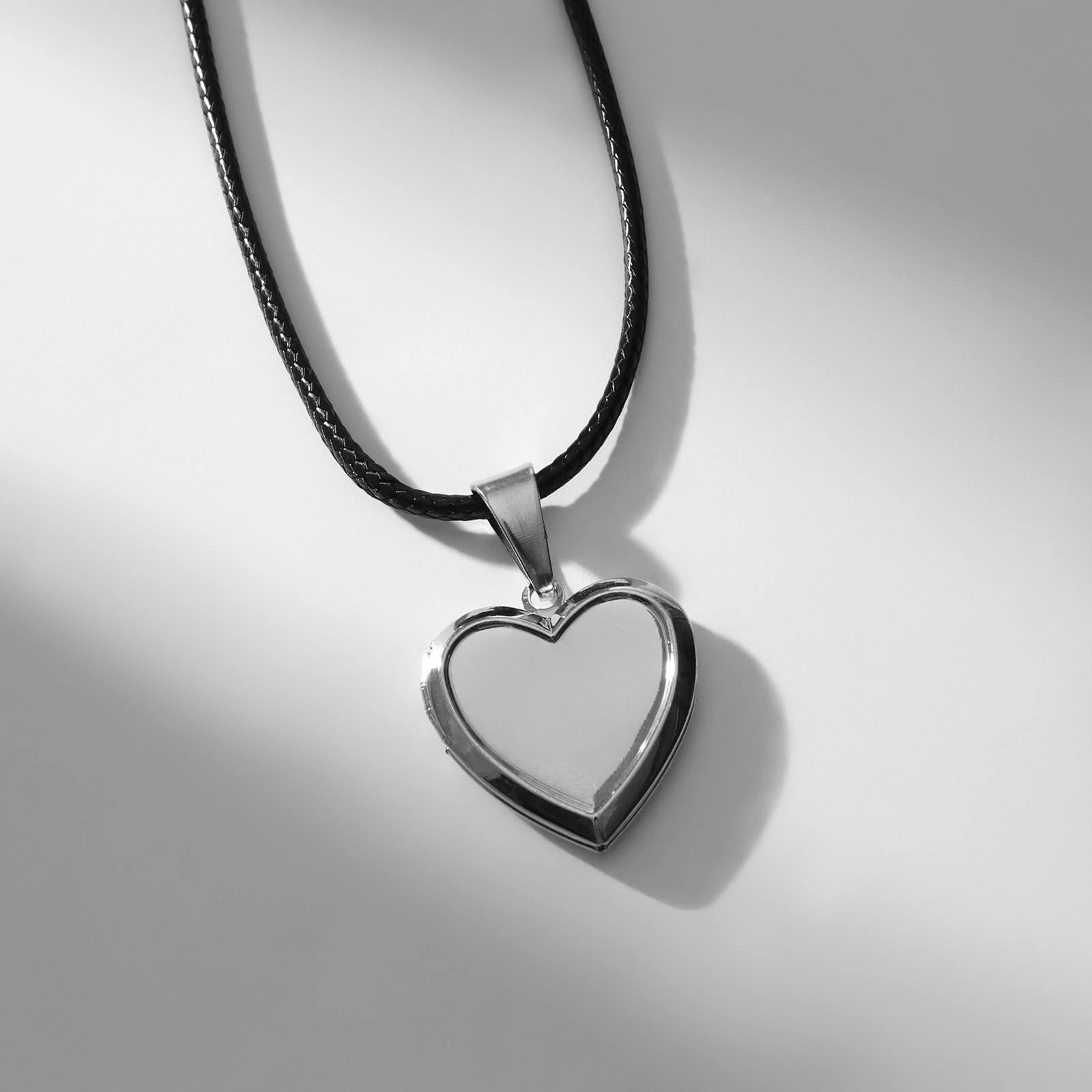Кулон на шнурке «для фото» сердце, цвет серебро на чёрном шнурке, 45 см